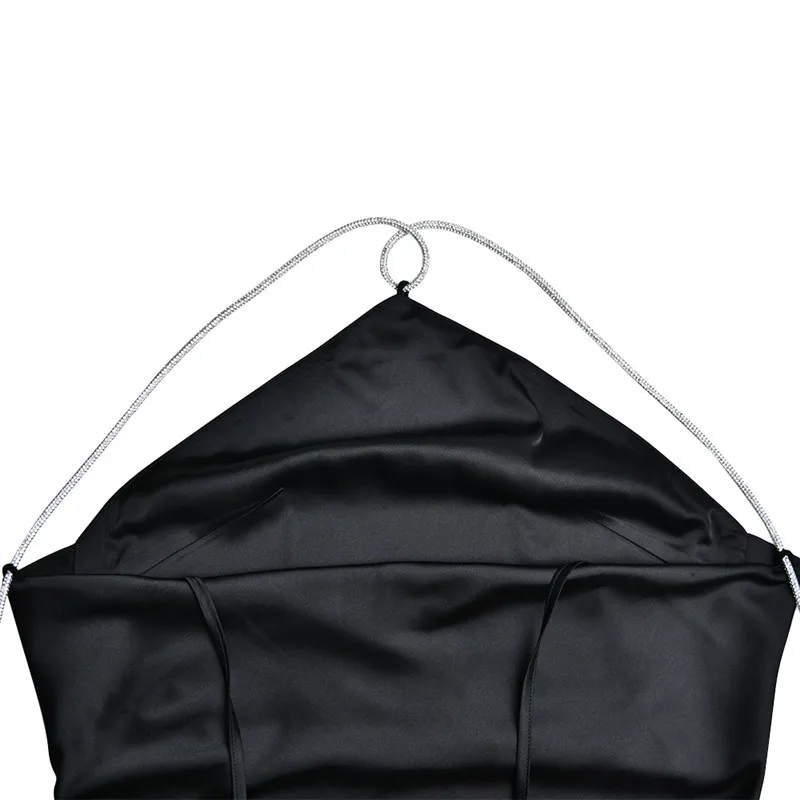 Znbbw Satin Halter Backless Mini Dress For Women Robe New Off-shoulder Sleeveless Lace-up Bodycon Club Party Sexy Dress