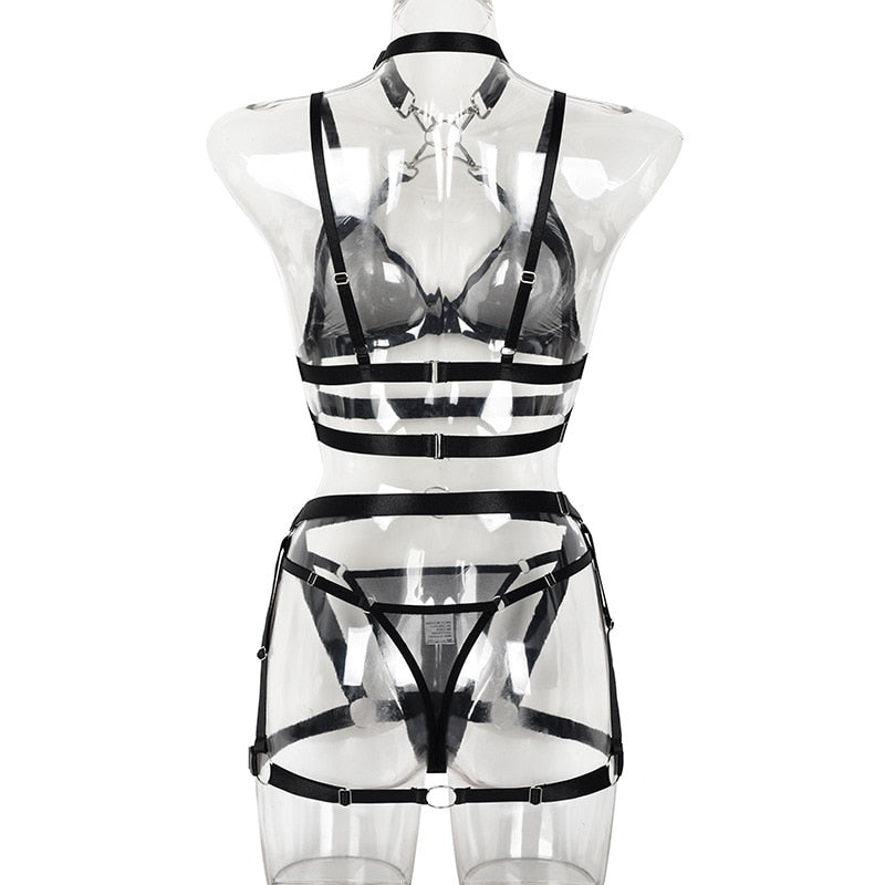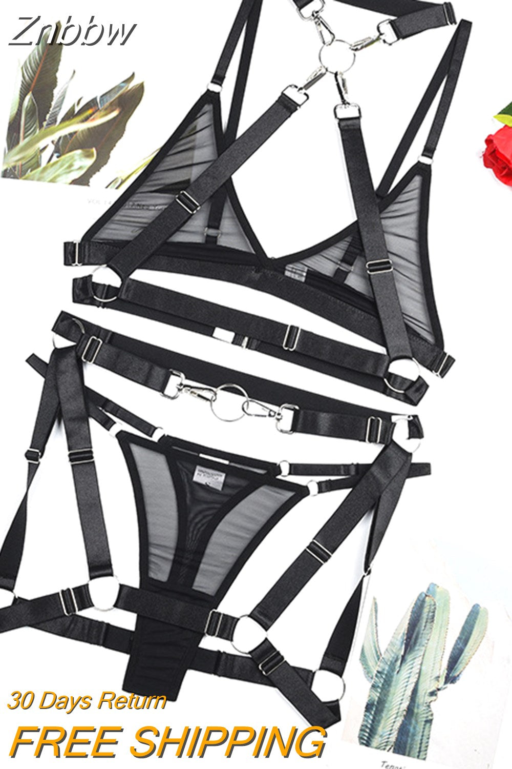 Znbbw Sensual Lingerie Halter Cross Bra And Panty Set Transparent Lace Fancy Underwear 4-Piece Sheer Black Erotic Intimate