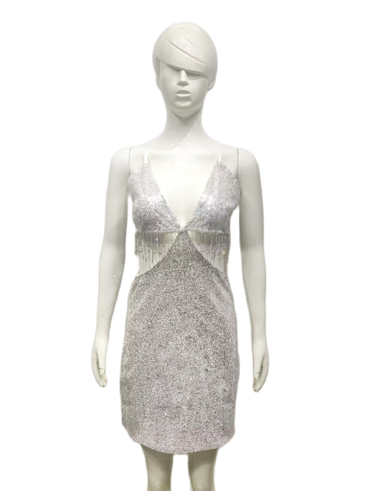 Znbbw Sequin Hollowed-Out Fashion Suspender Dress Summer Diamond Chain Spliced Skirt