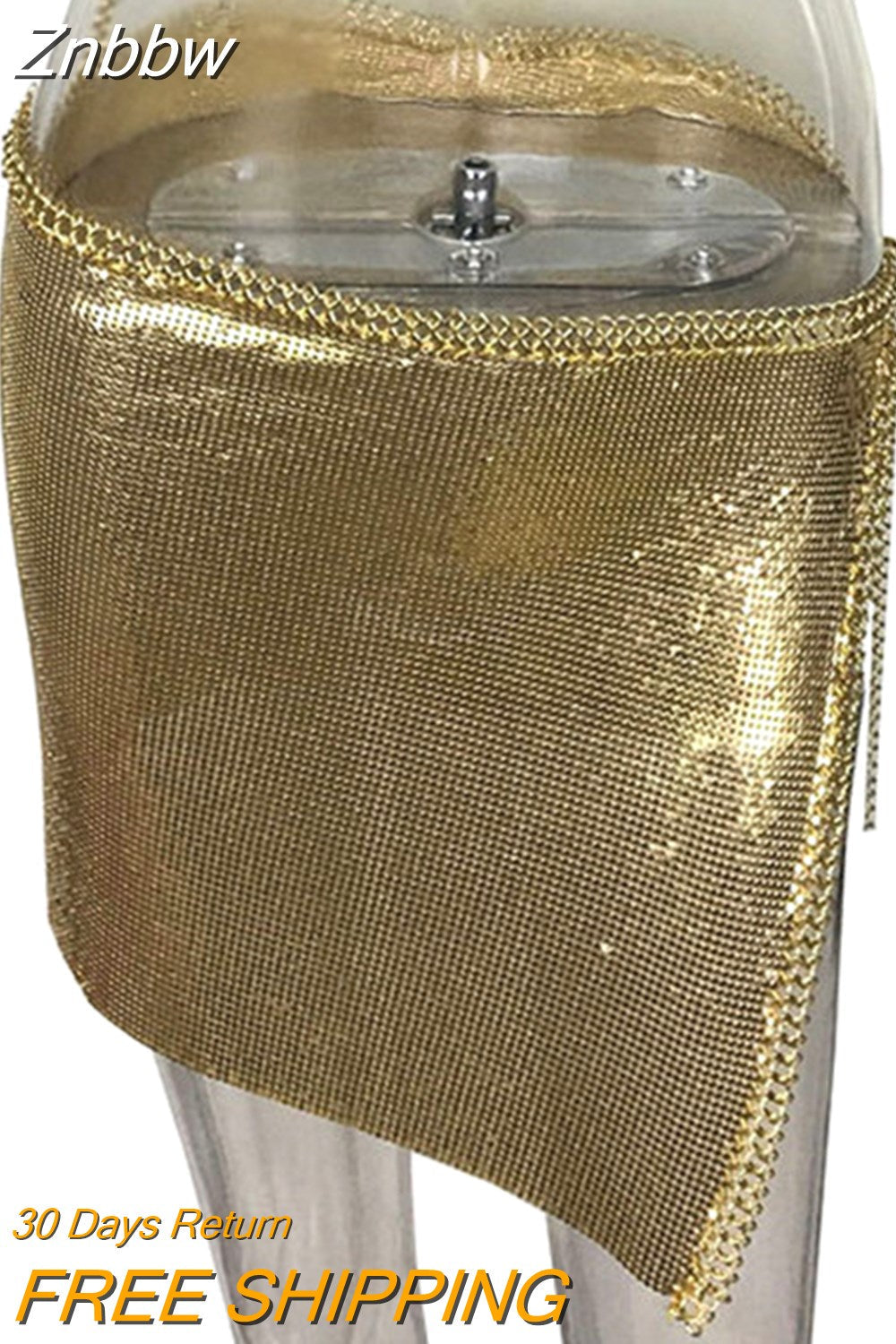Znbbw Sexy Metal Beach Crop Top And Skirt Set Vacation Fitness T Shirt Women Summer Tops Sequined Dress Suits Cropped Feminino 912