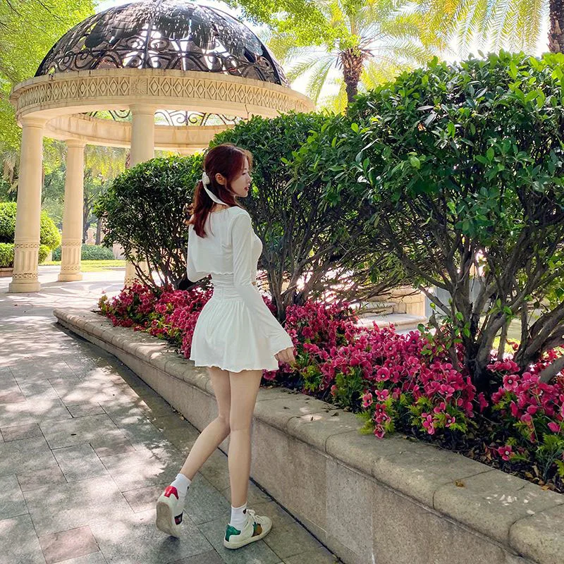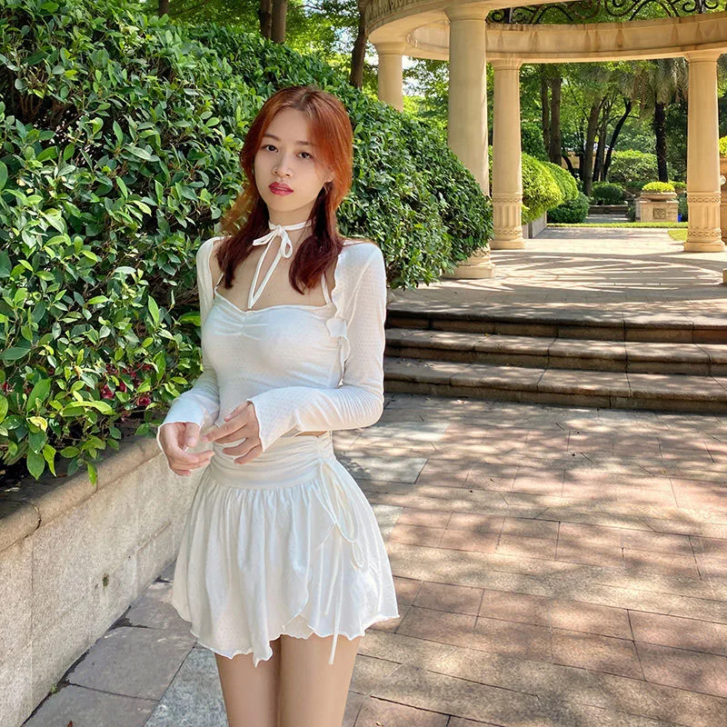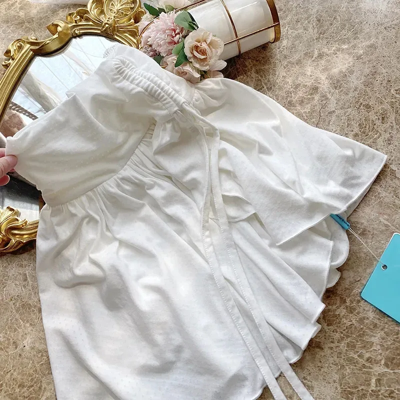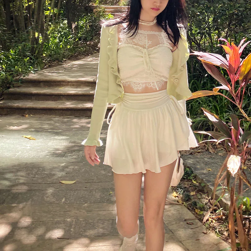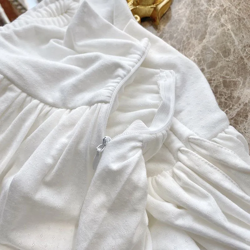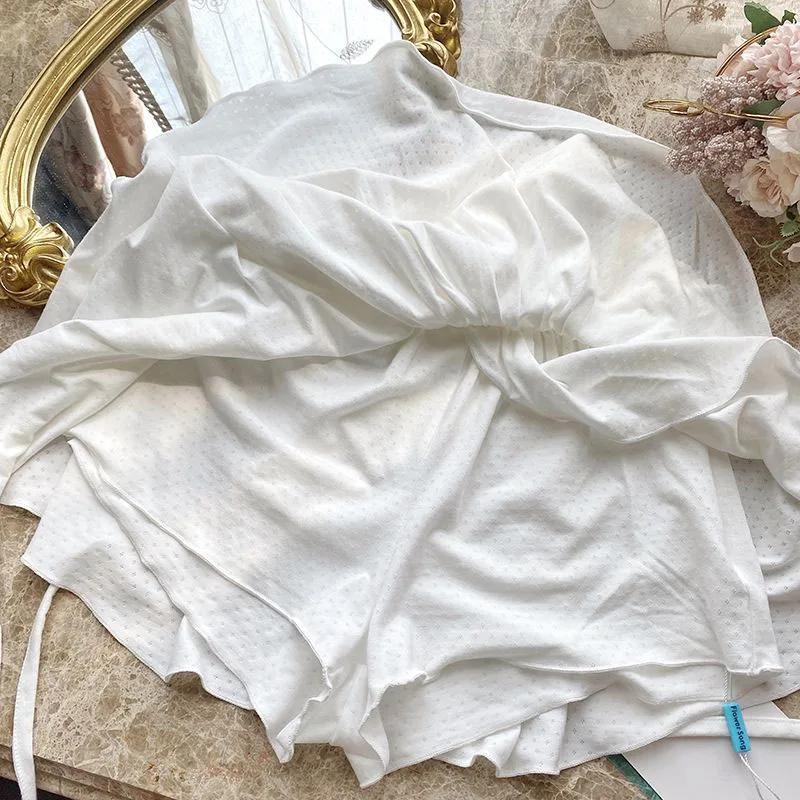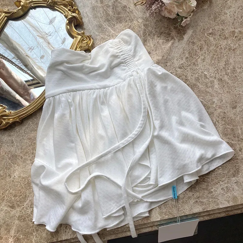 Znbbw Shirring White Mini Skirts Women High Waist Irregular Pleated Skirts Sweet Girly Style All-Match Ruffles Short Skirts