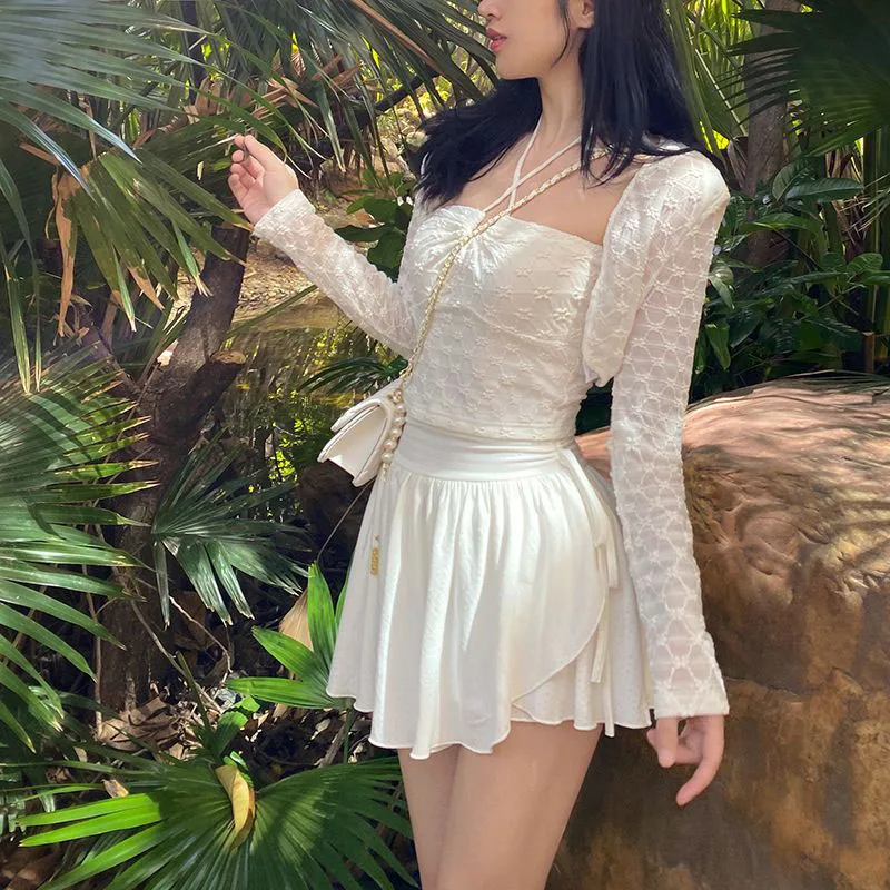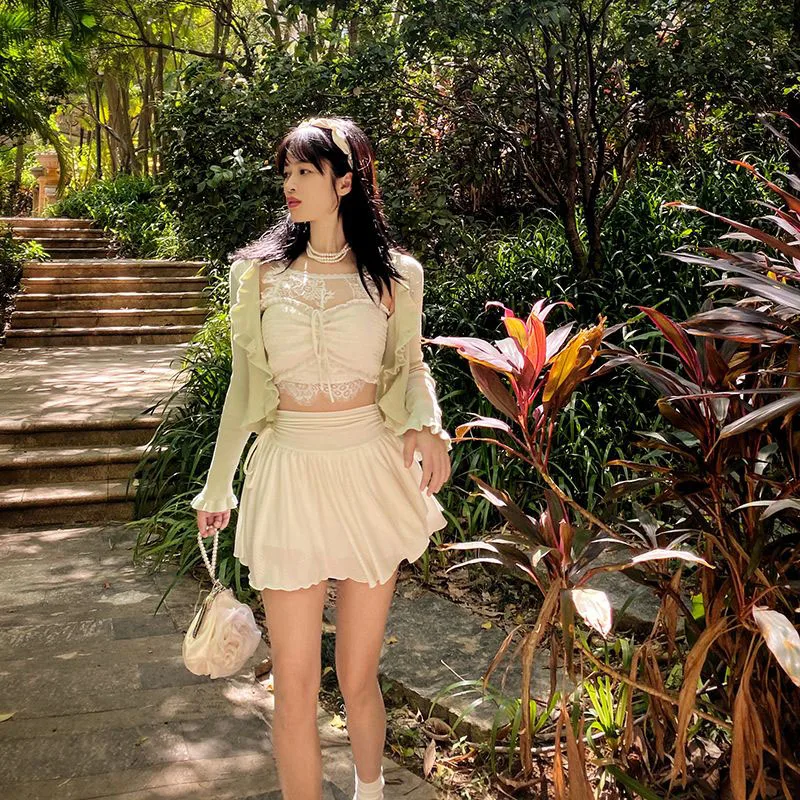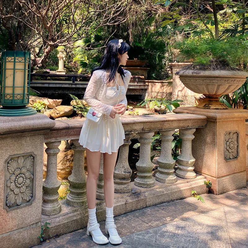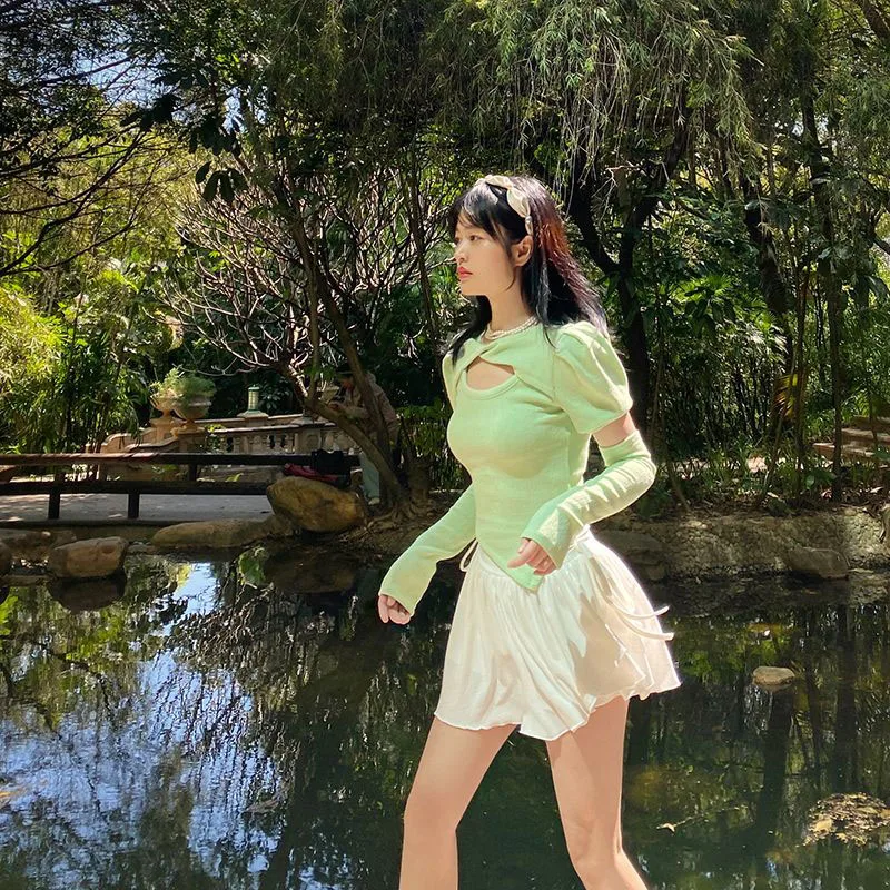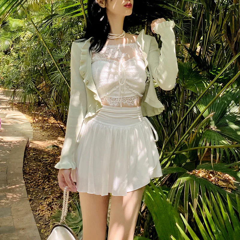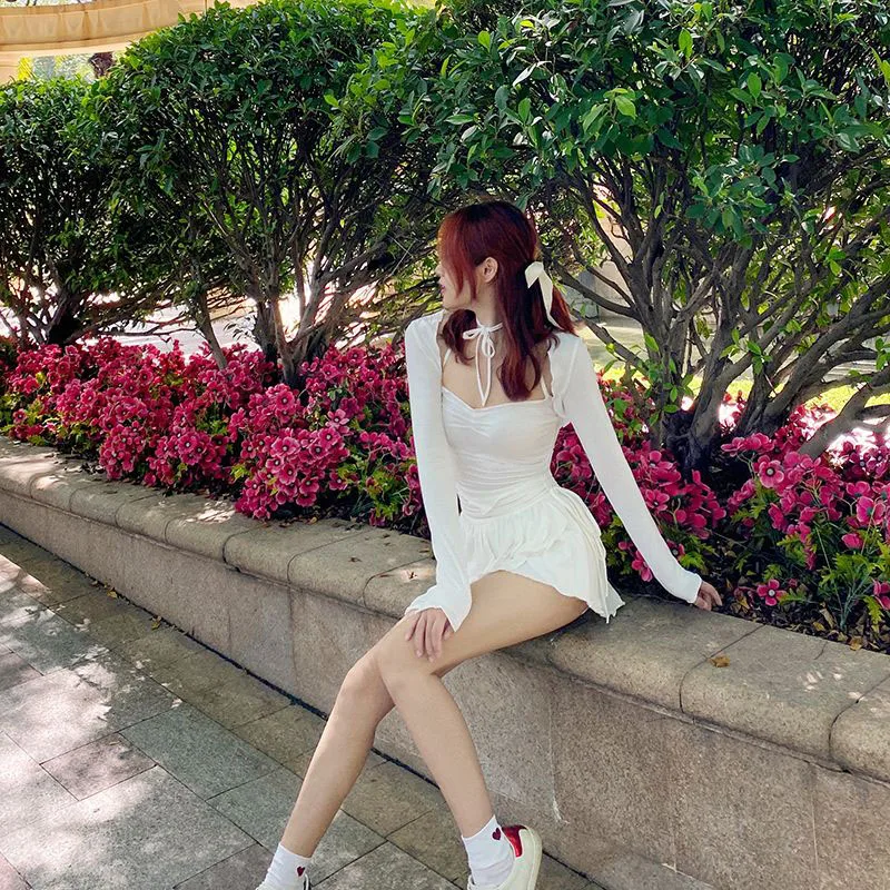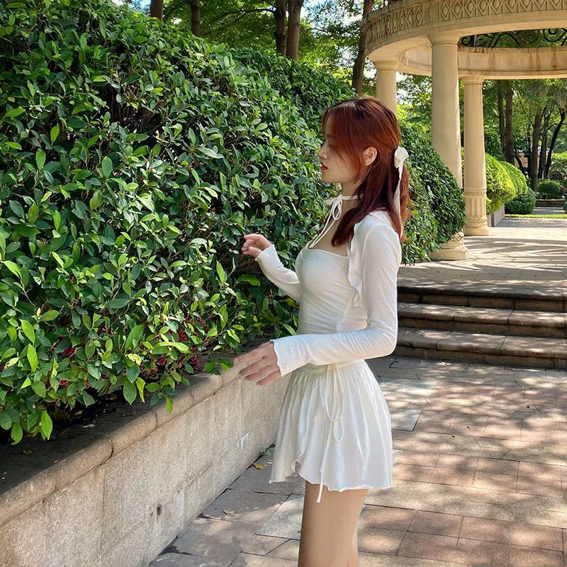 Znbbw Shirring White Mini Skirts Women High Waist Irregular Pleated Skirts Sweet Girly Style All-Match Ruffles Short Skirts