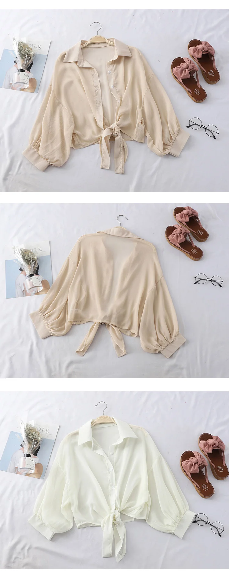 Znbbw Shirts Women 2023 Summer Half Sleeve Buttoned Up Shirt Loose Casual Blouse Tied Waist Elegant Blouses For Women