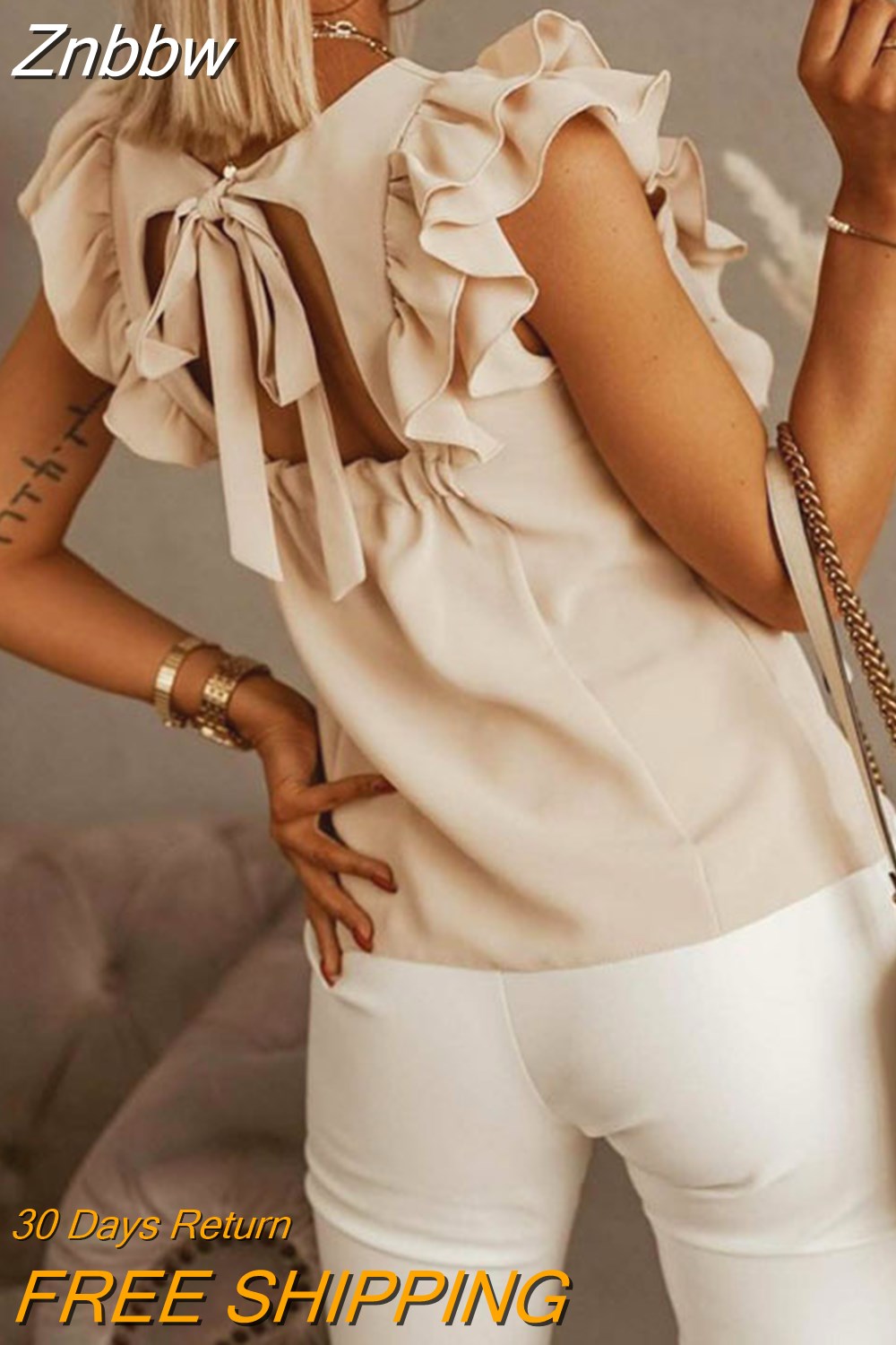 Znbbw Short Sleeve Backless Lace Up Women Blouse Solid O-neck Lady Blouses Summer Loose Casual Fashion