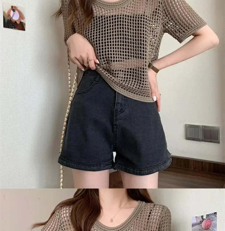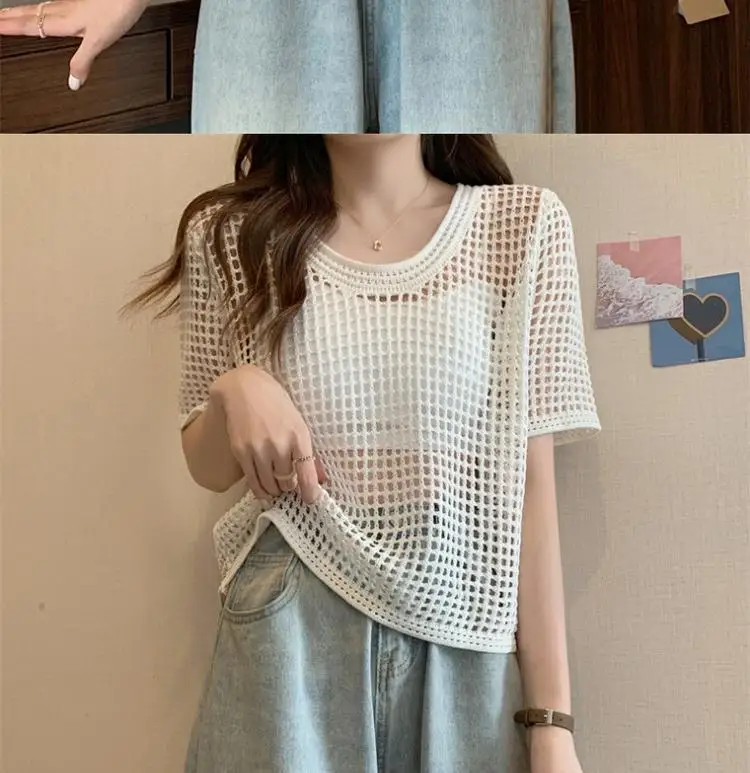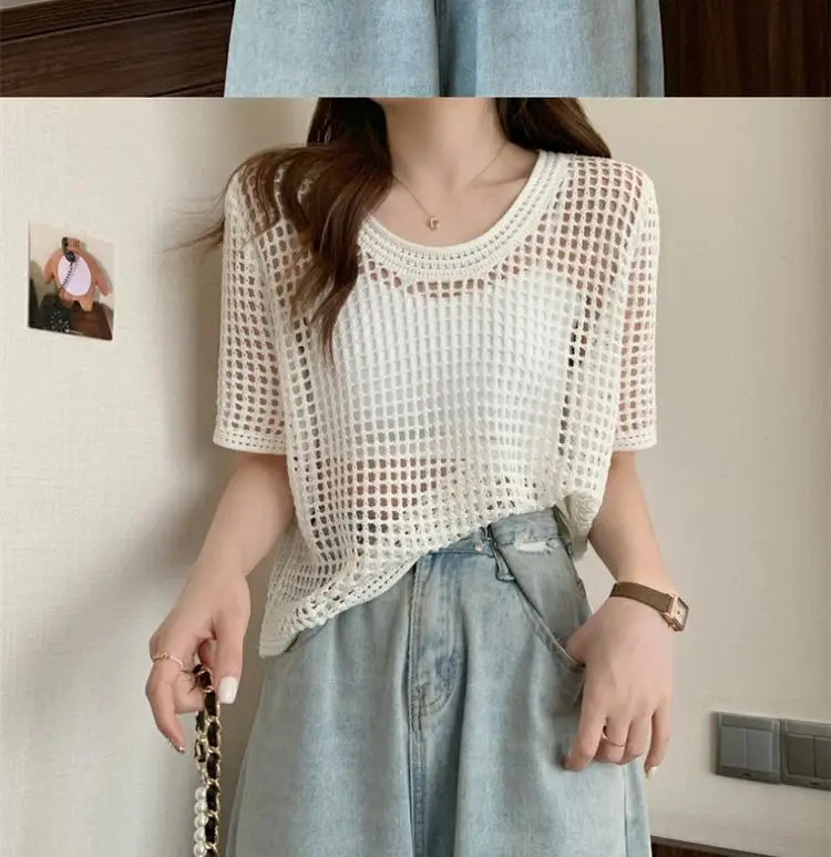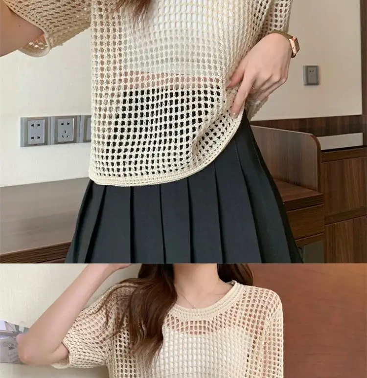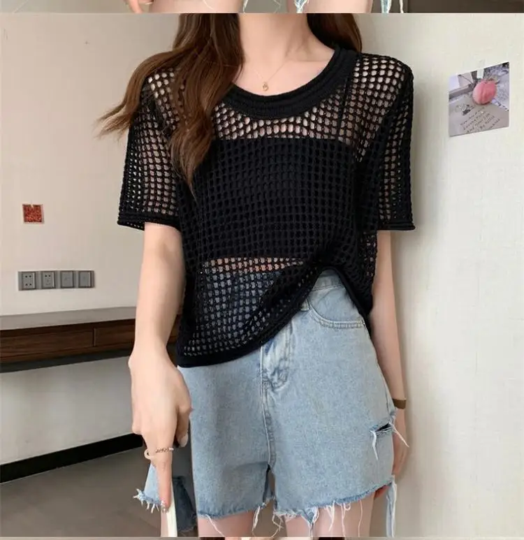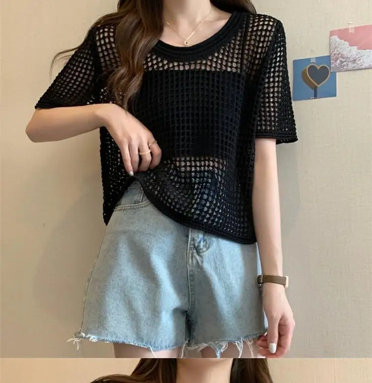Znbbw Short Sleeved Sun Protection Cover Up for Women's Summer Black Short Sleeved T-shirt Thin Knit Sweater