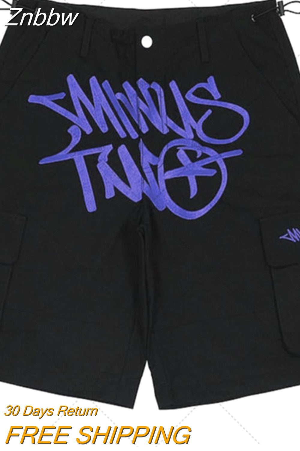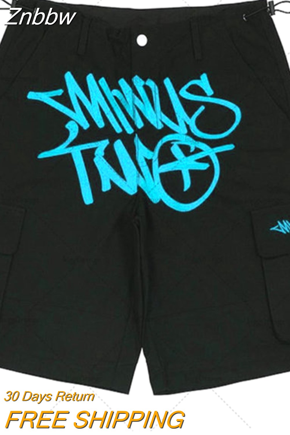 Znbbw Shorts Women New Y2K Letter Casual Summer Vintage Printing Wide Leg Streetwear Shorts Men Harajuku Hip Hop Loose Pants
