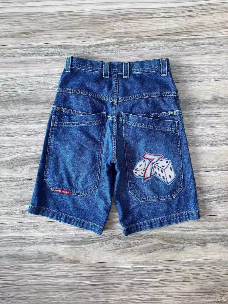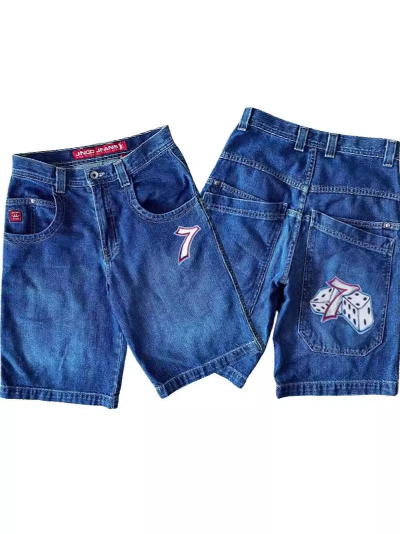 Znbbw Shorts, Y2K Pants, Harajuku, Hip-Hop, Lucky Seven, Vintage Blue Baggy Jeans