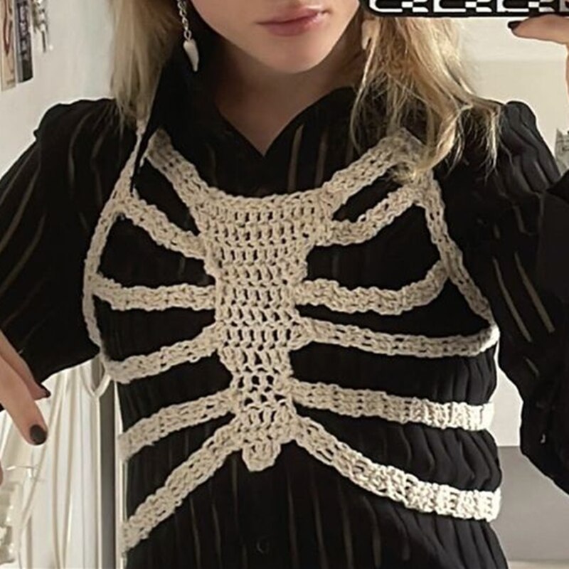 Znbbw Skeleton Skull Pattern Knitted Tank Corset Gothic Bustier Women Sleeveless Hollow Crop Top Summer Casual Camis Streetwear