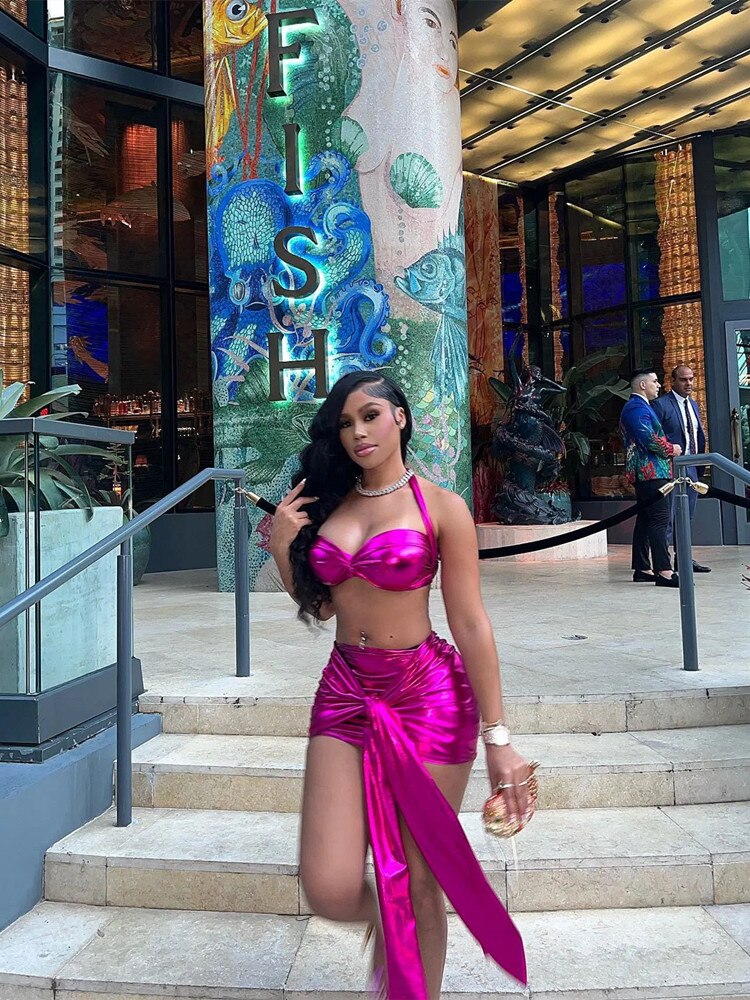 Znbbw Skinny Two Piece Skirt Set Women Summer Festival Outfit Sexy Halter Sleeveless Corset Bandage Mini Skirt Club Party Wear 912