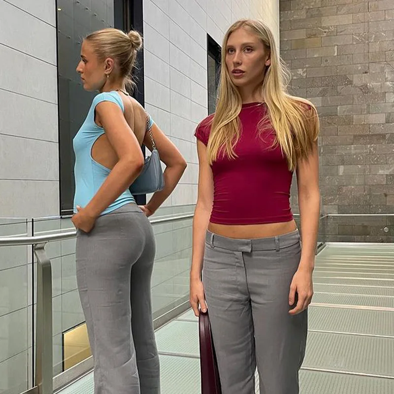 Znbbw Sleeve Backless Tops Women Multi Ways Wear 2023 Skinny Basic Summer Slim Cropped Cut Out Sexy T Shirt Crop Top
