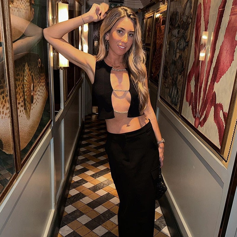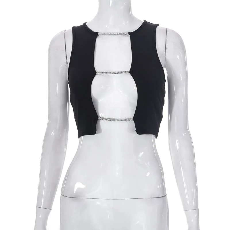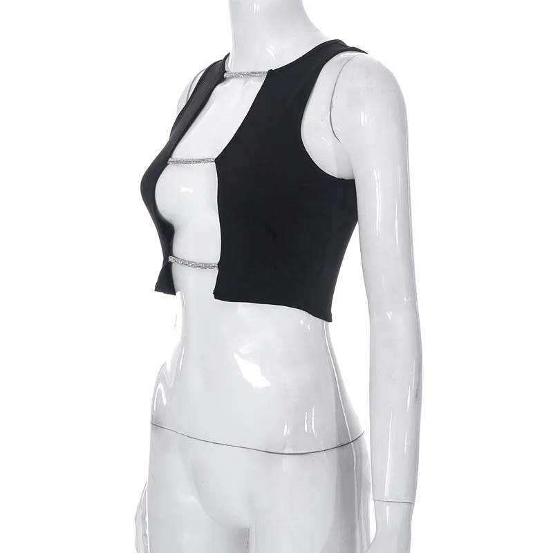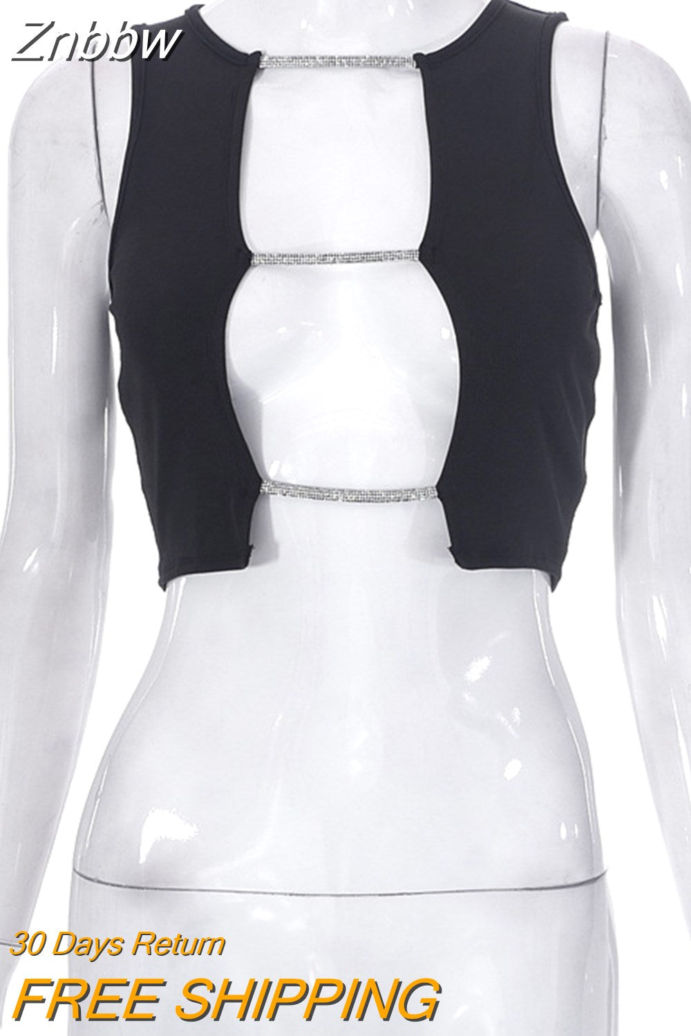 Znbbw Sleeveless Chains Up Crop Tops Women Cut Out Punk Grunge Camisole Tank Top 2023 Summer Harajuku Lolita Y2K Clothes