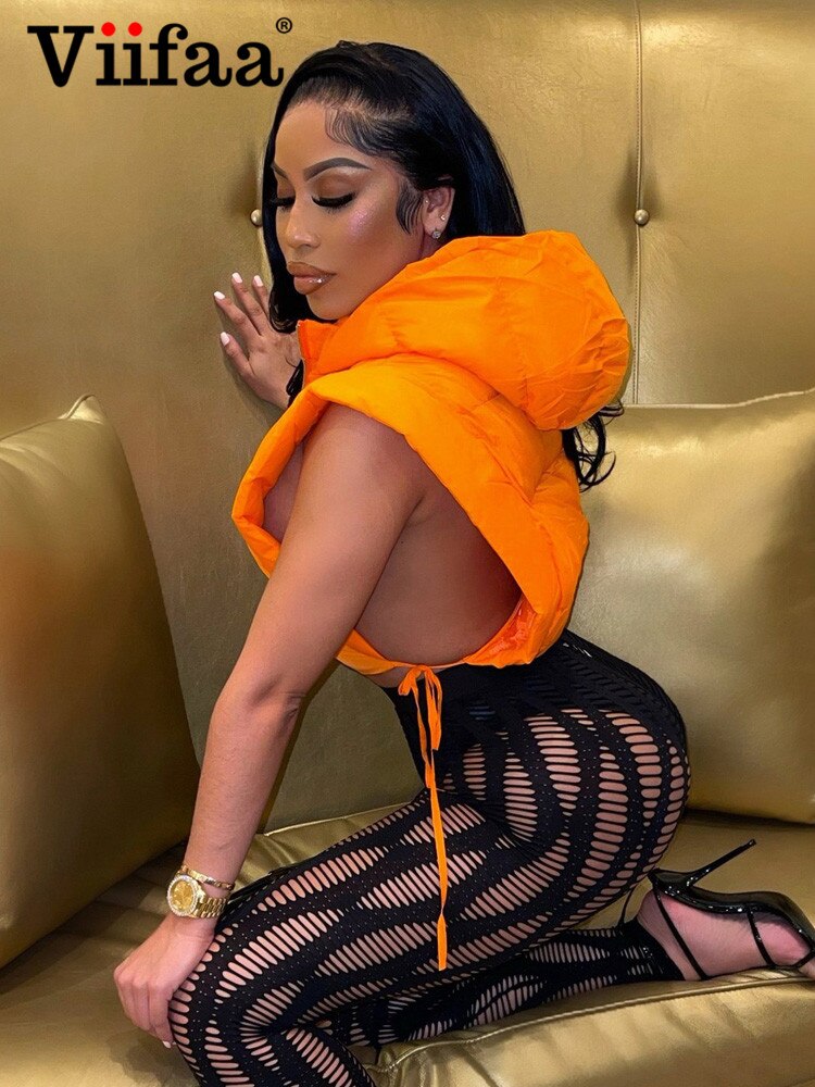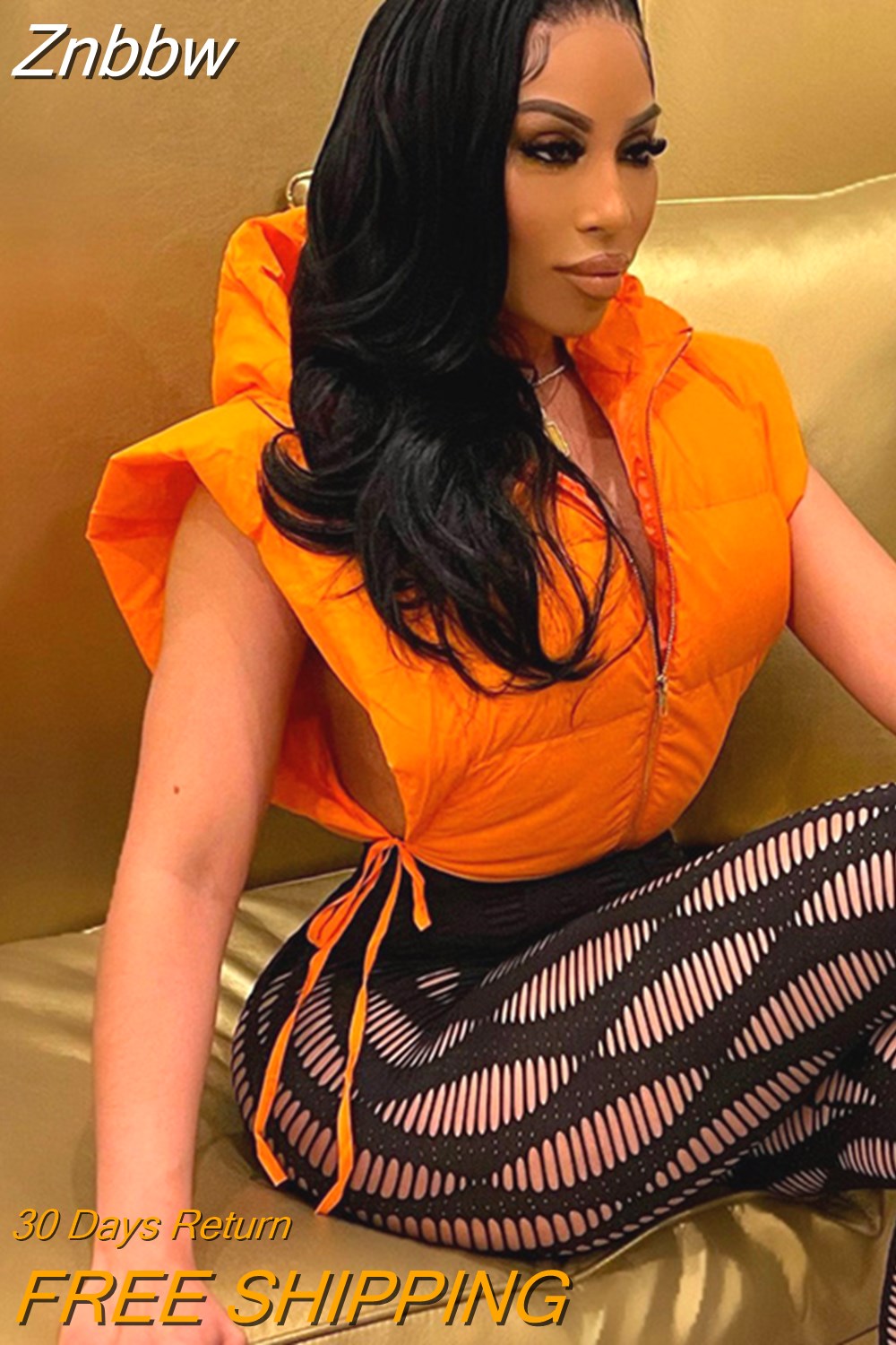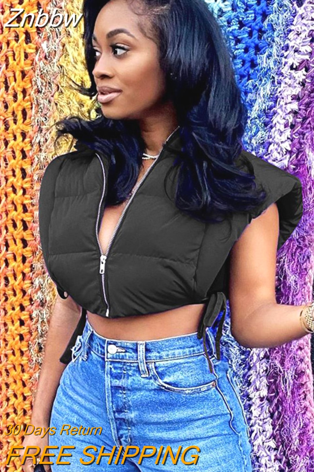 Znbbw Sleeveless Hollow Out Tie Side Cropped Vest Coats Autumn Winter Jacket Women 2023 Fashion Hooded Quilted Parkas