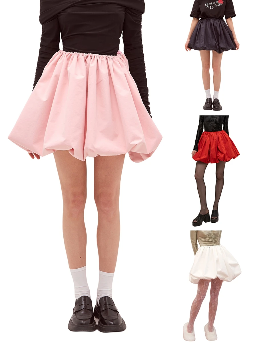 Znbbw Solid Bubble Mini Skirts Women Fashion 2024 Summer Elegant Female Skirts High Waist Loose Skirts Streetwear Skirts