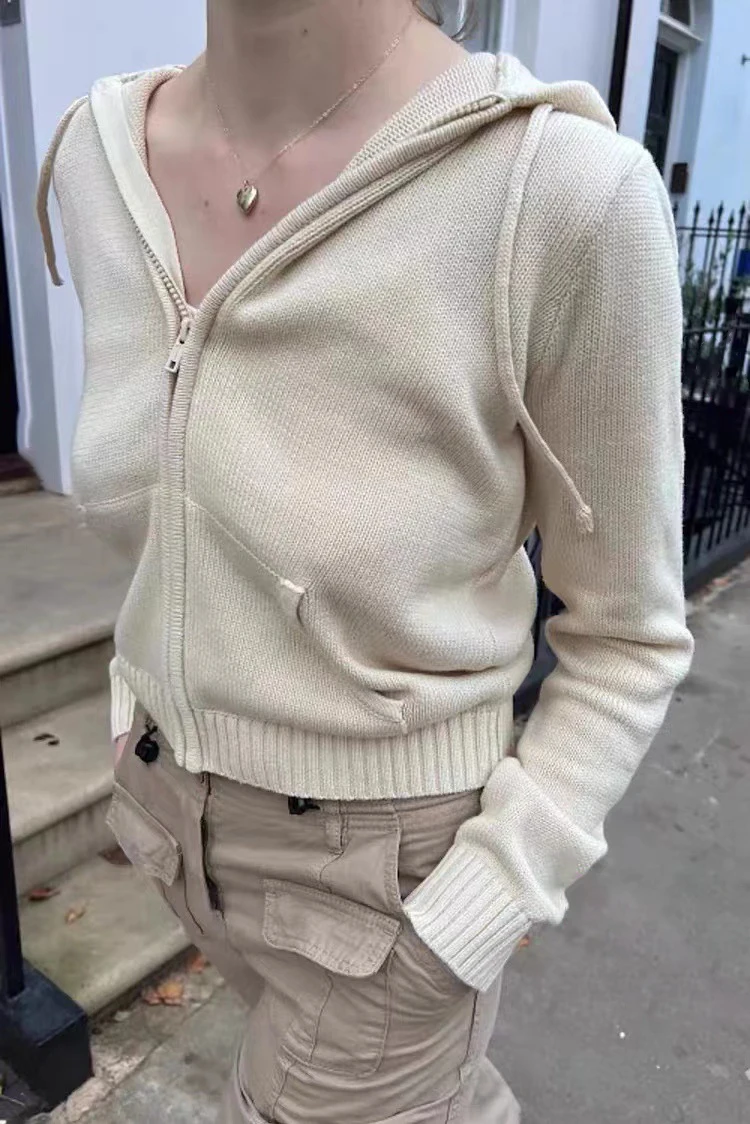 Znbbw Solid Knitted Hooded Cardigans Women Spring Soft Cotton Zipper Long Sleeve Sweaters Female Casual Streetwear Y2k Tops
