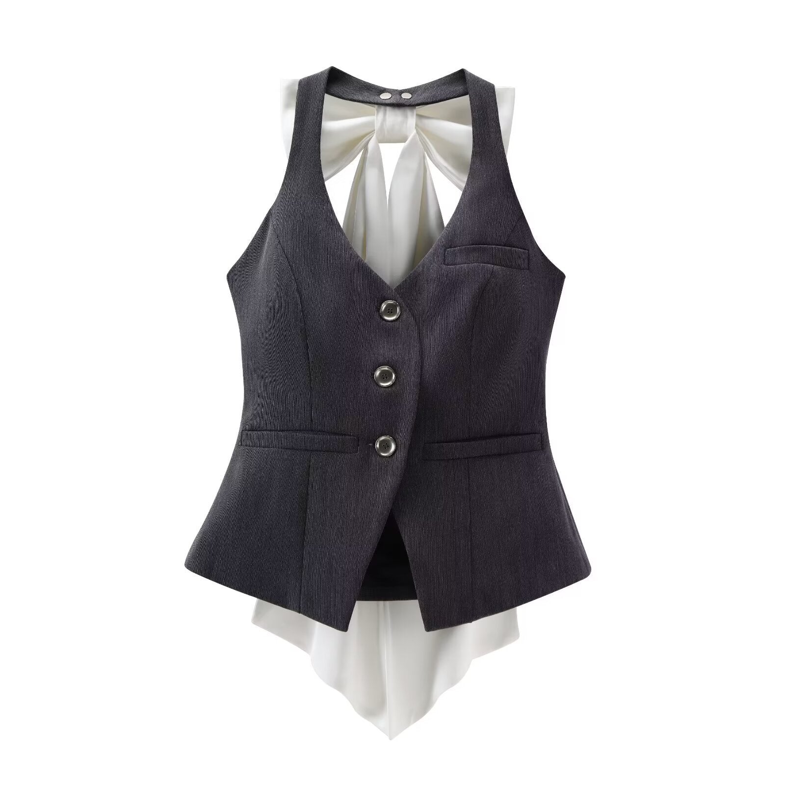 Znbbw Spring Style Bow Removable Back-Hanging Waistcoat Pleated Half-Length Skirt