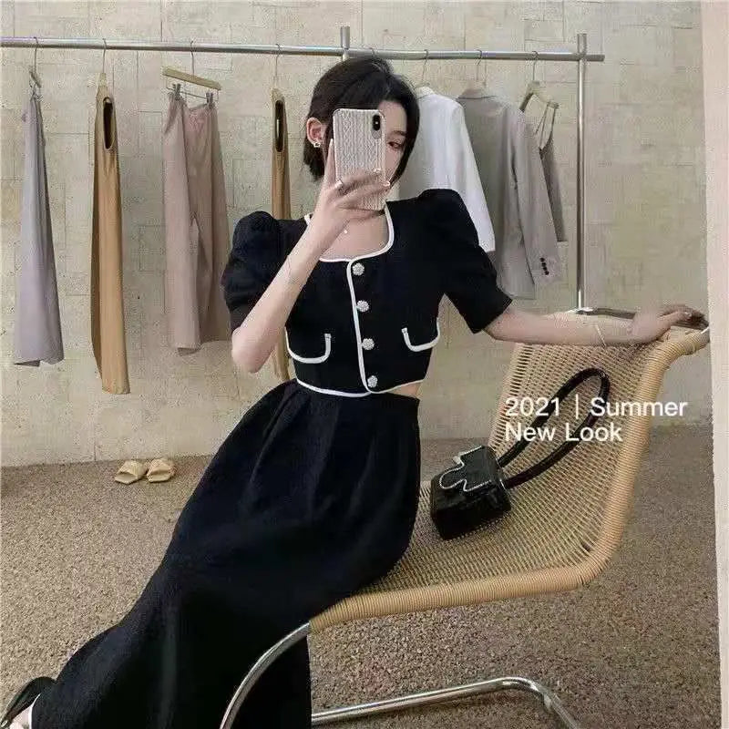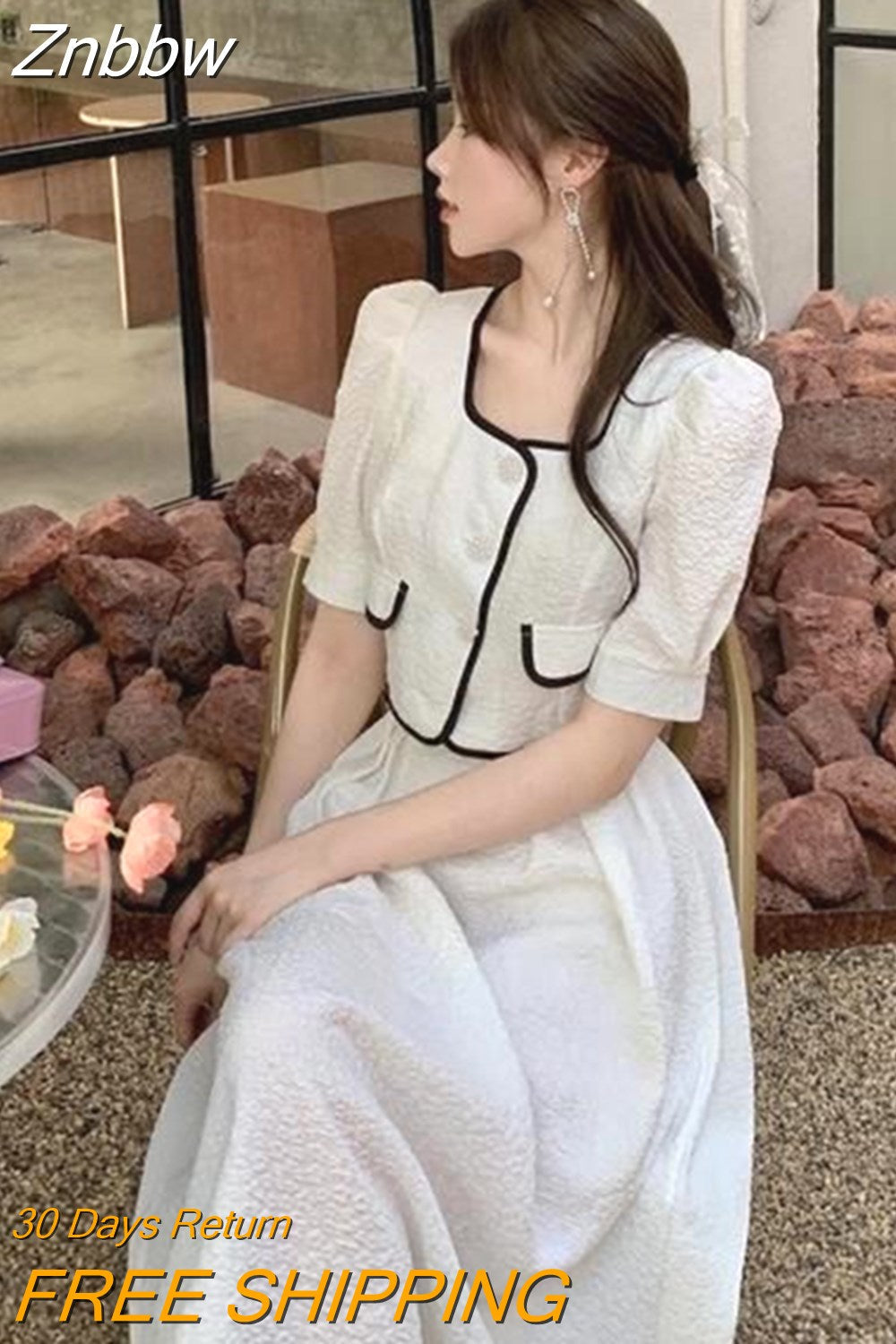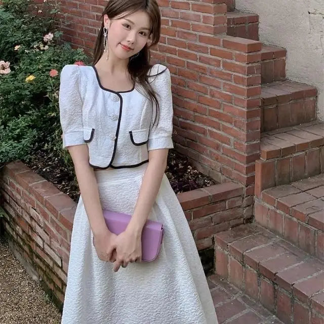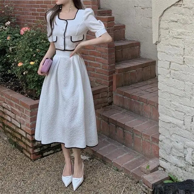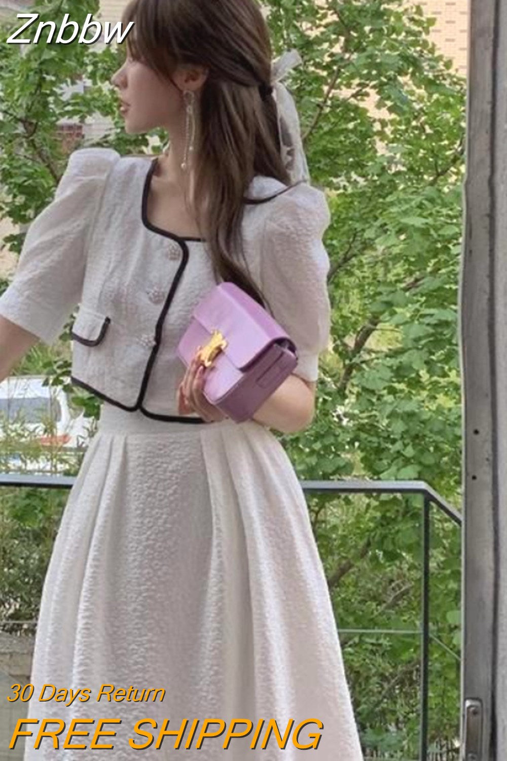 Znbbw Spring Summer Two Piece Sets Women Casual White Skirts 2Pcs Sets Bubble Sleeve Tops and Long Skirt