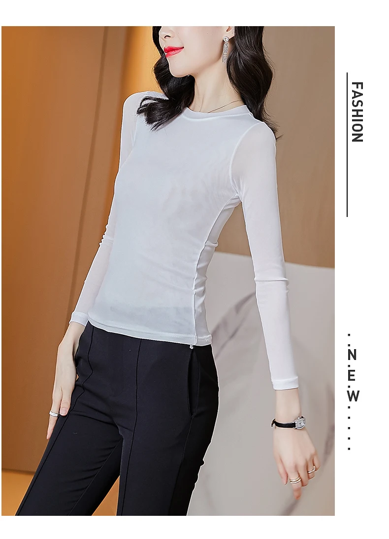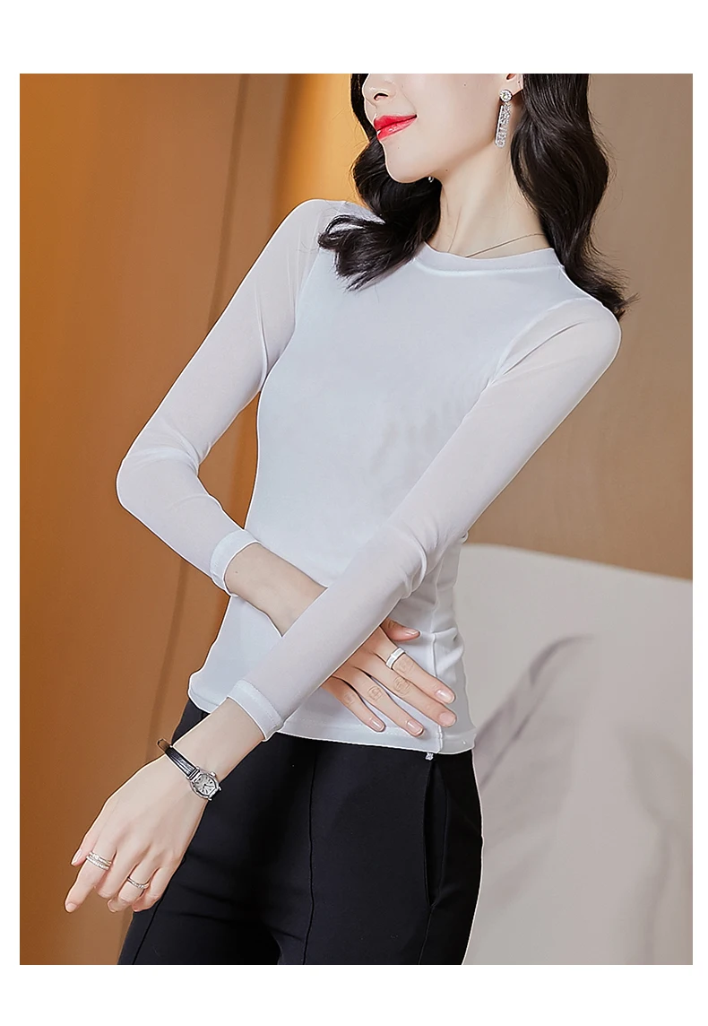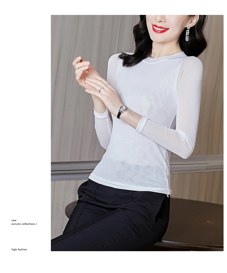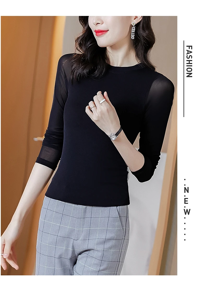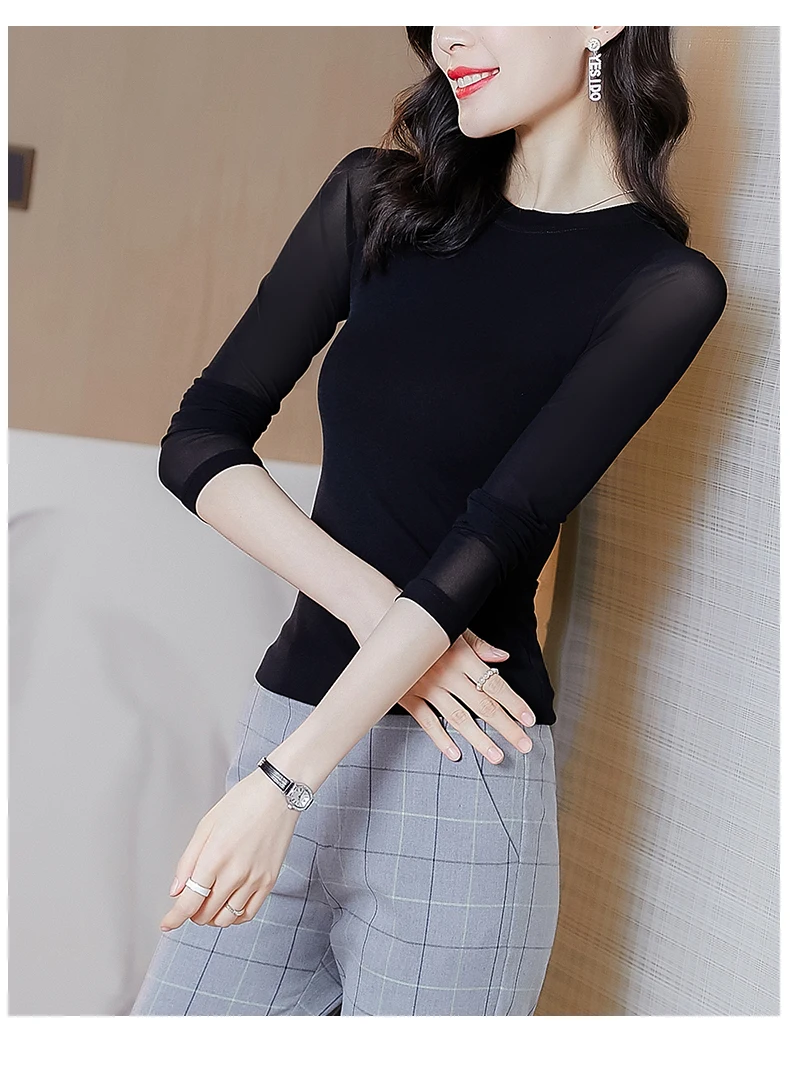 Znbbw Spring Women O-neck Long Sleeve Mesh T-shirts Tees Girls Solid Slim Tees T shirts Tops For Female Real Photos