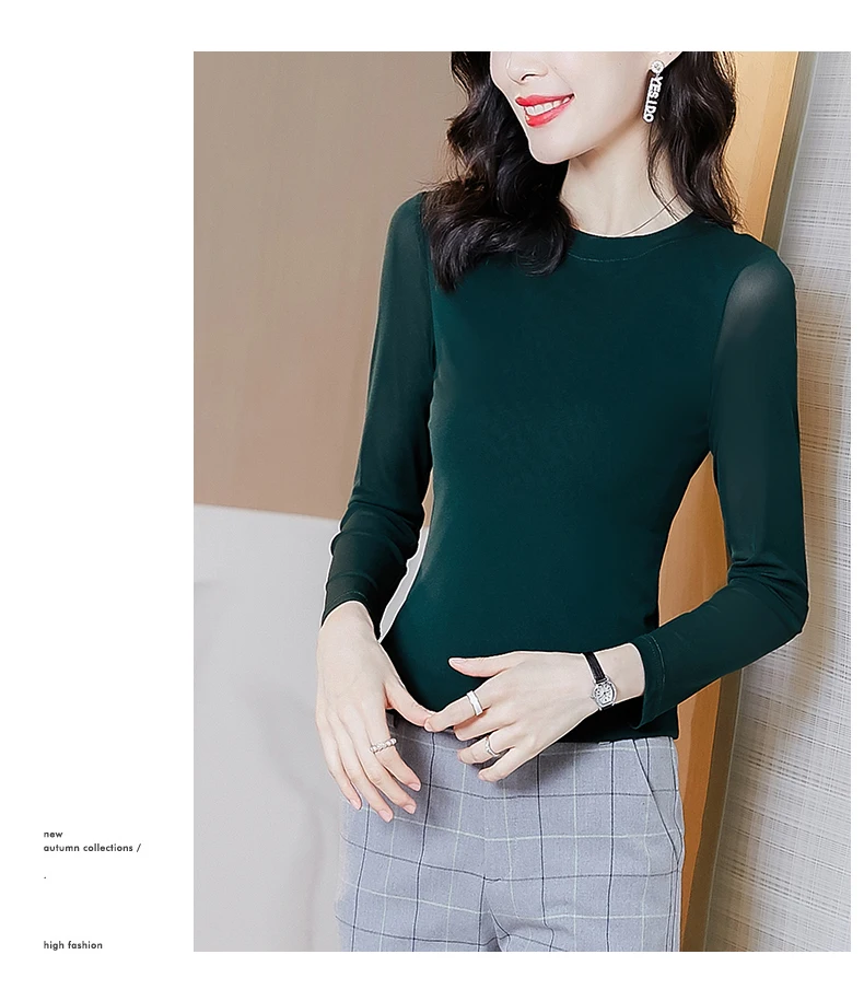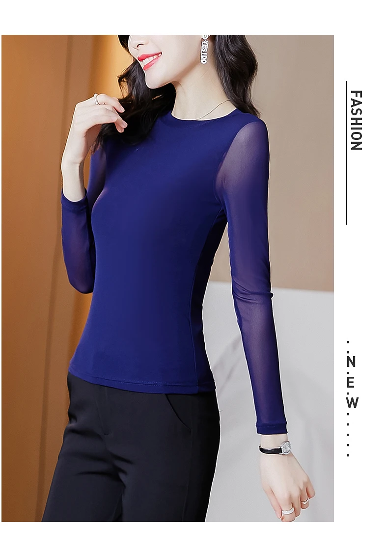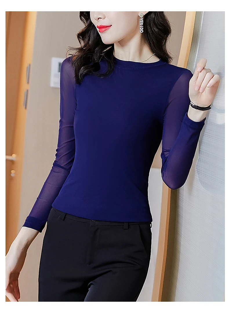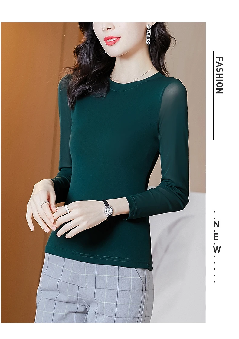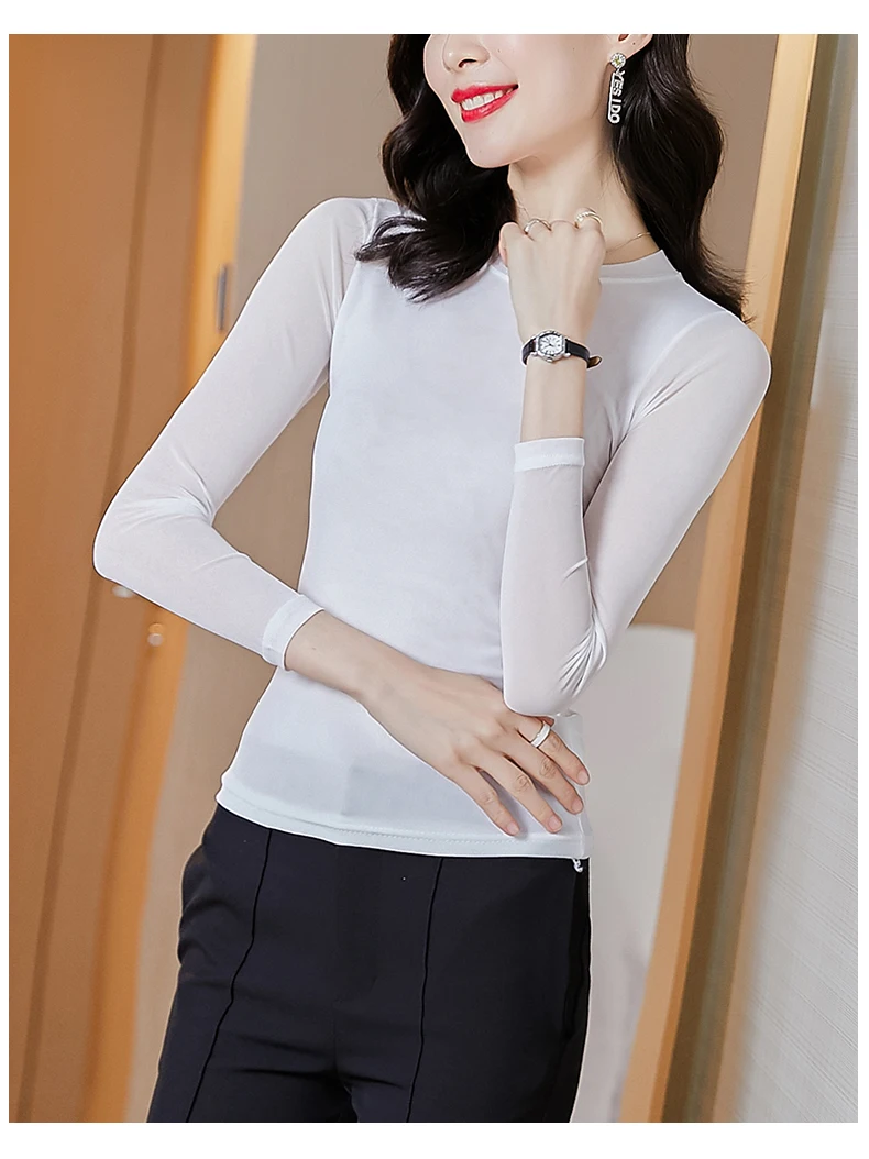 Znbbw Spring Women O-neck Long Sleeve Mesh T-shirts Tees Girls Solid Slim Tees T shirts Tops For Female Real Photos