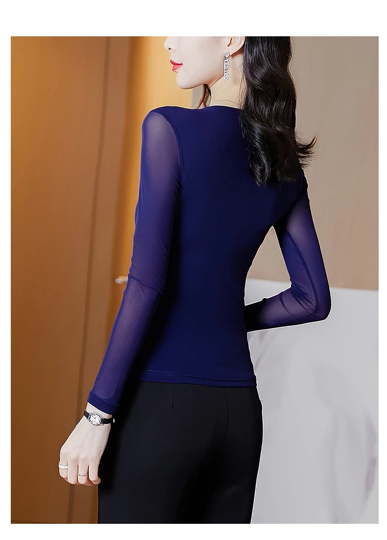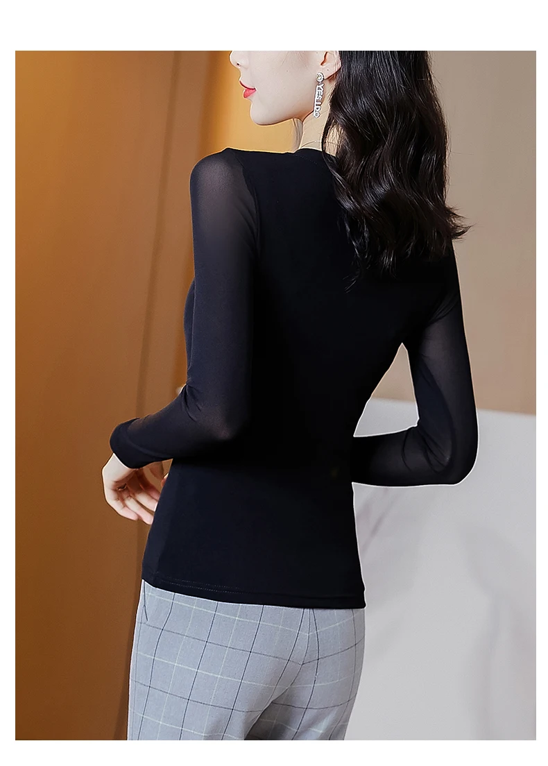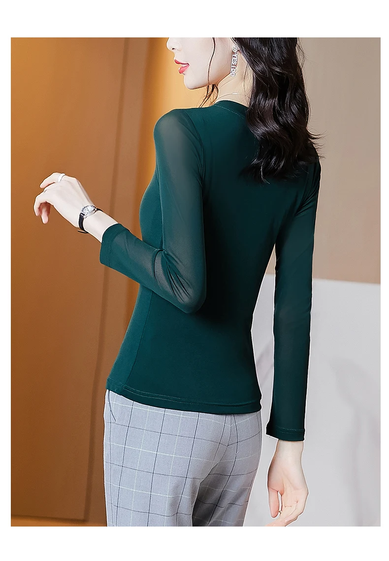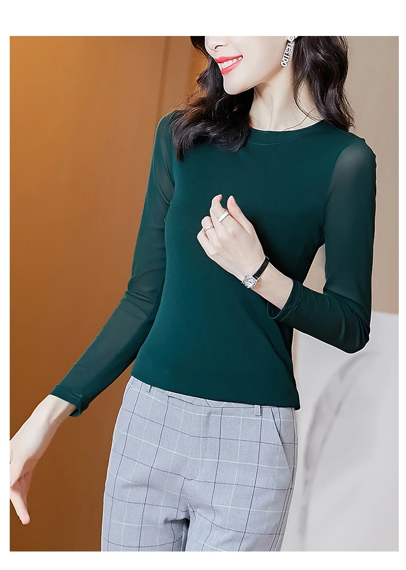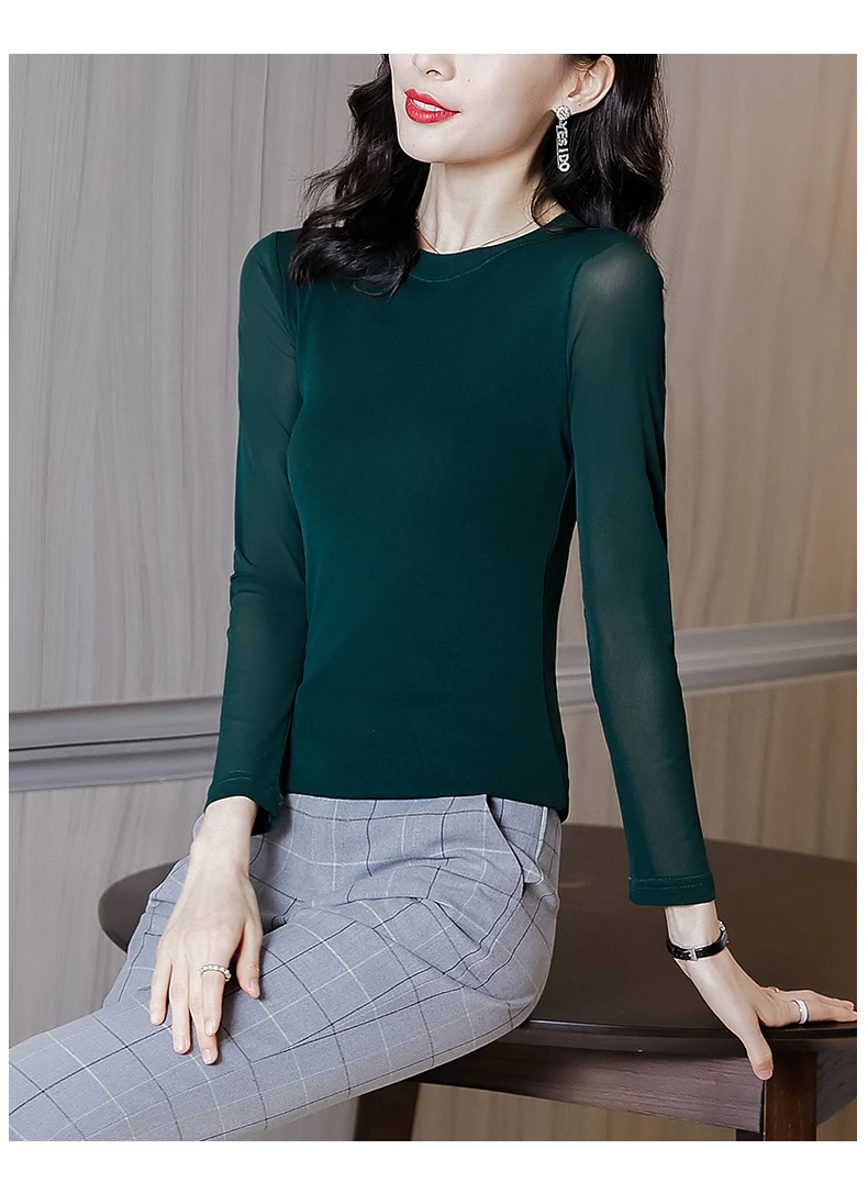 Znbbw Spring Women O-neck Long Sleeve Mesh T-shirts Tees Girls Solid Slim Tees T shirts Tops For Female Real Photos