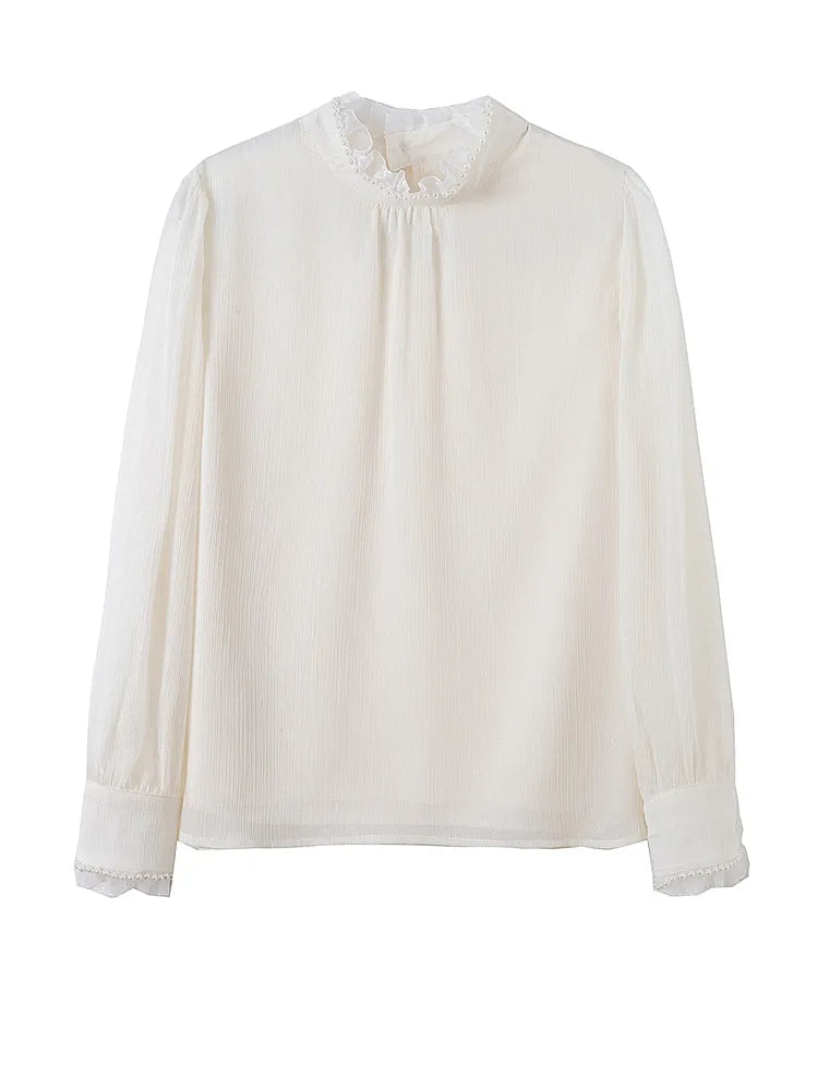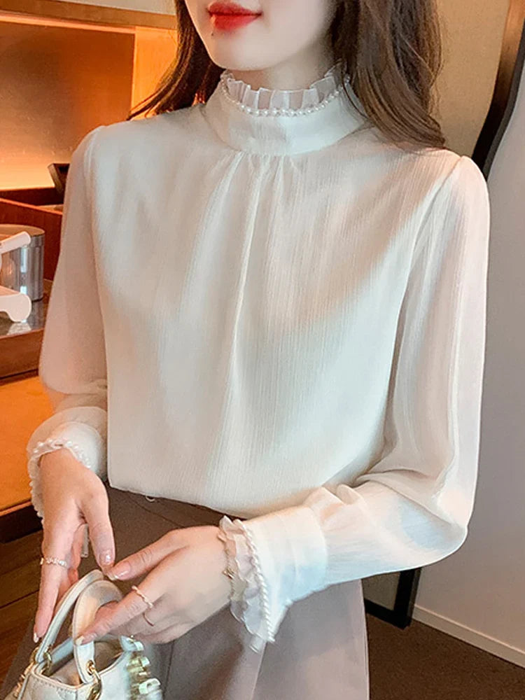 Znbbw Stand Collar Chiffon Blouse Shirt Long Sleeve Blouse Women Blusas Mujer De Moda 2023 Women Tops Blouses Femme Shirts E85