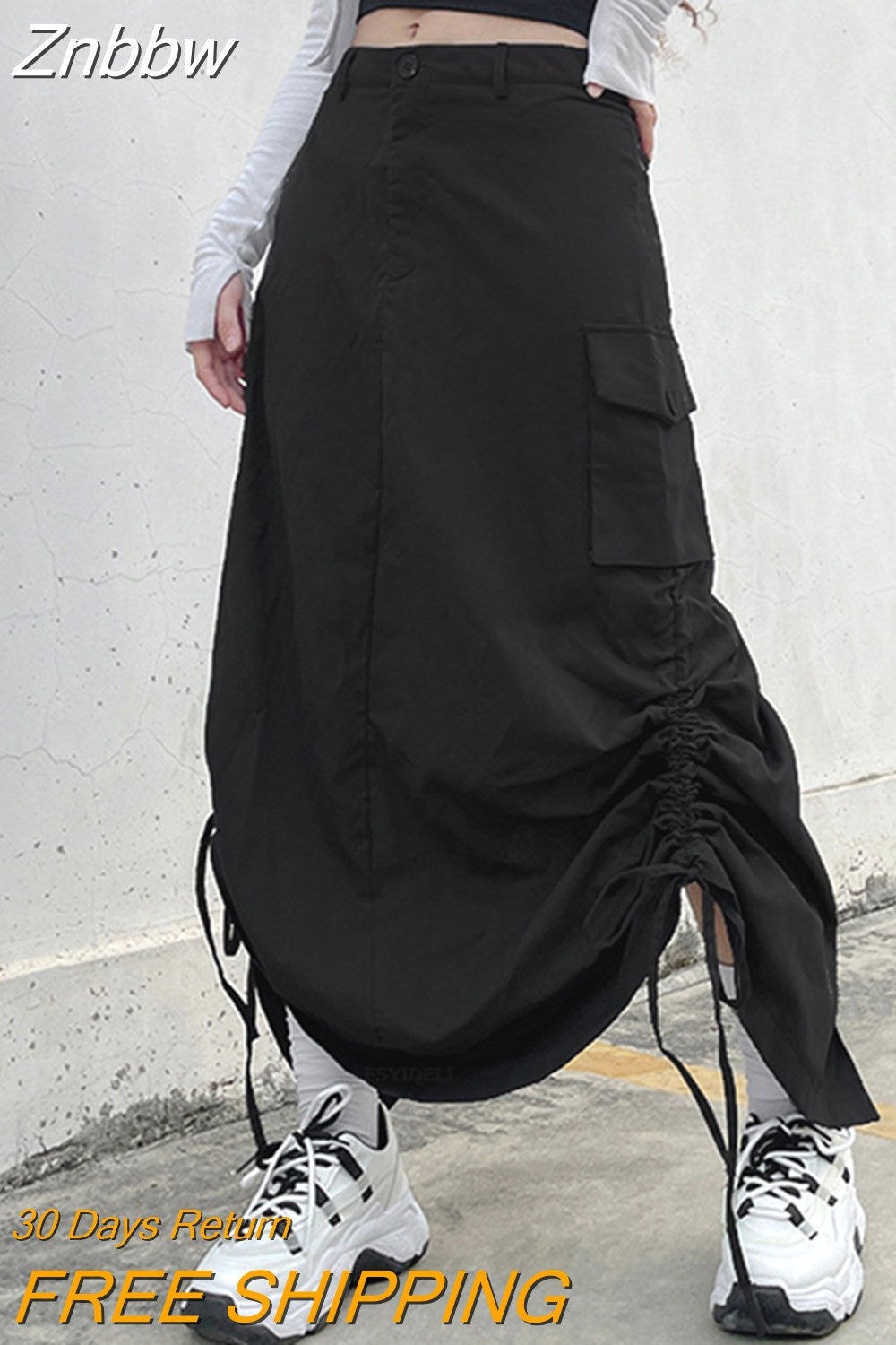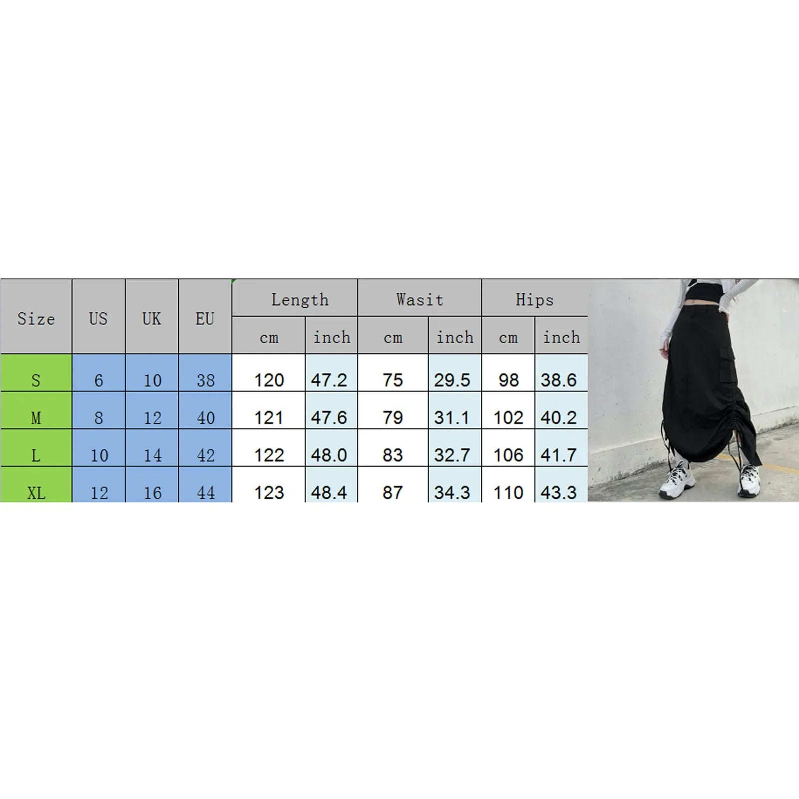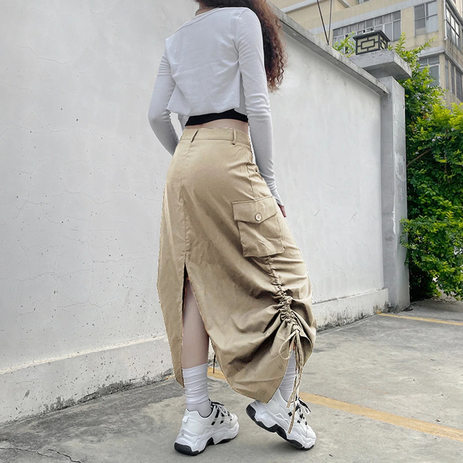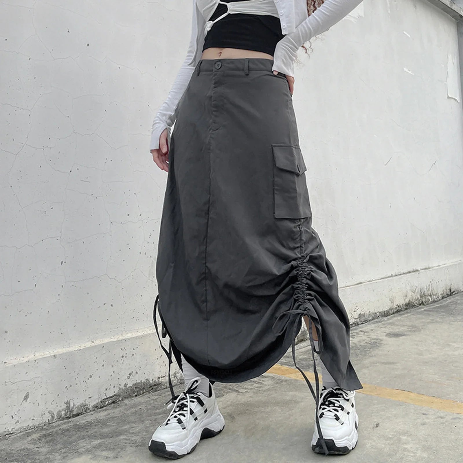 Znbbw Streetwear Women Long Skirt with Adjustable Drawstring Solid Color Casual Style Loose Summer Clothing