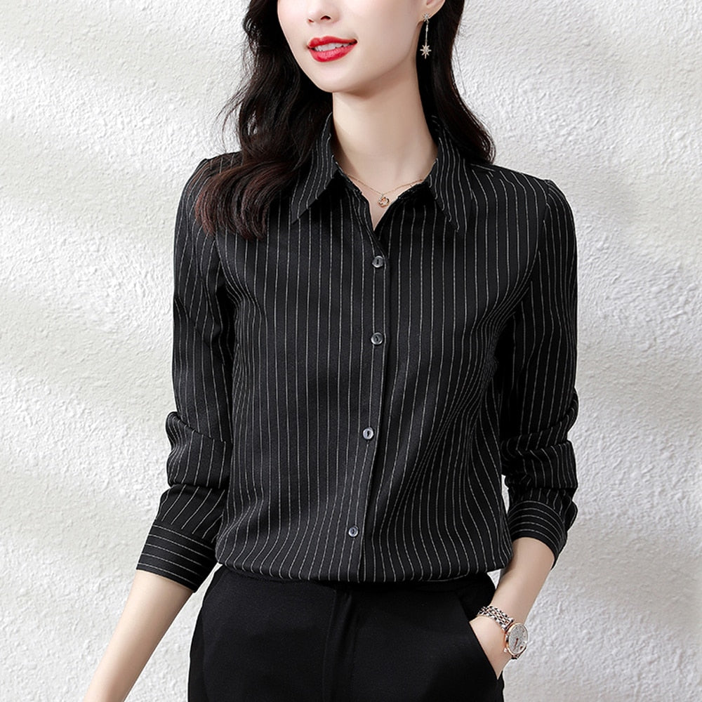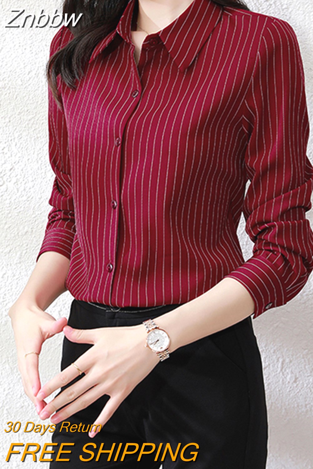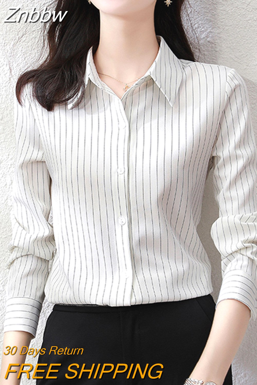 Znbbw Striped Shirts Women Korean Fashion Long Sleeve Blouse Top Women Elegant Office Lady High Quality Formal Clothing 2023