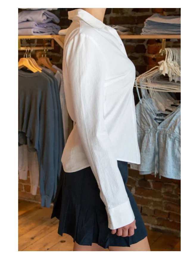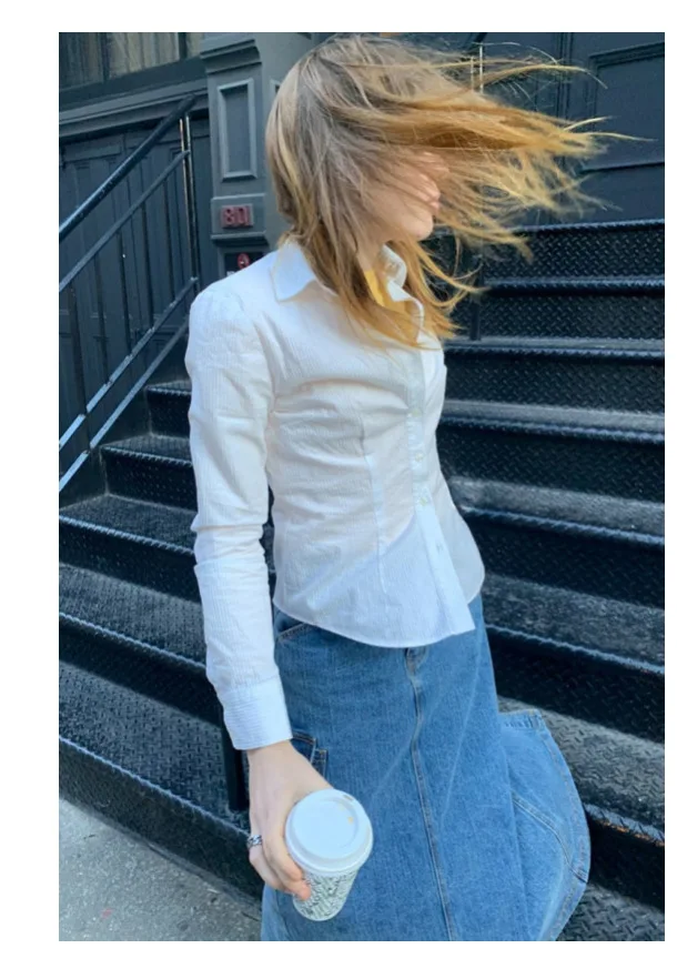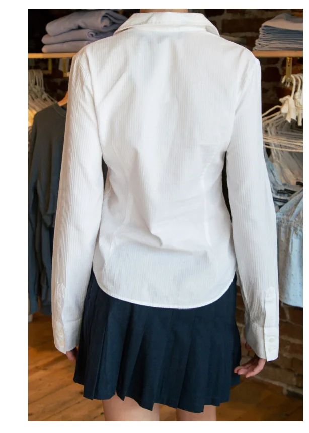 Znbbw Striped Slim T-shirts Women Autumn Turn-down Collar Irregular Hem Cotton Long Sleeve T Shirt Casual Harajuku Solid Y2k Top