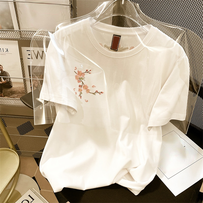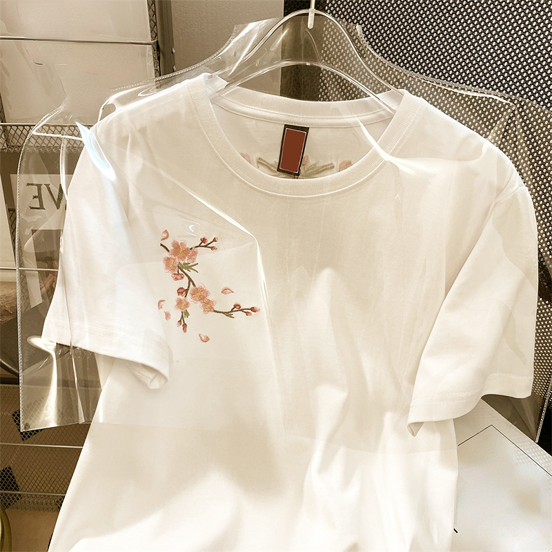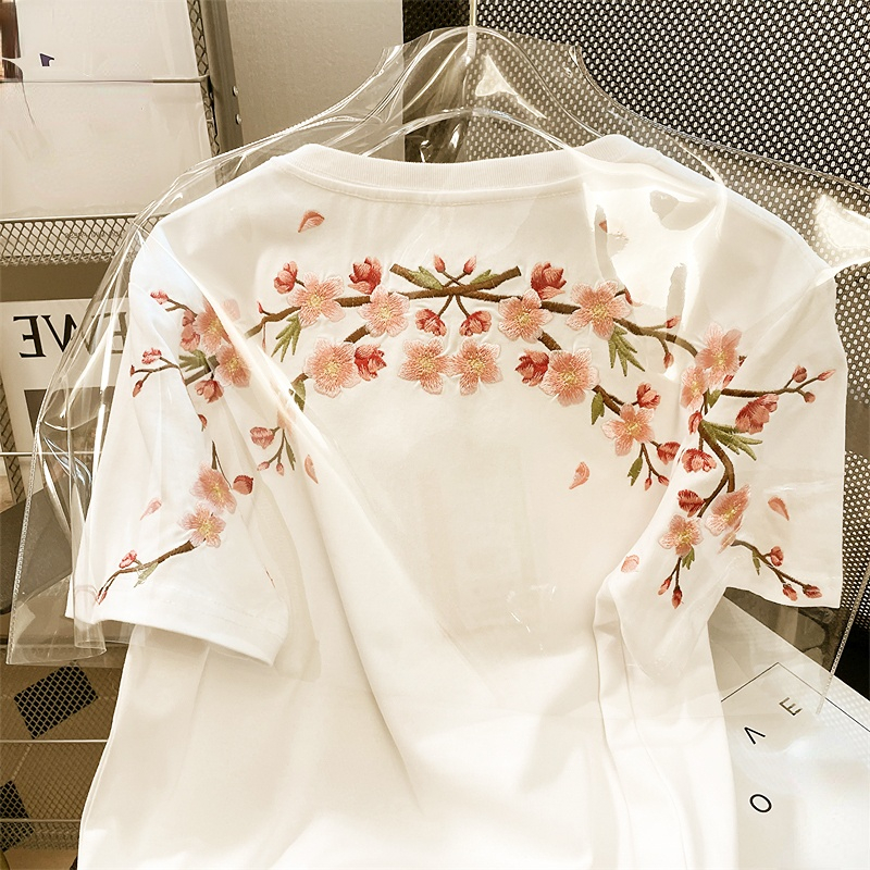 Znbbw Styl T Shirts O Neck Short Sleeve Flower Embroidery Top Tees Summer Casual Loose 90s Fashion Vintage Chic Women Clothes