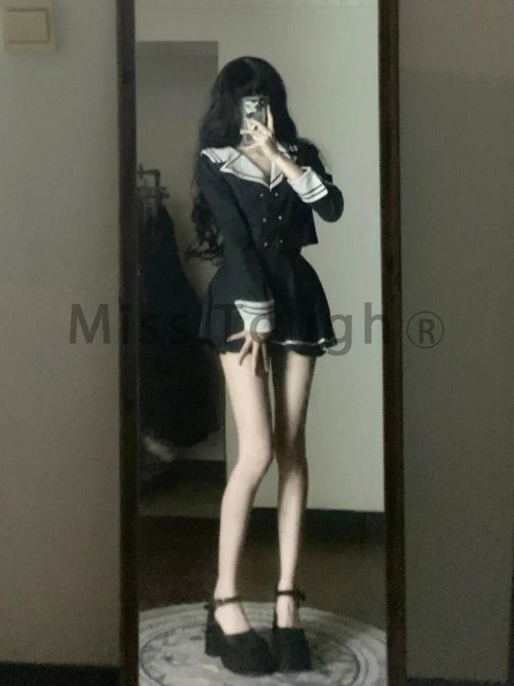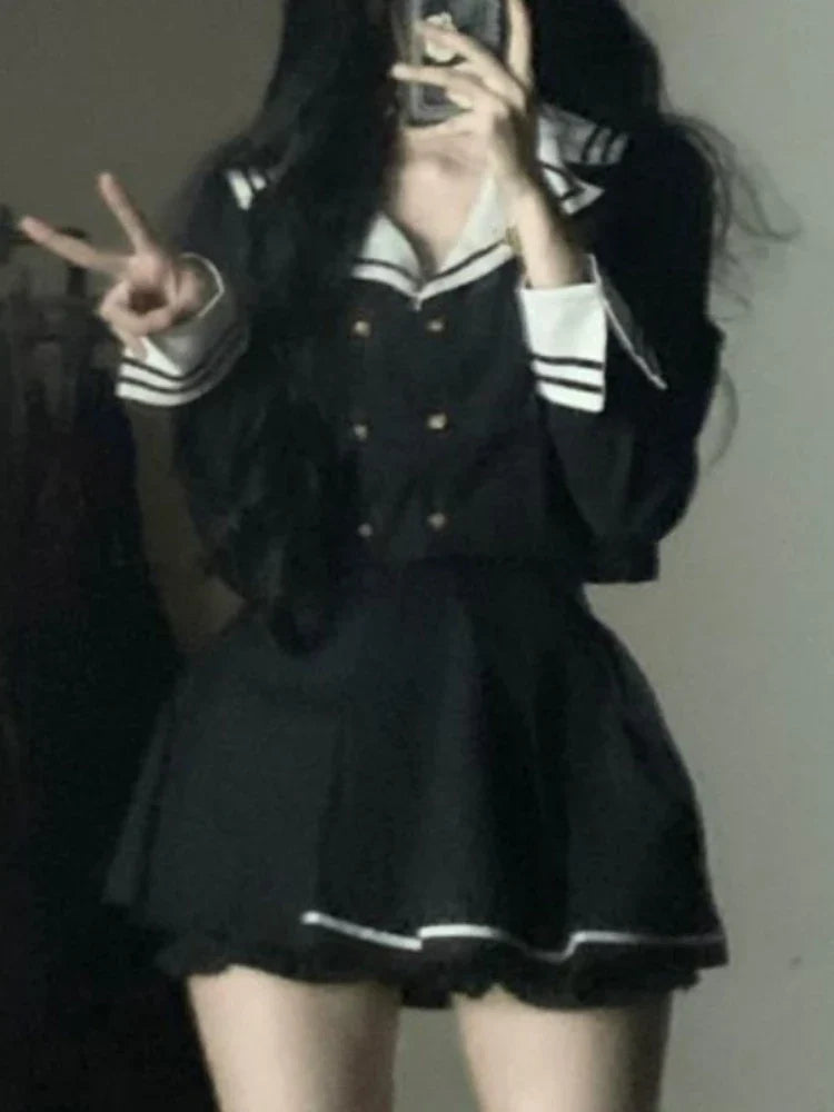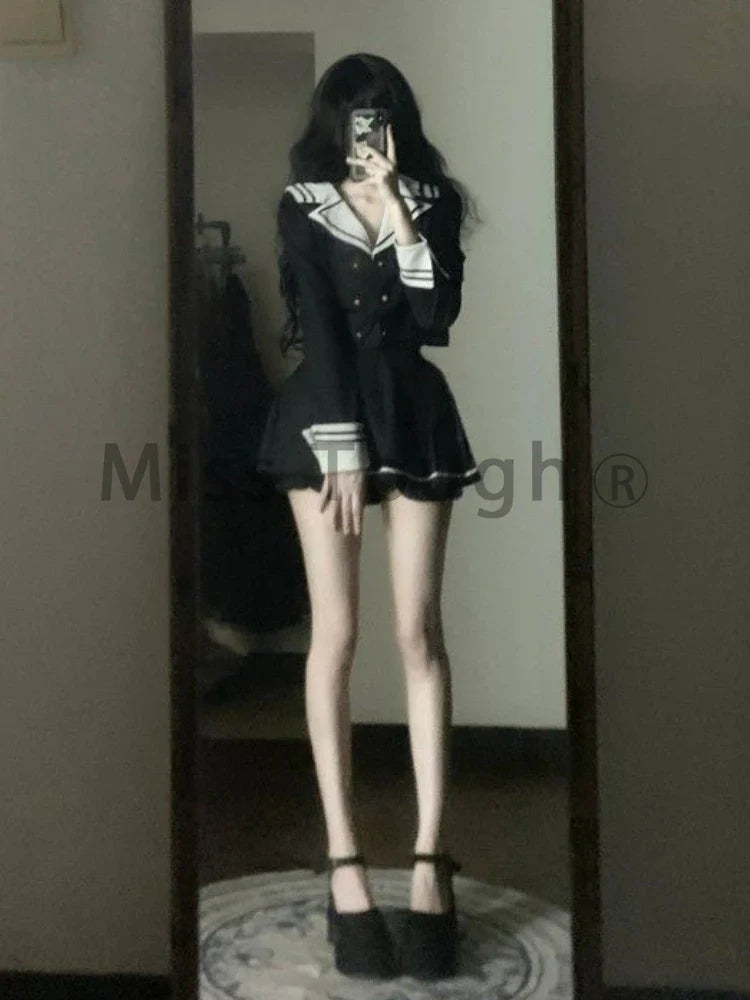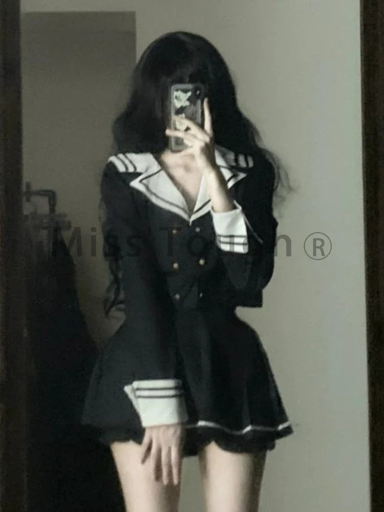 Znbbw Style Kawaii Two Piece Set Women Sailor Collar Design Sweet Skirts Suit Female Elegant Tops + Mini Skirt 2024 Winter New