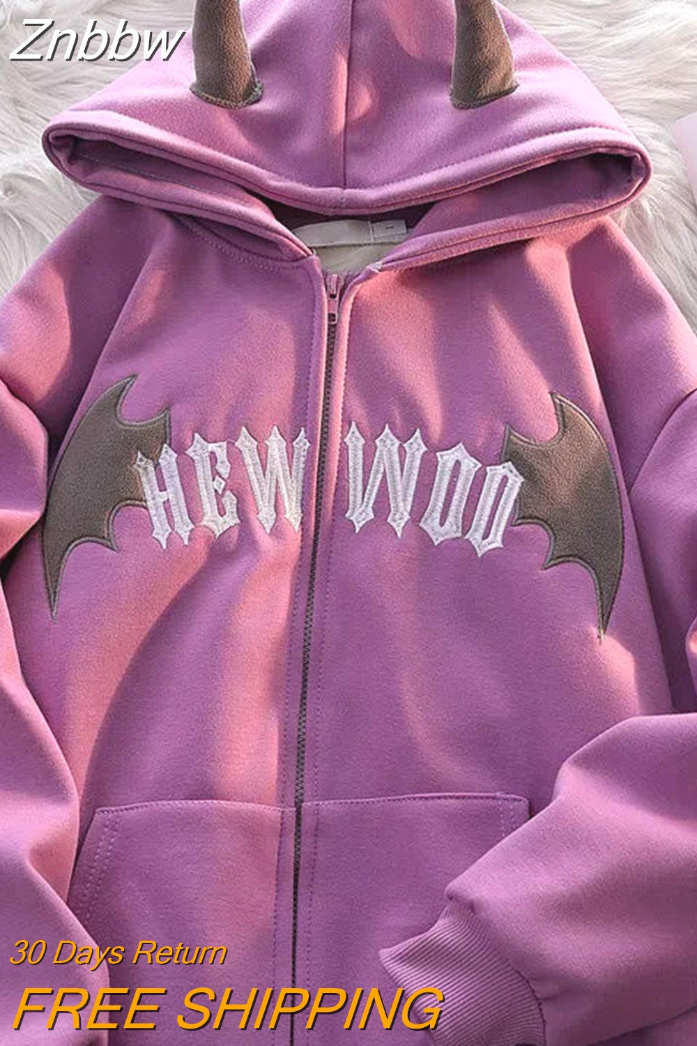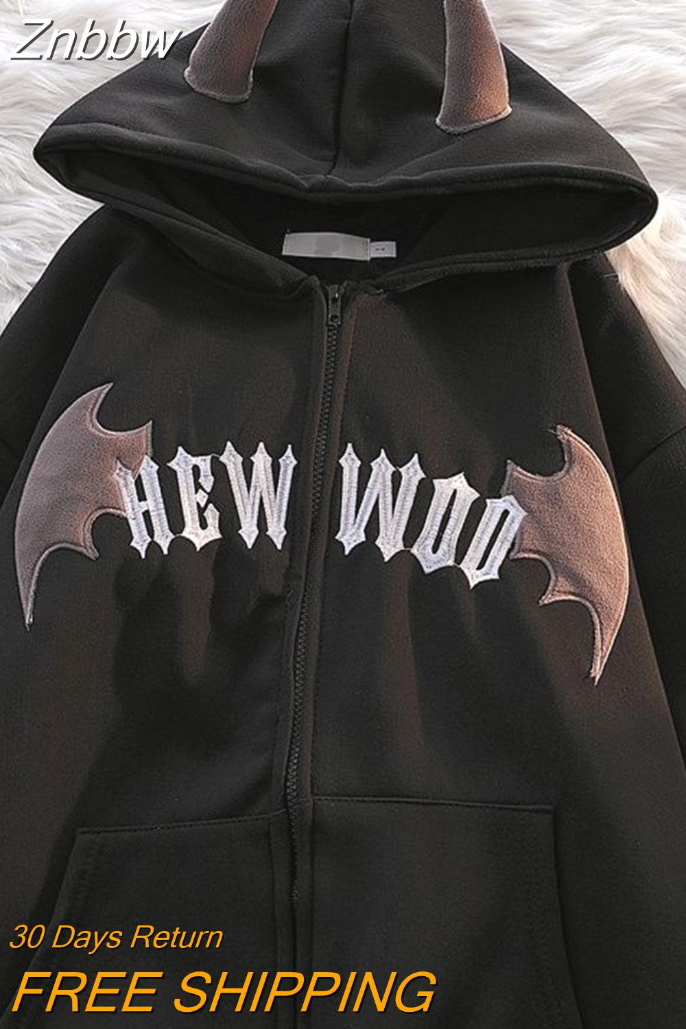 Znbbw style sweater vintage autumn winter original little devil horn cardigan hooded sweater fashion loose coat top