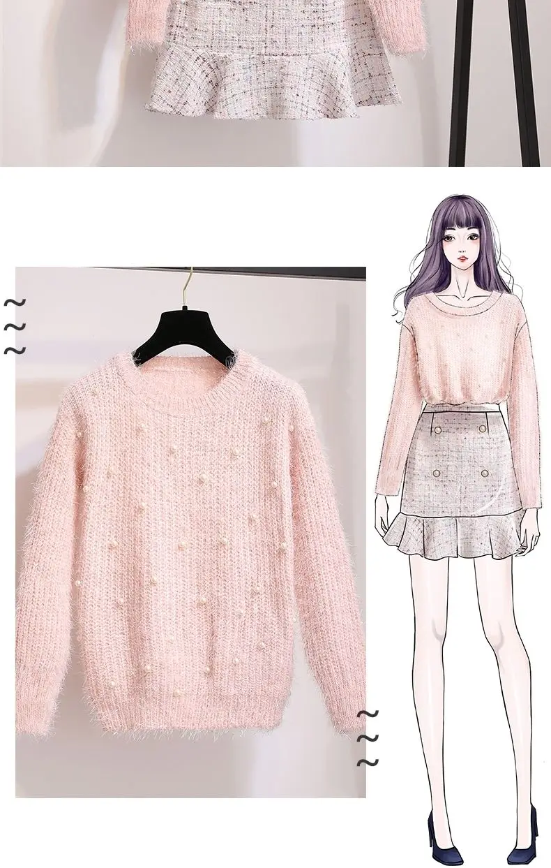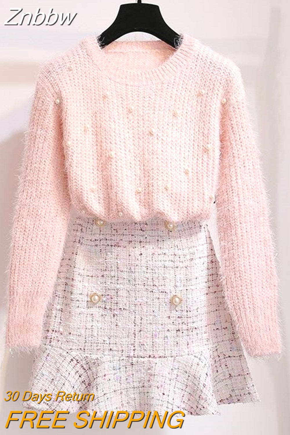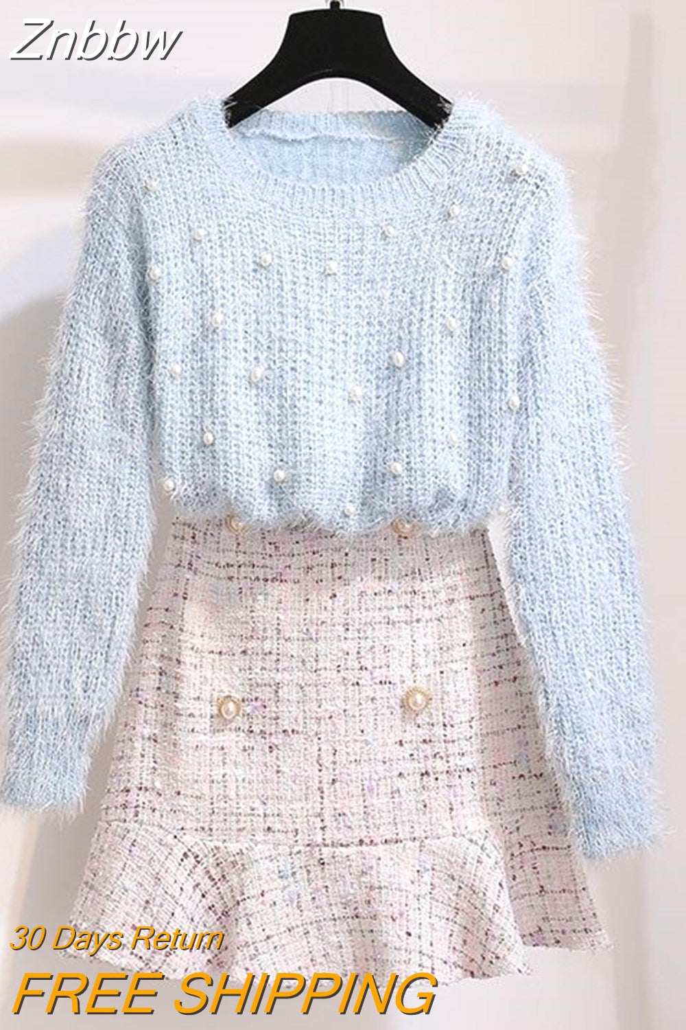 Znbbw Suit Female Korean High Street Long-sleeve Sweater + Half Body Skirt Women Black 2pcs Set