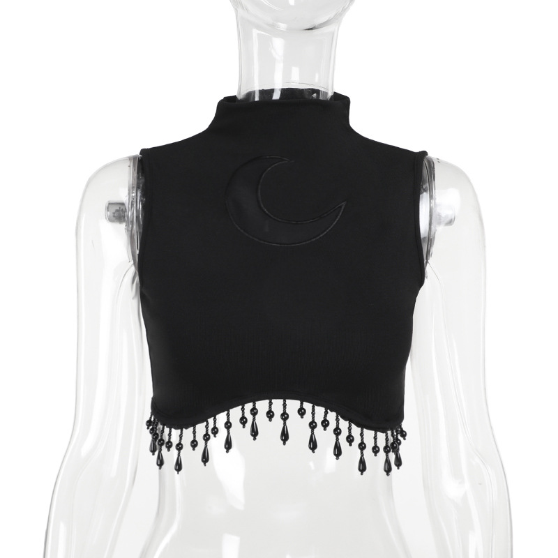 Znbbw Summer 2024 New Vest Dark Wind Moon Chain Small High-Necked Sleeveless Top Girl