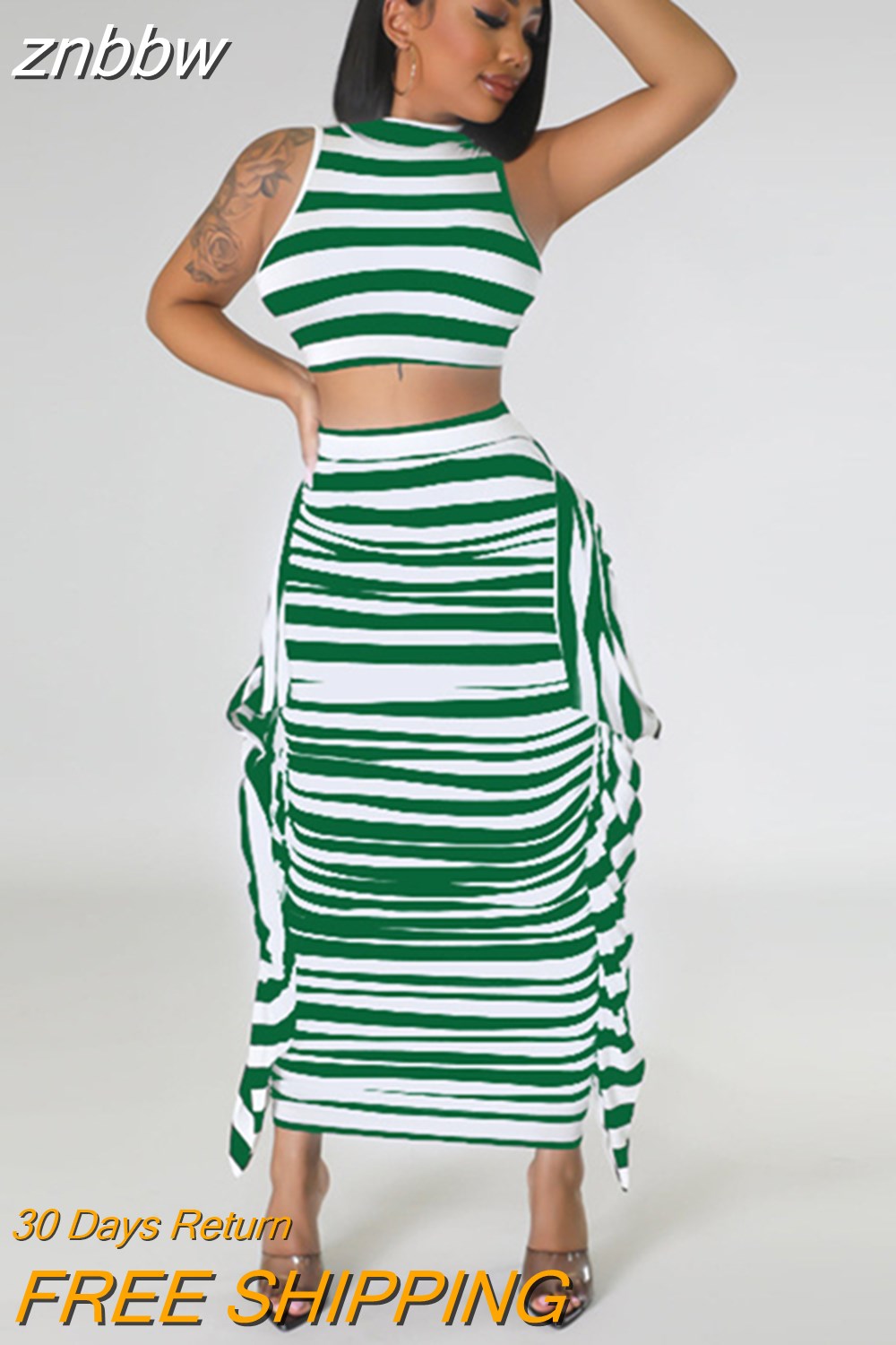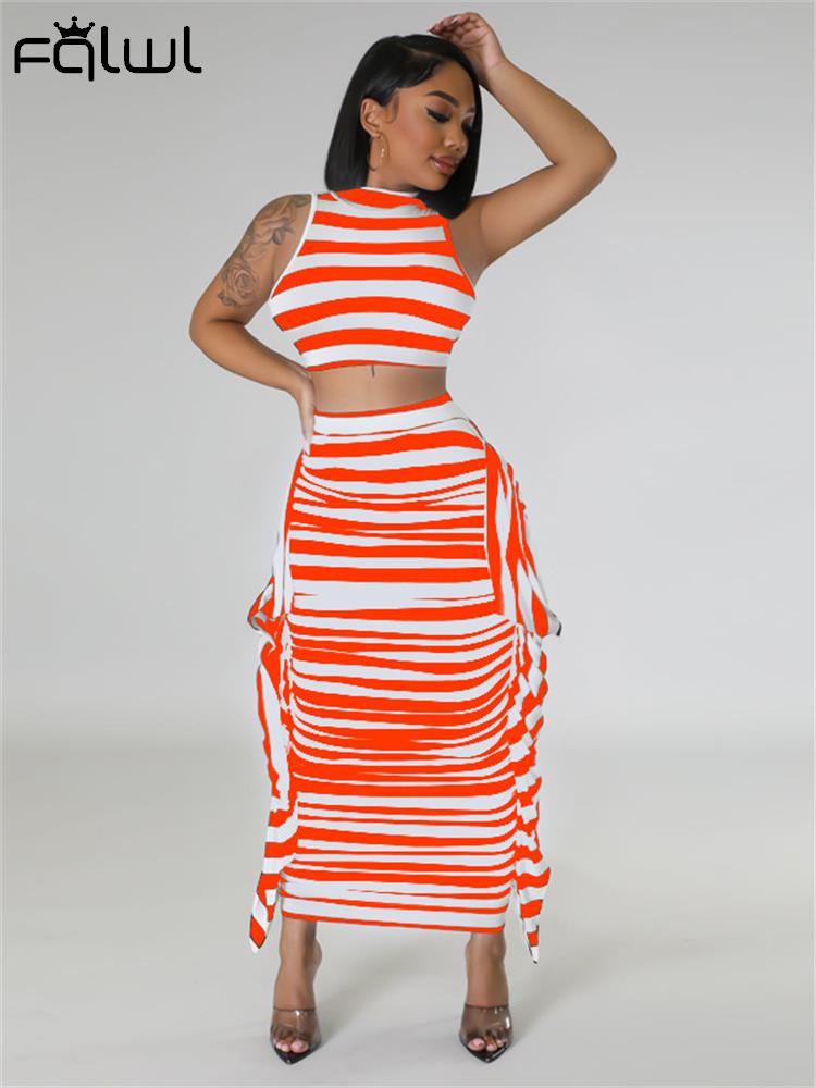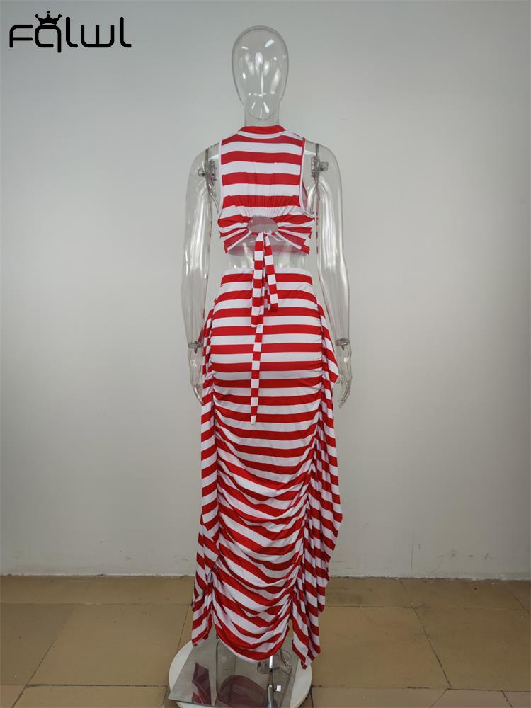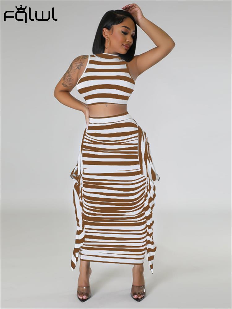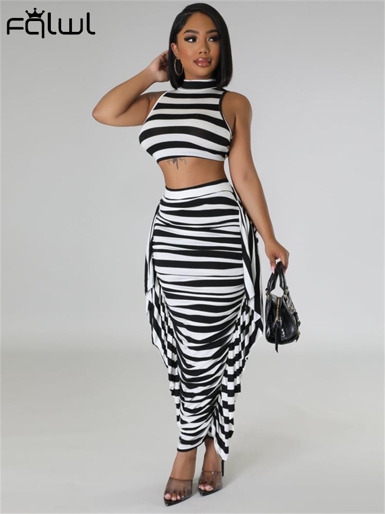 znbbw Summer Balck White Stripe 2 Two Piece Outfit Set For Women 2023 Bodycon Maxi Skirts Sets Casual Vacation Long Skirts