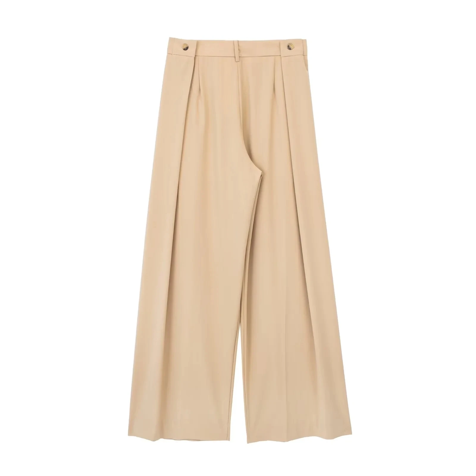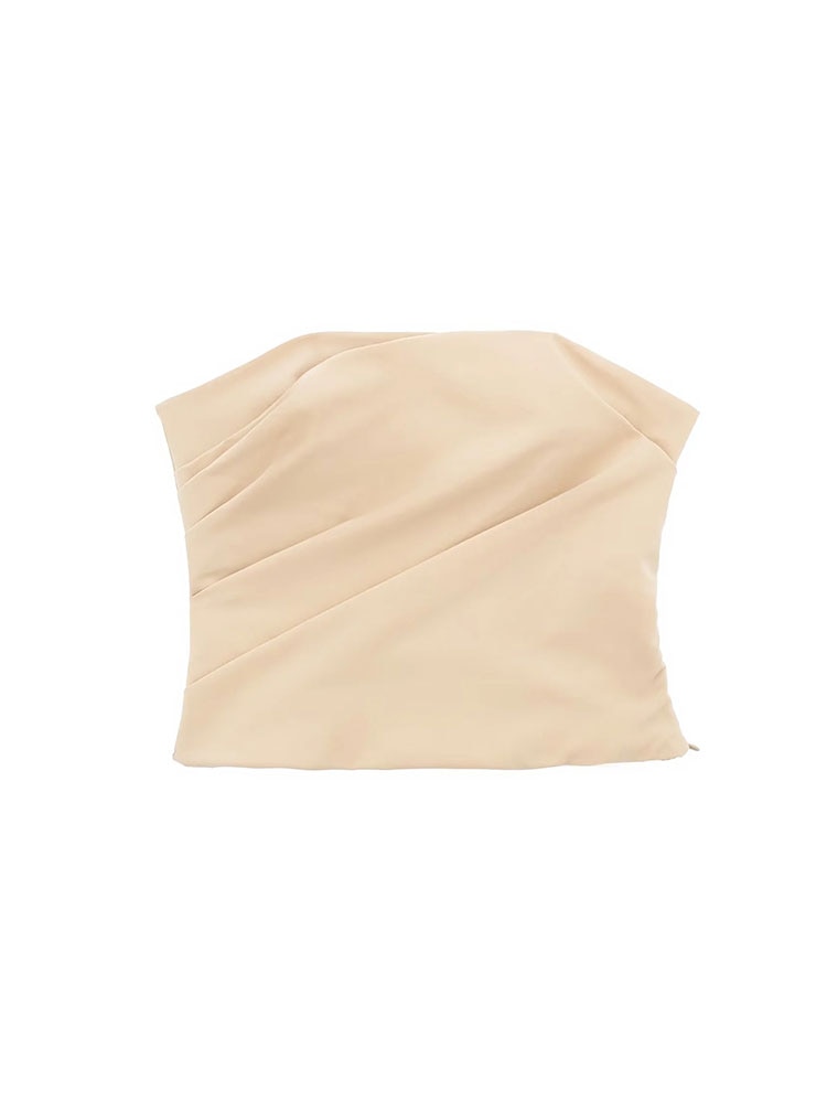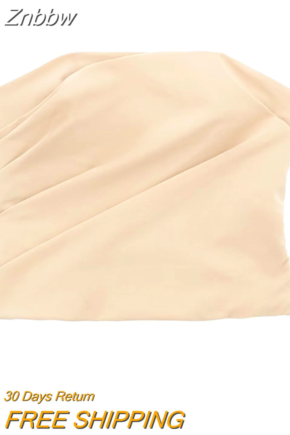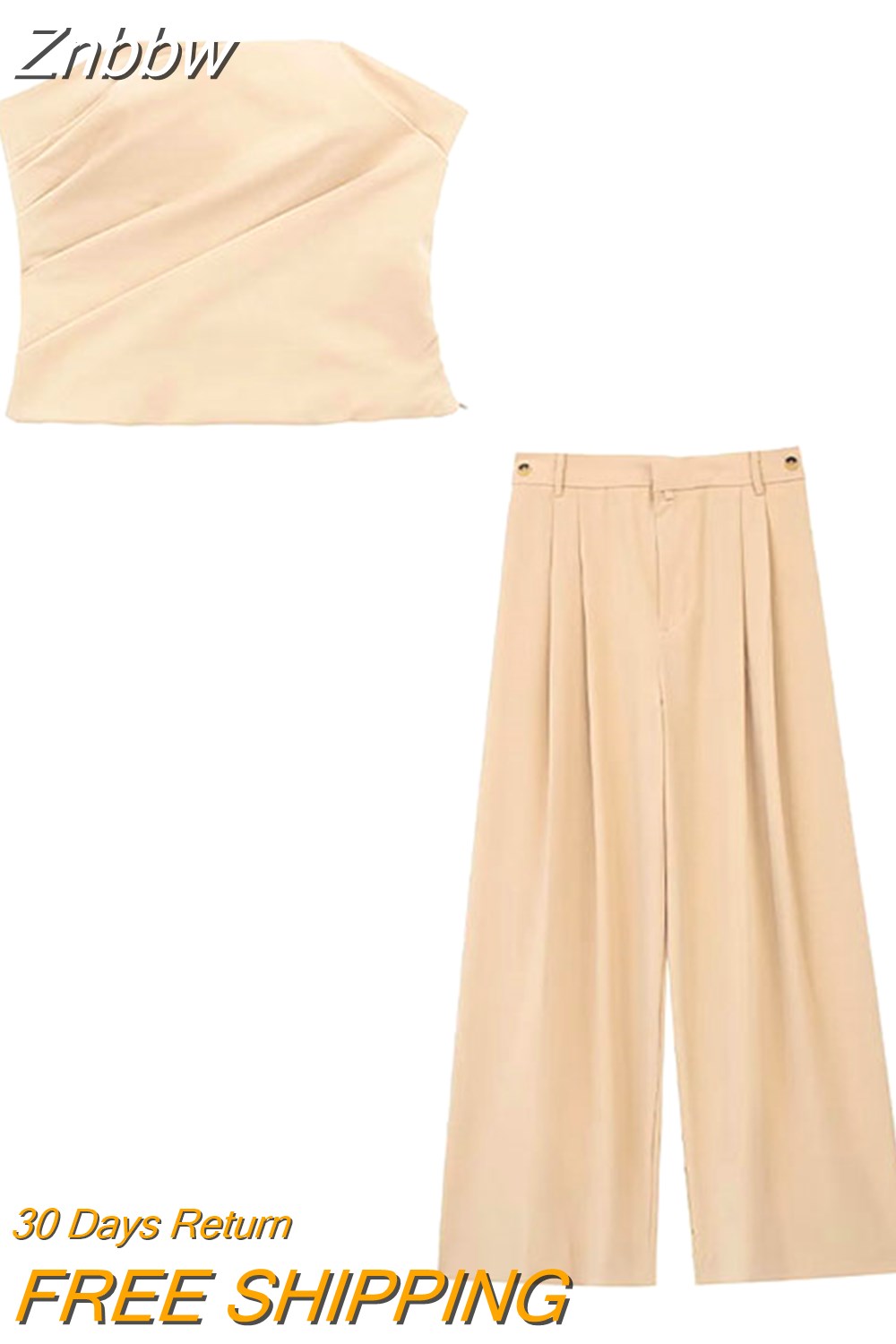 Znbbw Summer Fashion Women 2 Piece Sets Folds Slim Crop Vest Sleeveless Strapless Top Wide Pants Female Suits Outfits