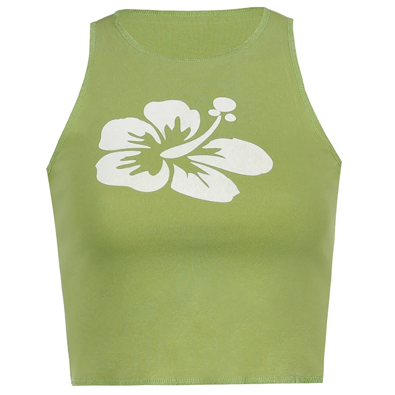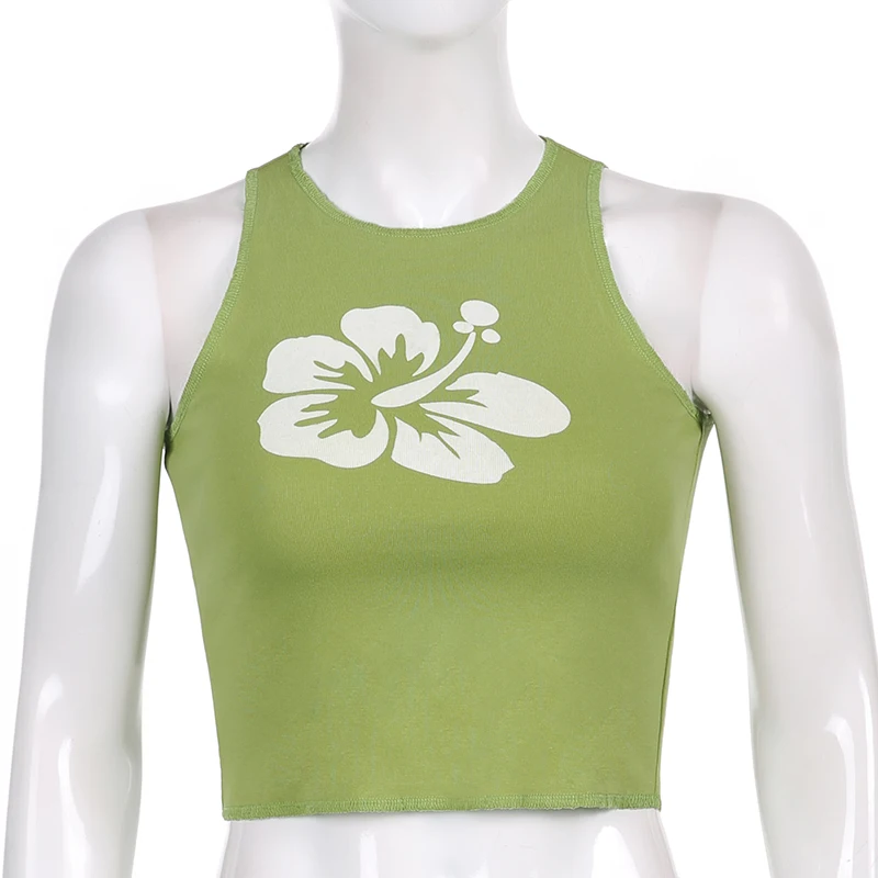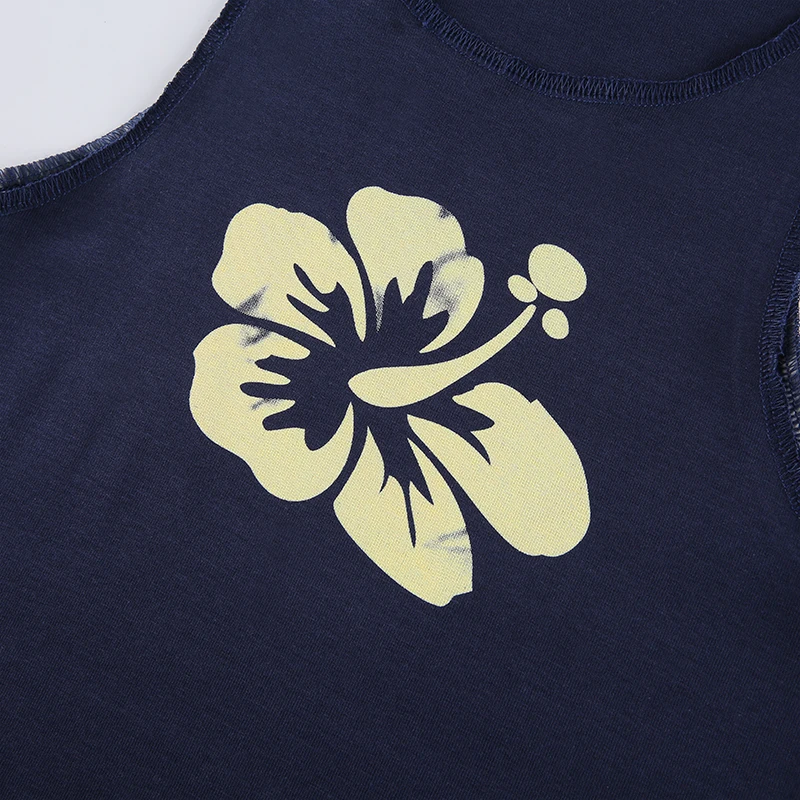 Znbbw Summer New Sports Sexy Sleeveless Tank Top Flower Bottom Slim Fit Elastic Top for Women