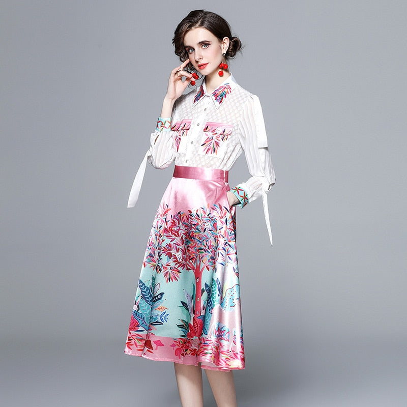 Znbbw Summer Two Piece Skirt Set 2023 Women Fashion Pockets Irregular Blouses and A-Line Floral Print Pink Long Skirt Set N2959