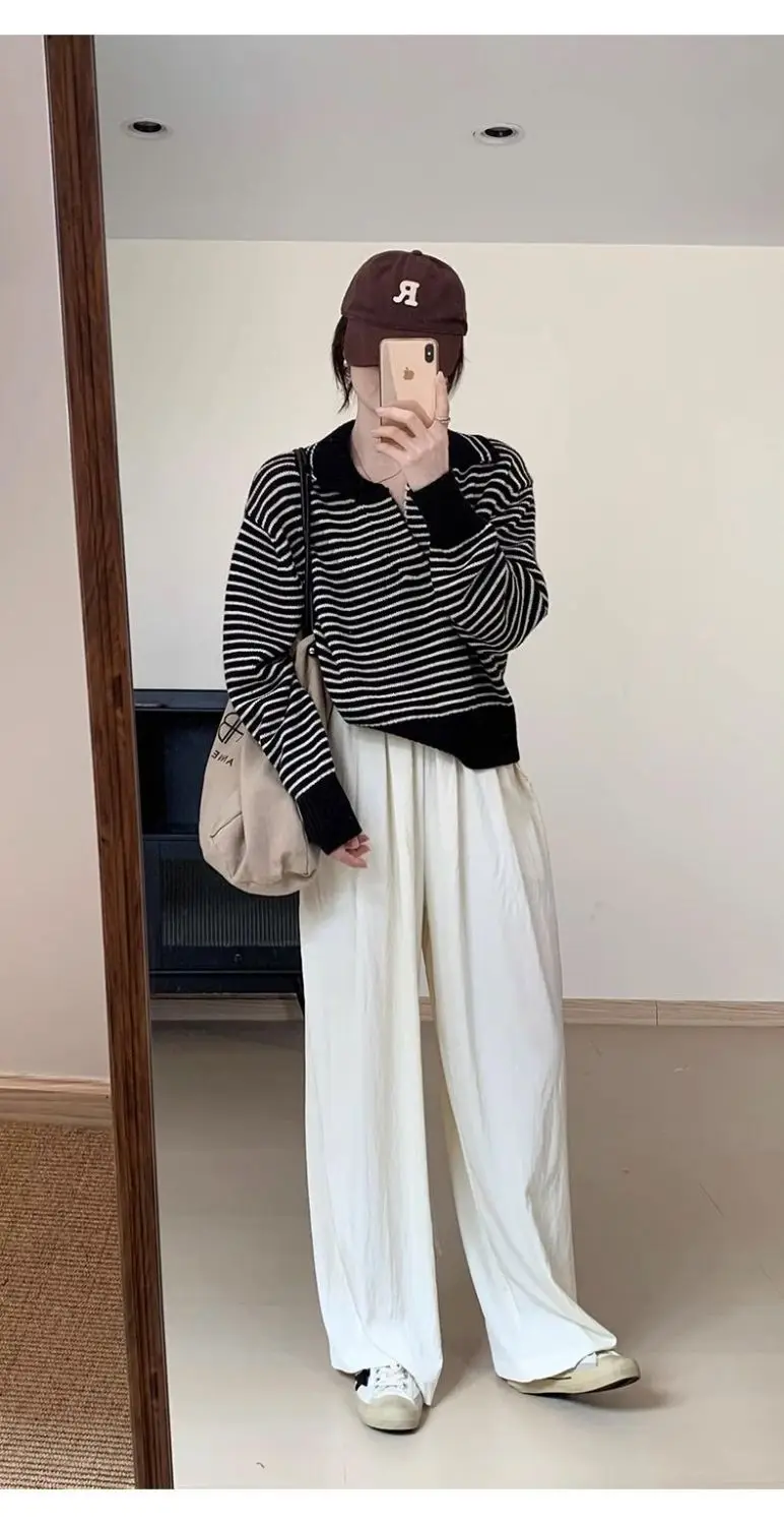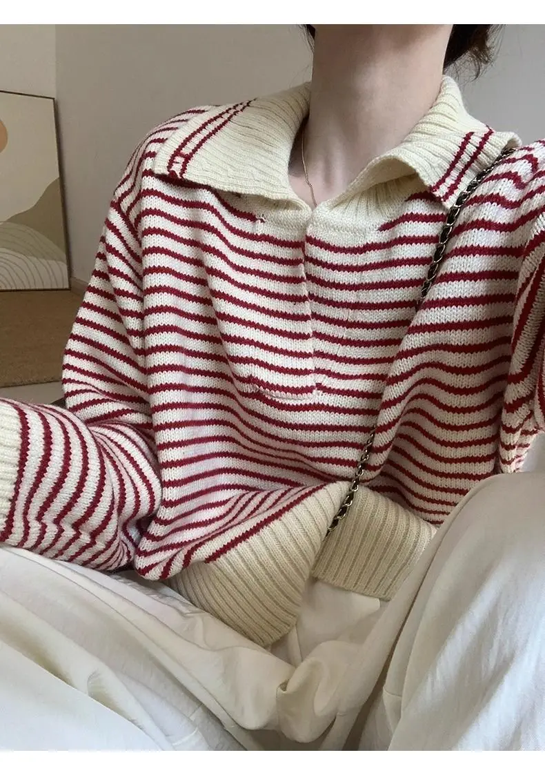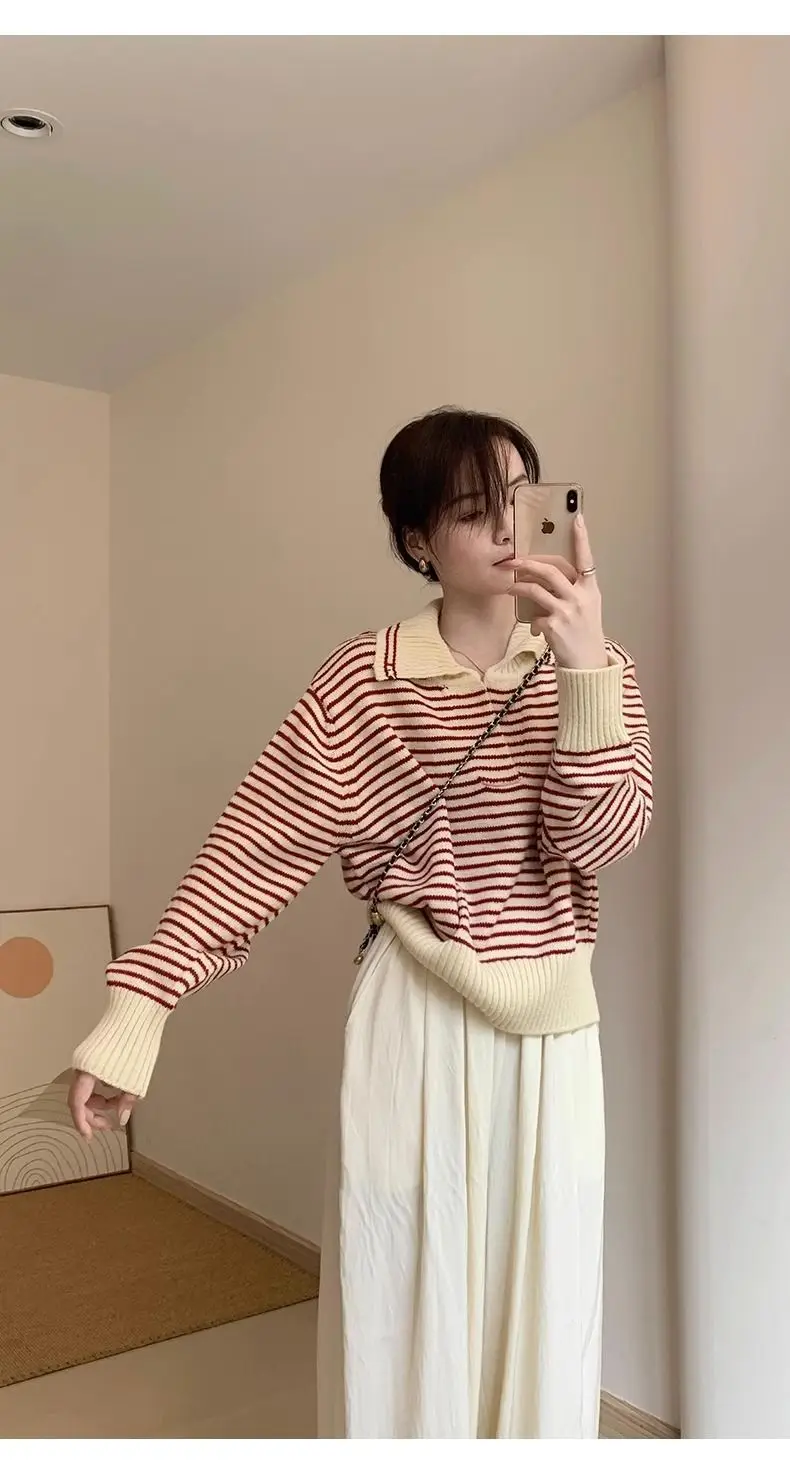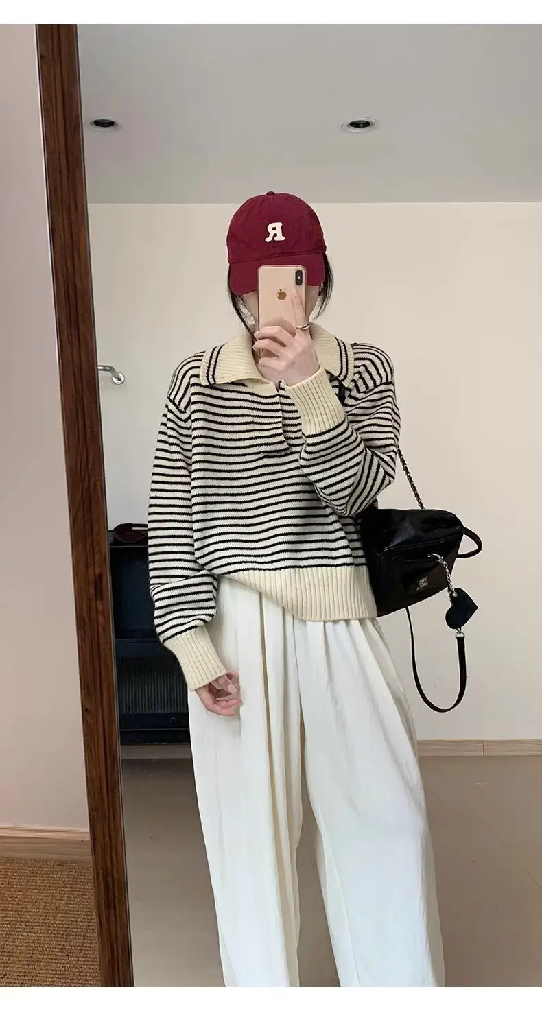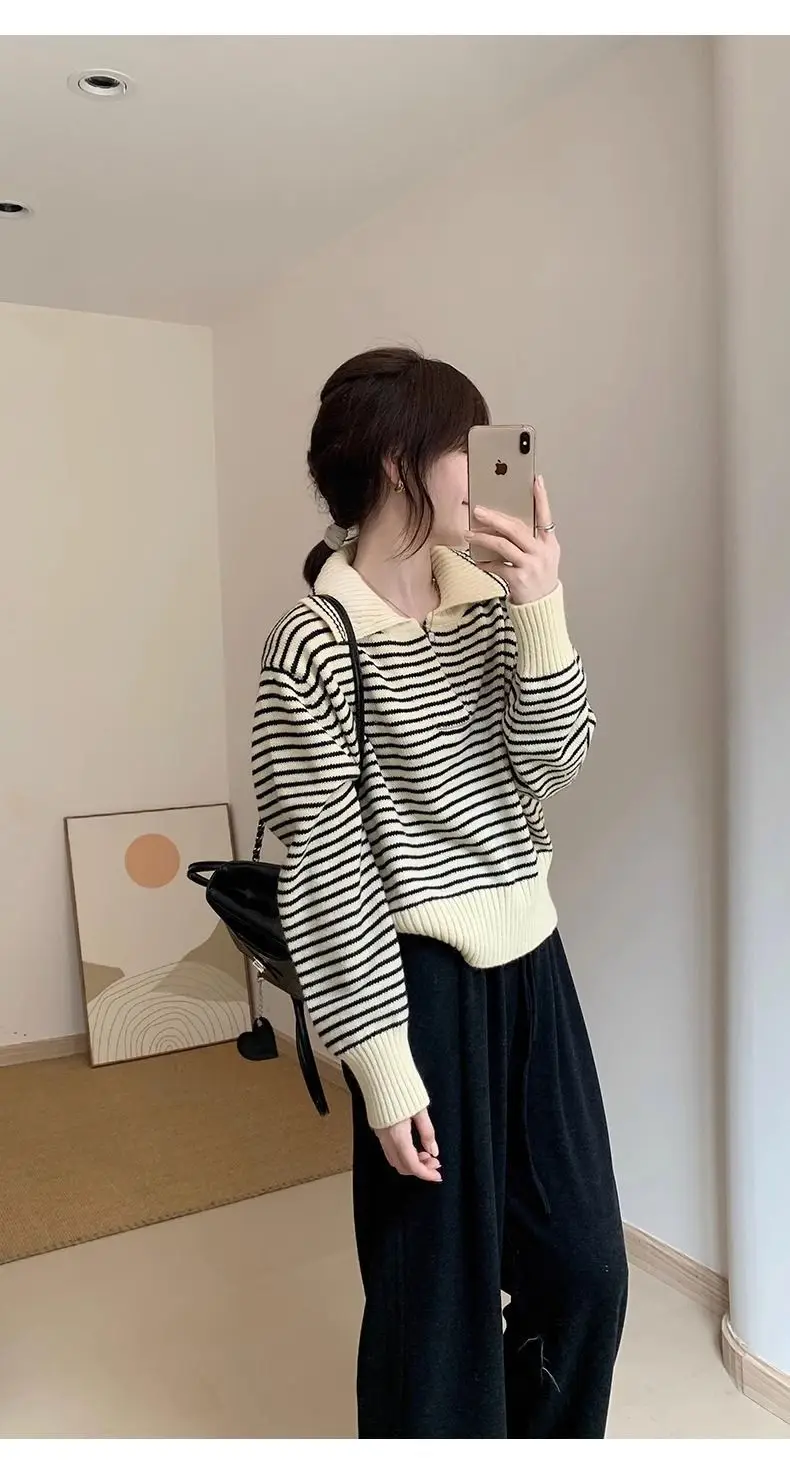 Znbbw Sweater Female 2024 Korean Women Autumn Academy Sweater Loose and Slim Versatile Striped Top Long Sleeve Knit Sweater