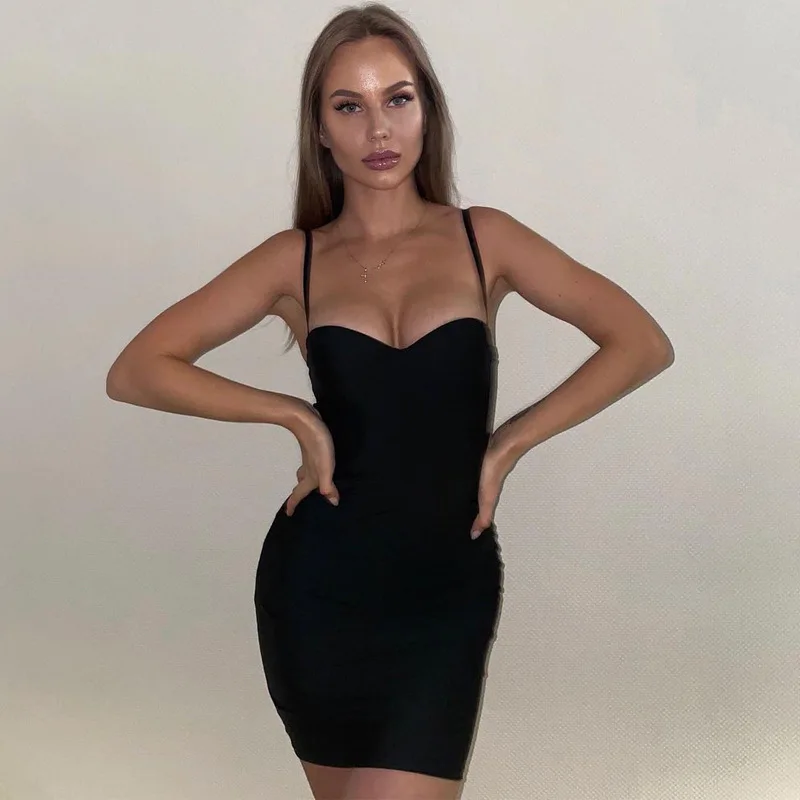 Znbbw Sweetheart Neck Party Night Sexy Black Dress Summer Spaghetti Strap Club Outfits for Women Mini Length Dresses