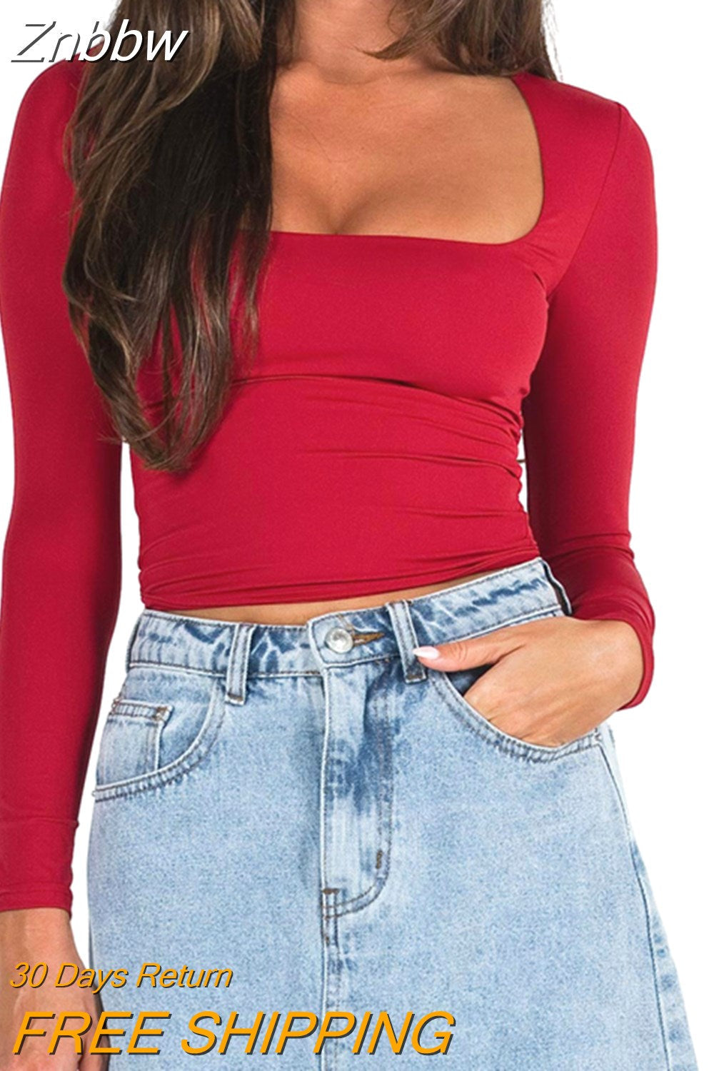 Znbbw Tees y2k Clothes For Women Solid Color O Neck Long Sleeve T Shirt 2000s Crop Tops Casual Streetwear