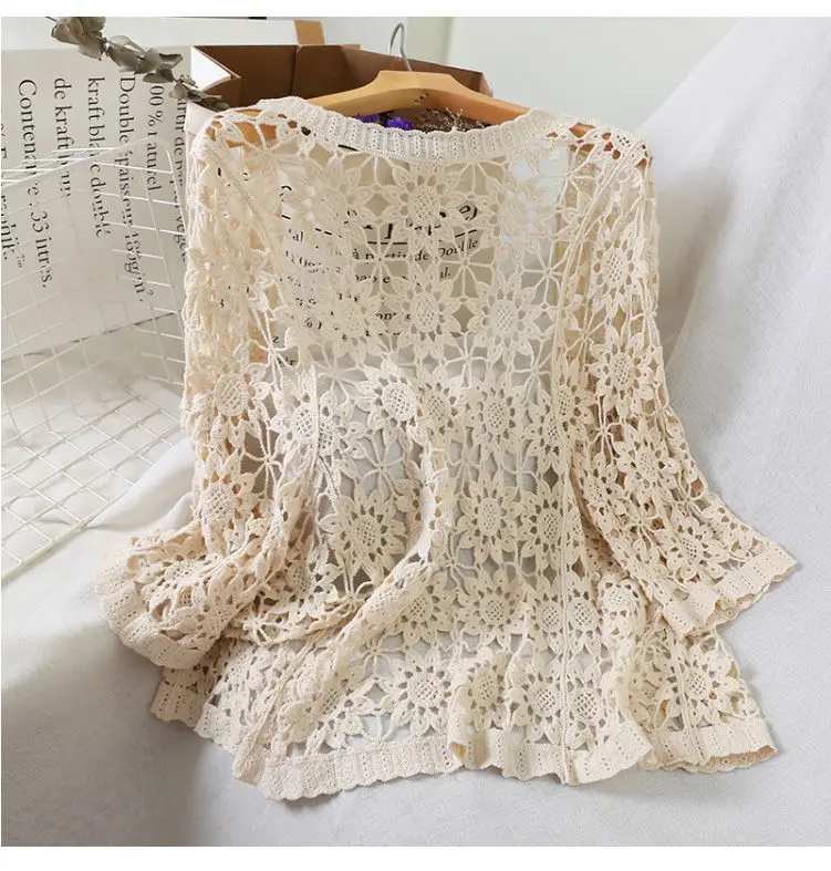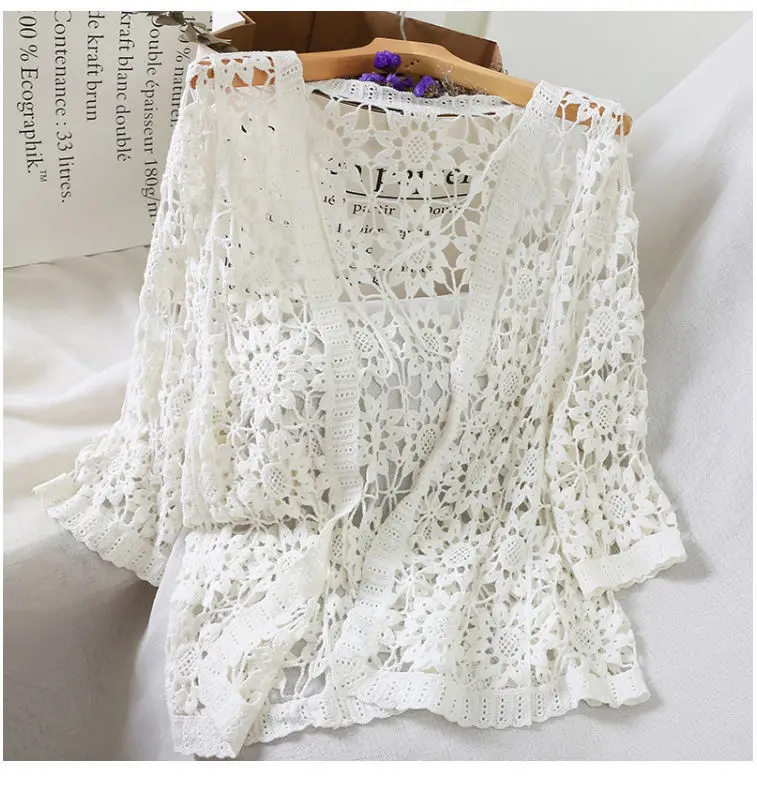 Znbbw thin shawl with new solid color lace camisole jacket, women's cardigan, hollowed out knit sweater