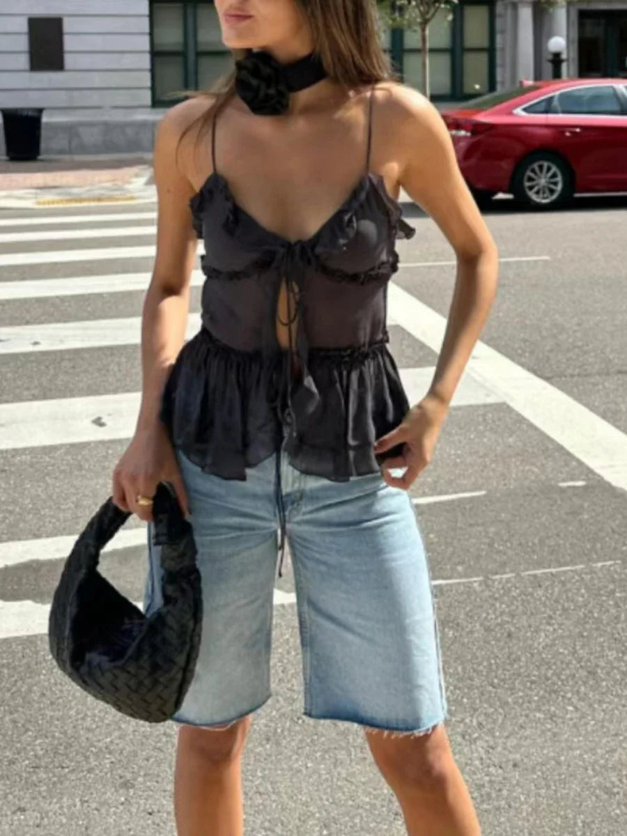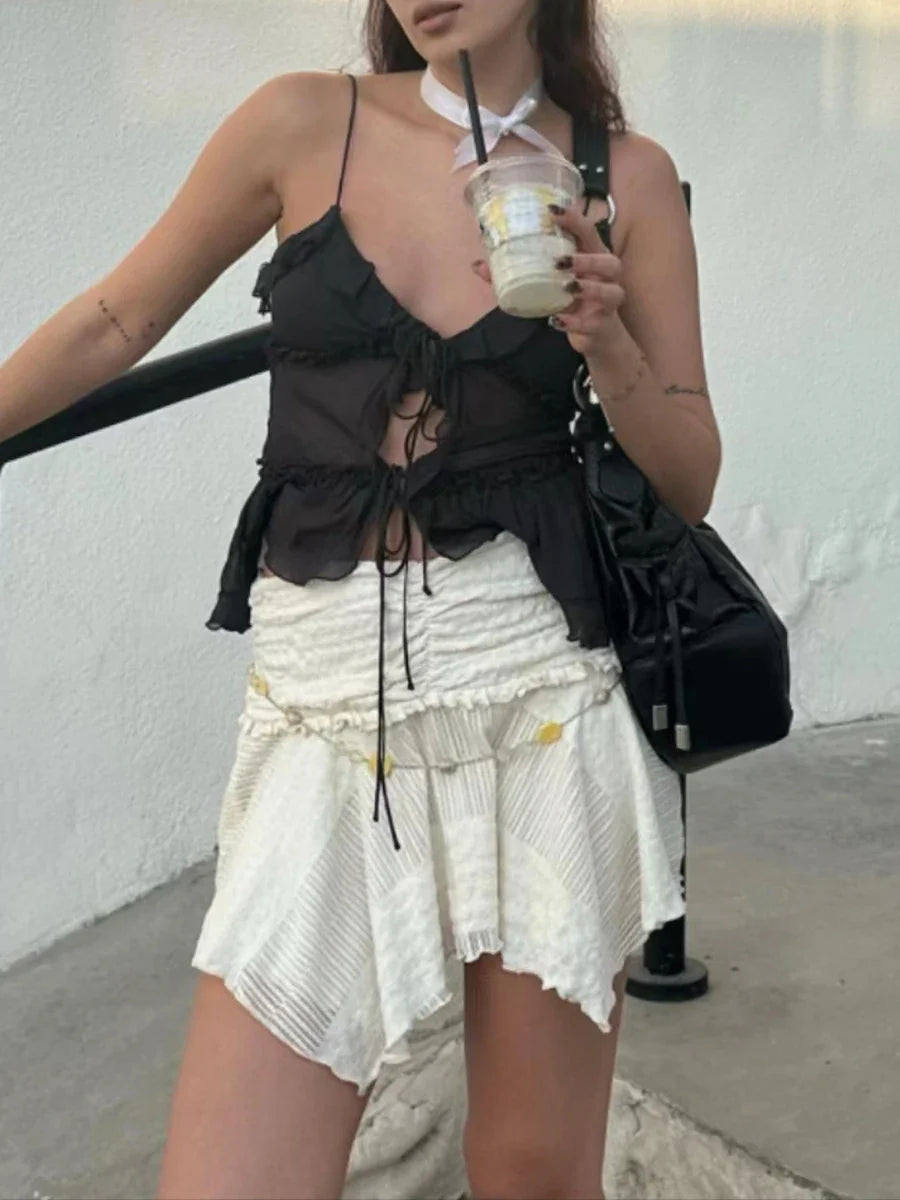 Znbbw Tie Front Tops For Women Halterneck Crop Cami Bandage Open Front Backless Sleeveless Tank Top Summer Clothing