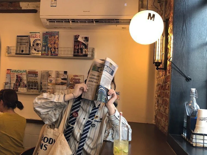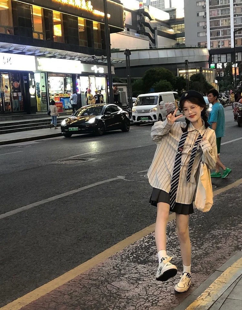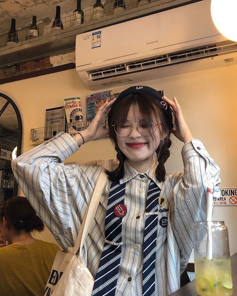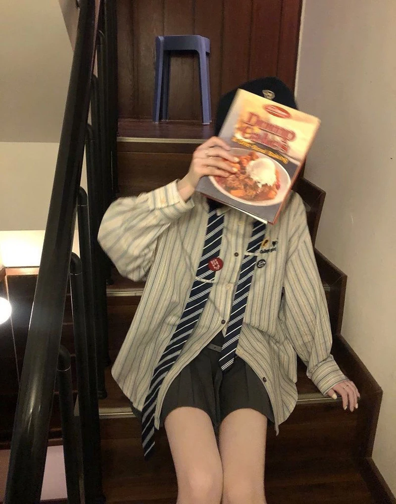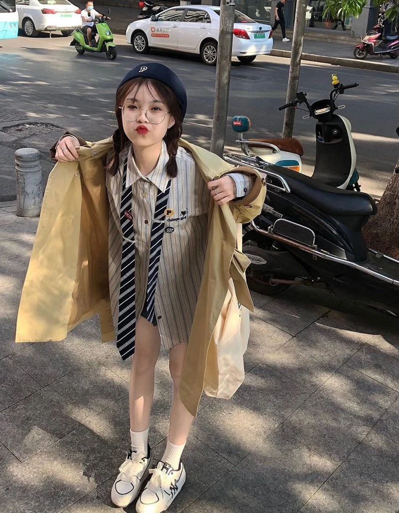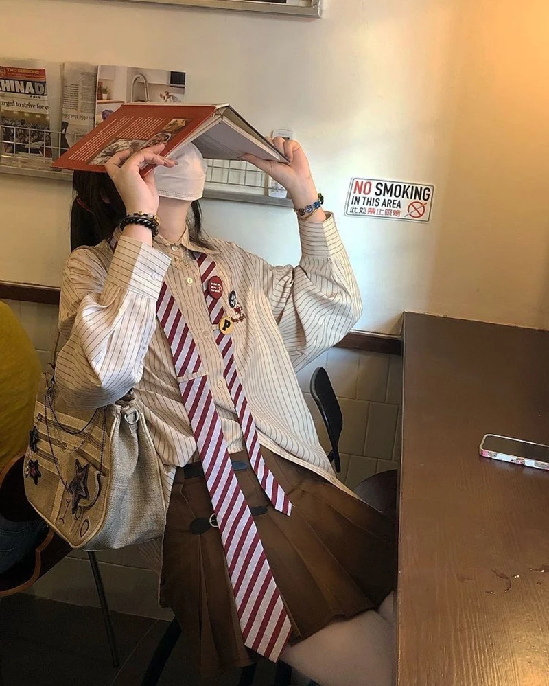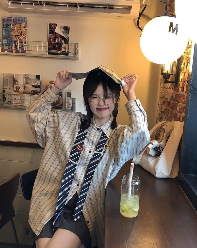 Znbbw Tie Striped Shirts Women Harajuku Brooch Oversized Long Sleeve Blouses Streetwear Korean Preppy Print Loose Casual Tops