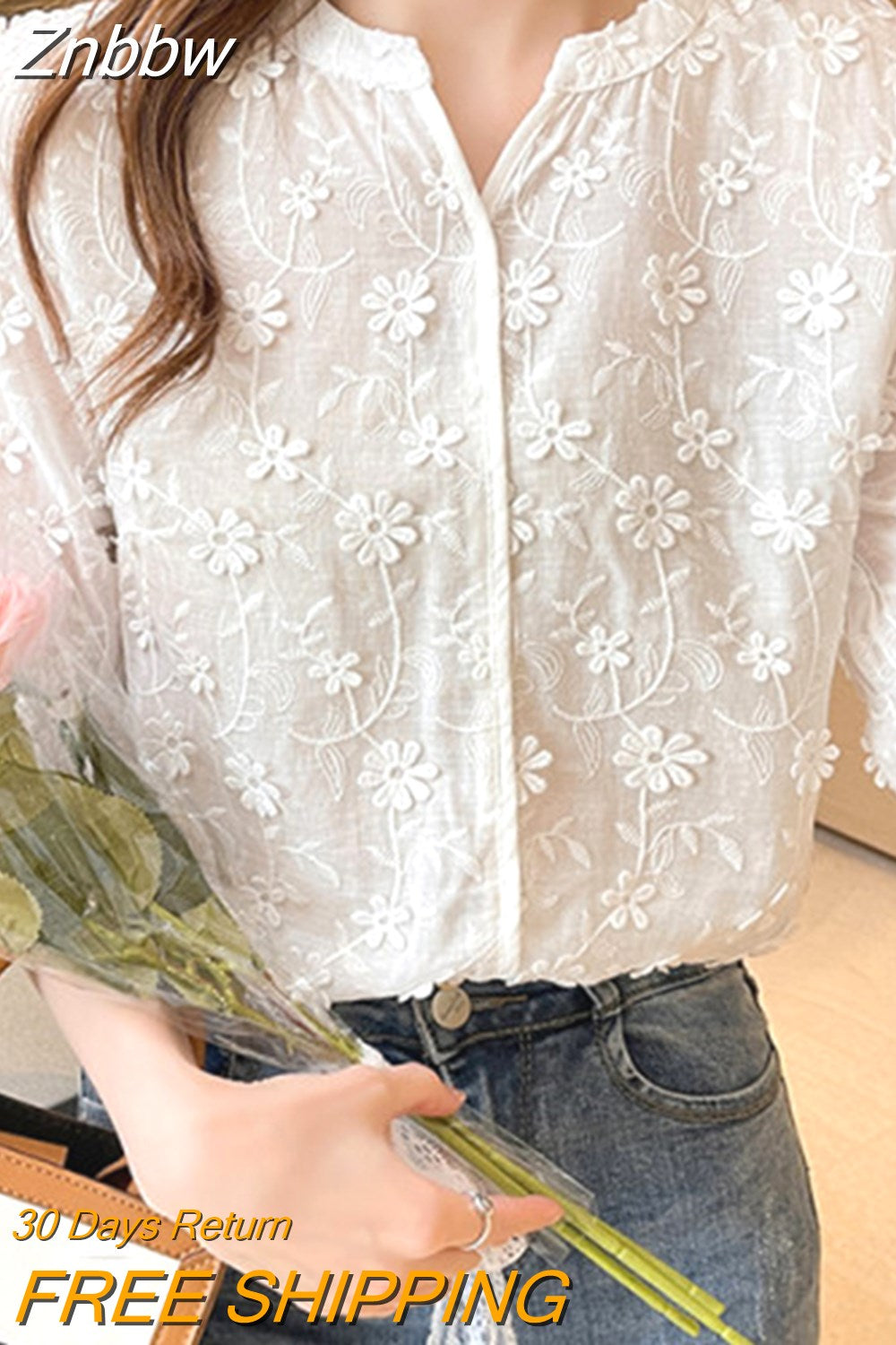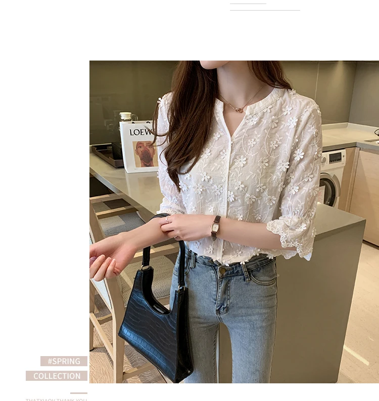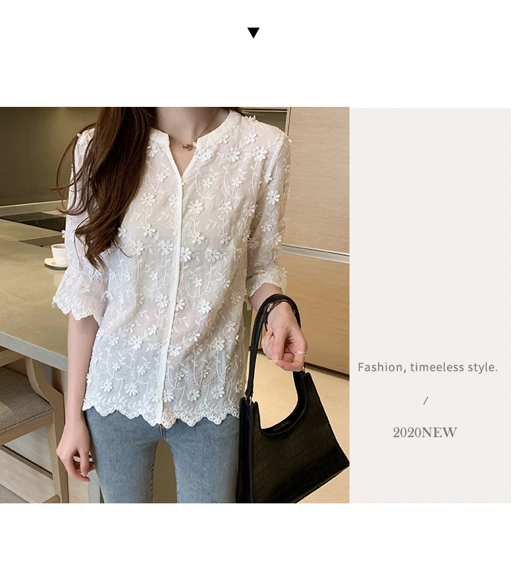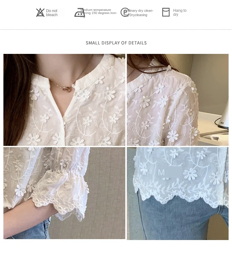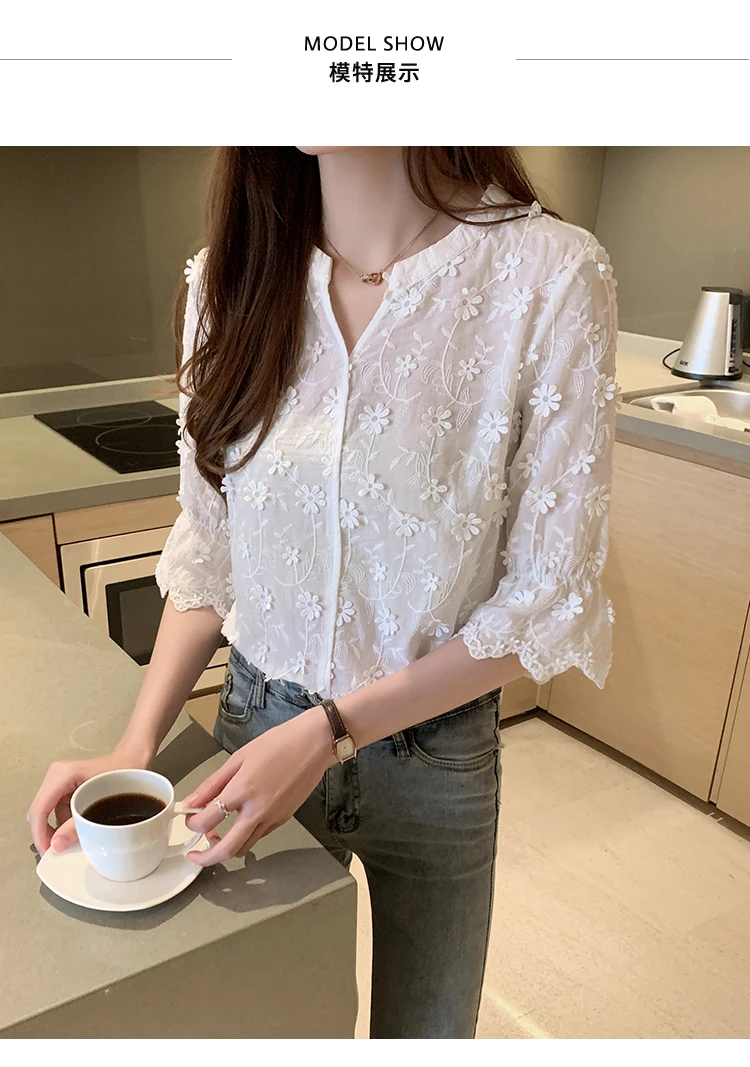 Znbbw Tops Lace Blouses Women Embroidery Floral Cotton White Shirt 2023 Fashion Casual Short Sleeve Women's Shirts Blusas 9638