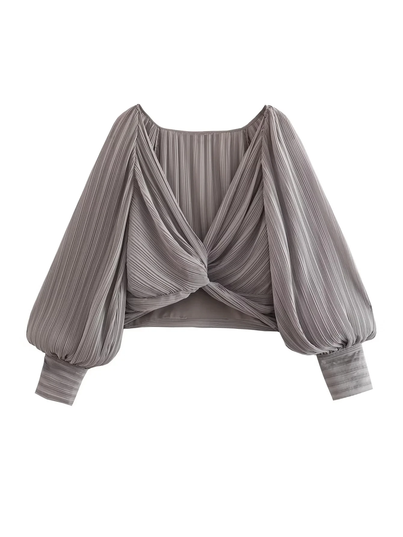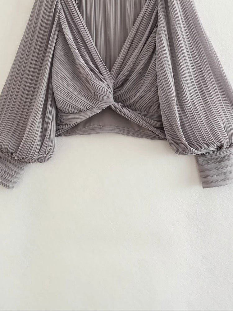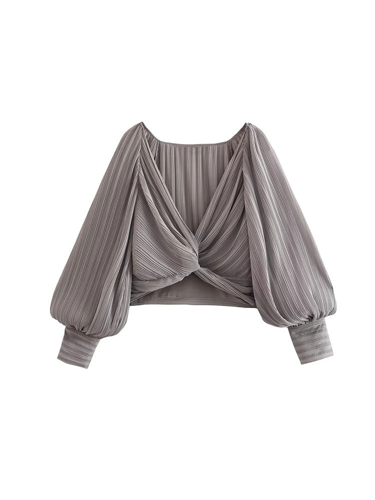 Znbbw TRAF 2023 Soild Cropped Blouse Women Crop Top Female Long Sleeve Top Woman V Neck Summer Elegant Blouses