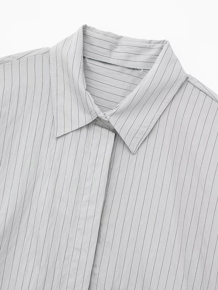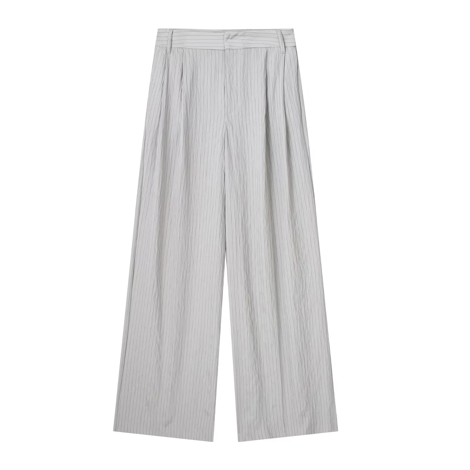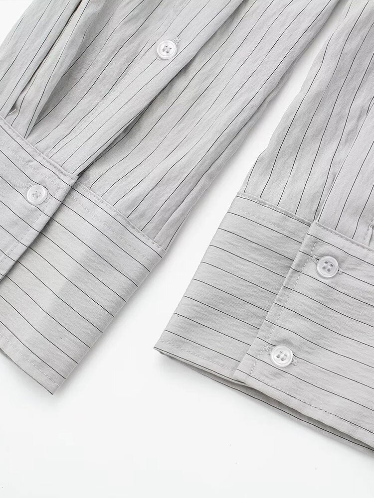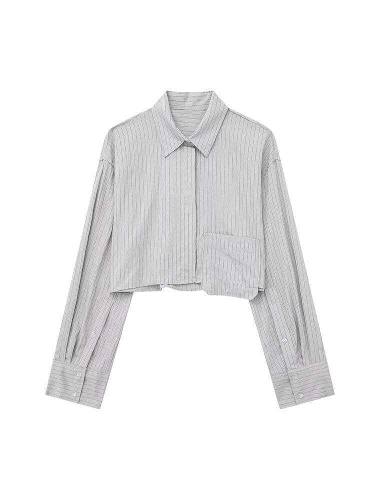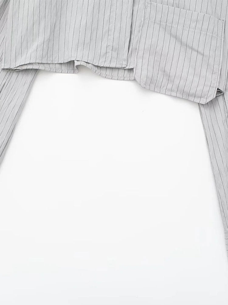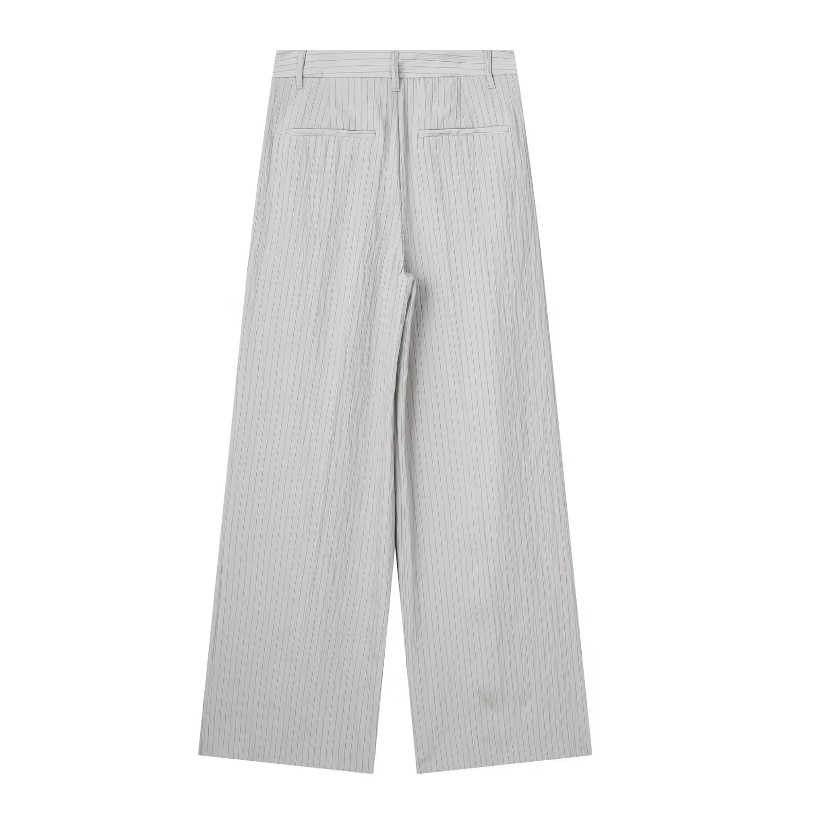 Znbbw TRAF 2023 Women 2 Pieces Sets Pocket Striped Short Shirt Tops + High Waist Unisex Style Long Pants Sets