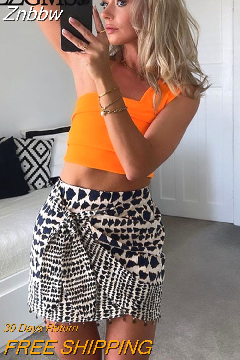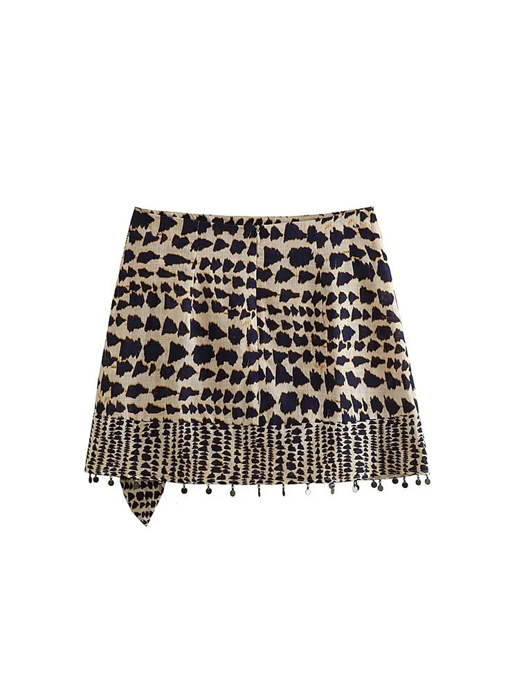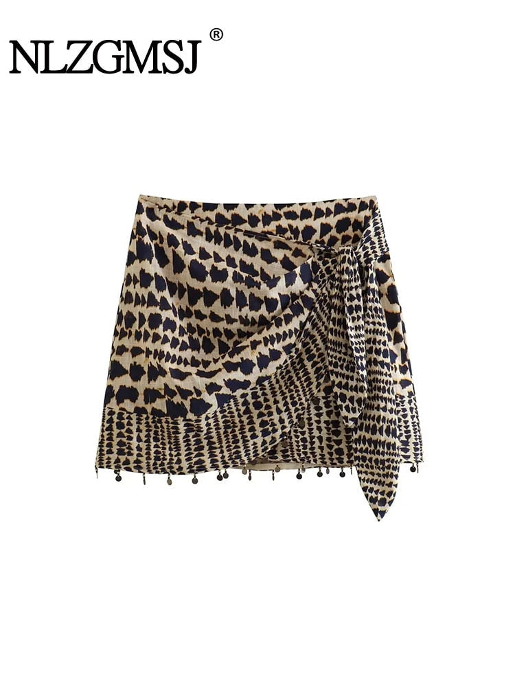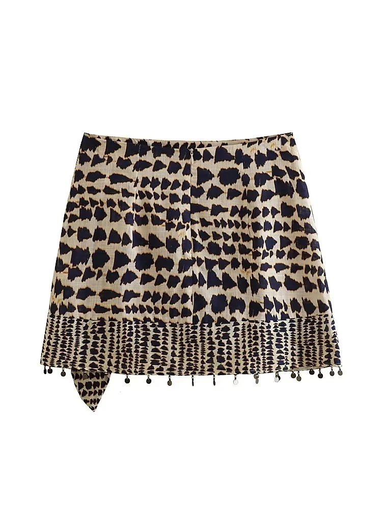 Znbbw TRAF 2023 Women Clothing Retro Beaded Printed High-Waist Sexy Mini Skirt Women