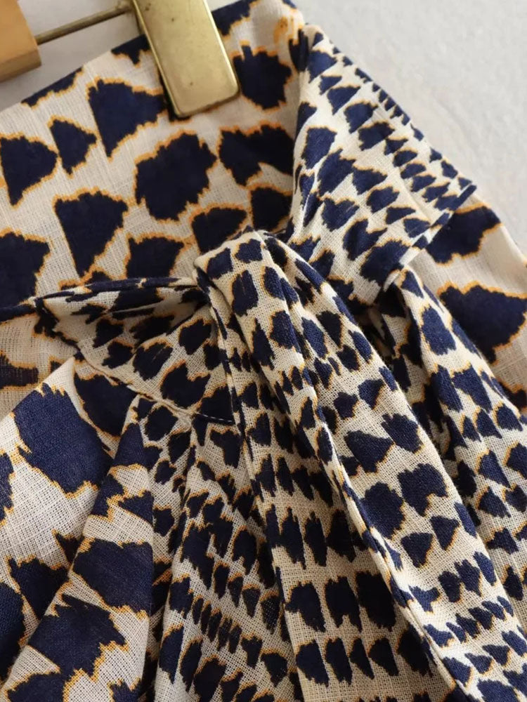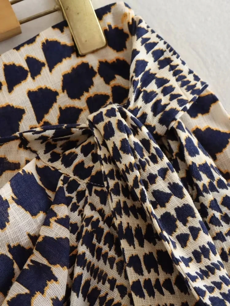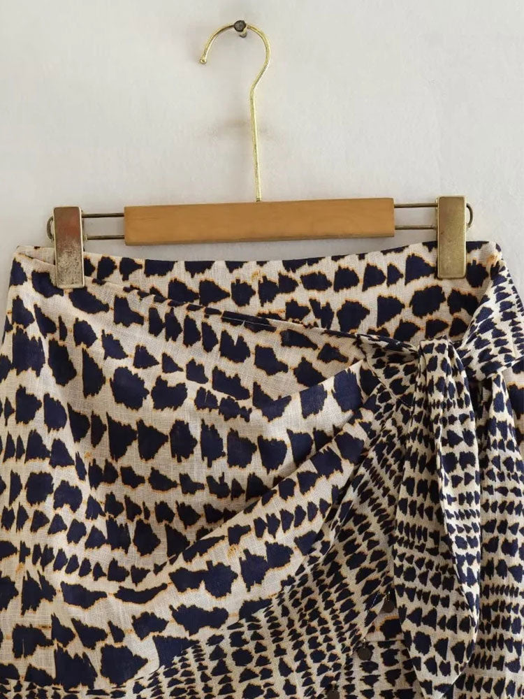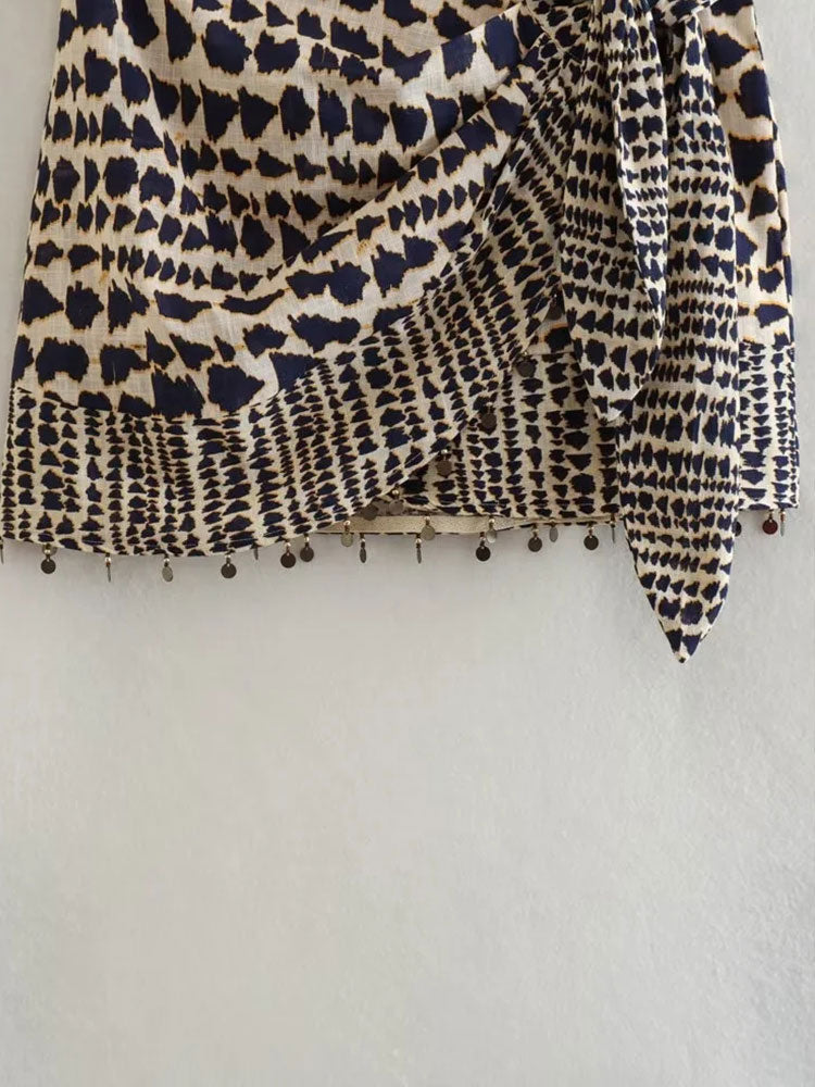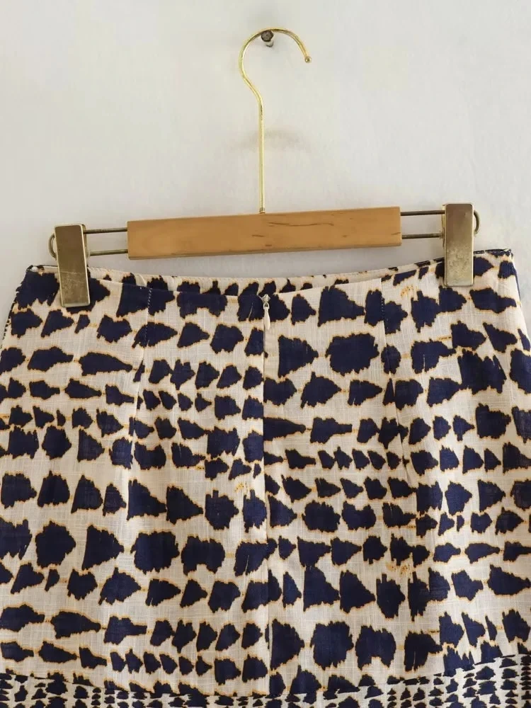 Znbbw TRAF 2023 Women Clothing Retro Beaded Printed High-Waist Sexy Mini Skirt Women