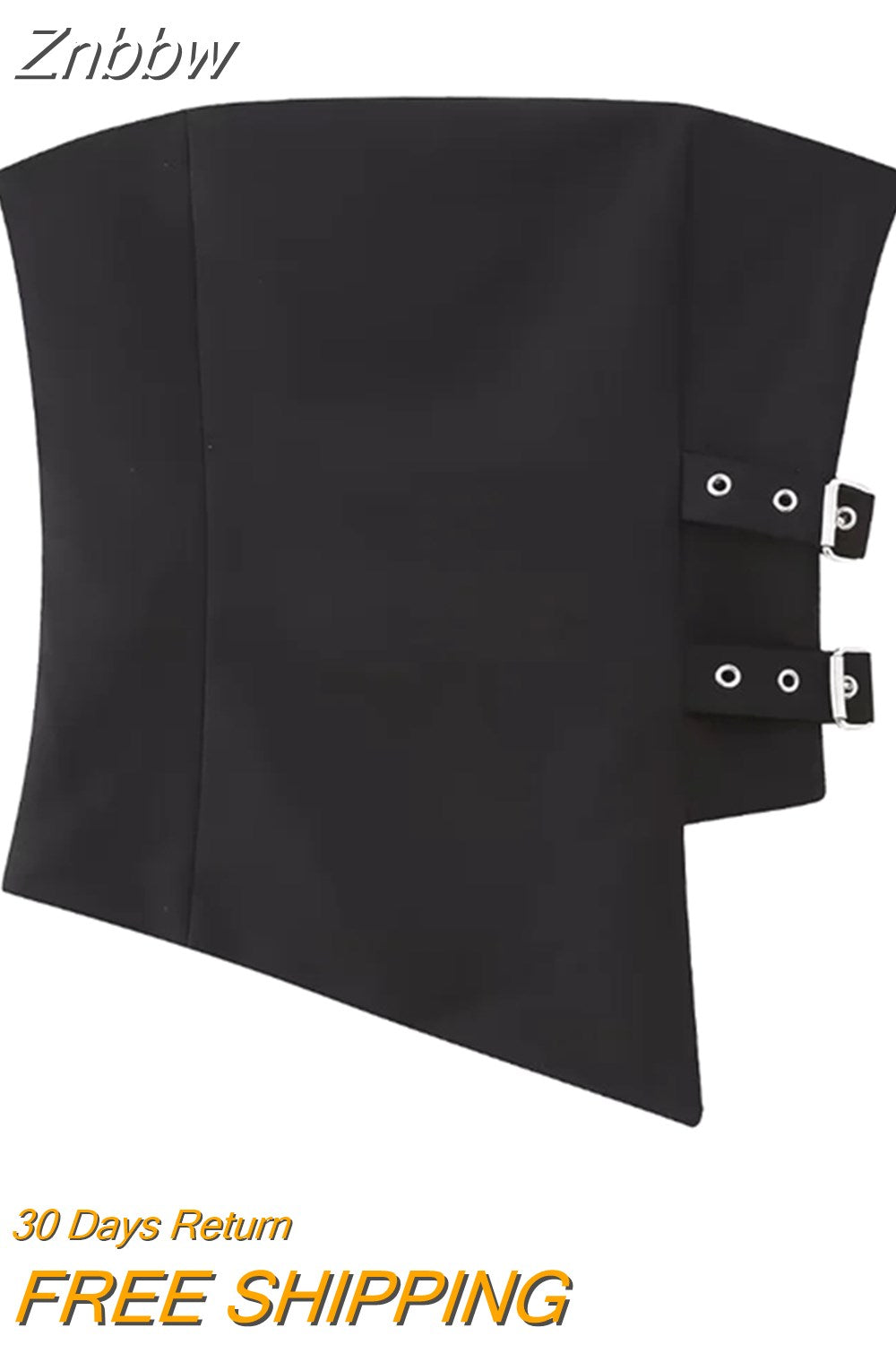 Znbbw TRAF 2023 Women Strapless Camis Women Tops Chic Asymmetric Hem Corset Tanks Woman Sexy Club Black Top