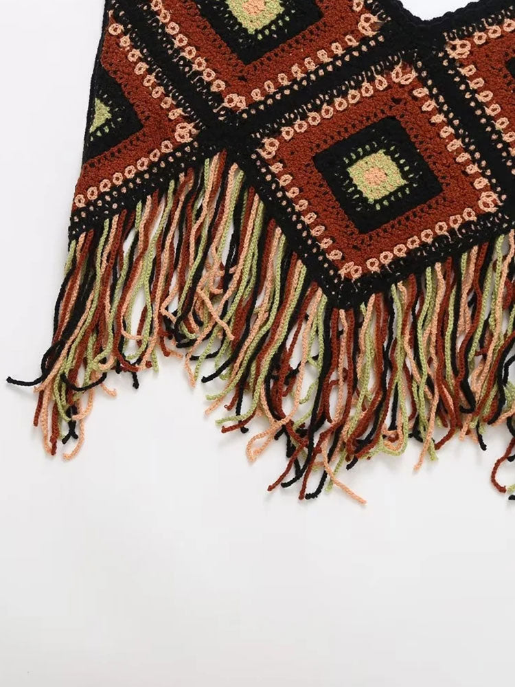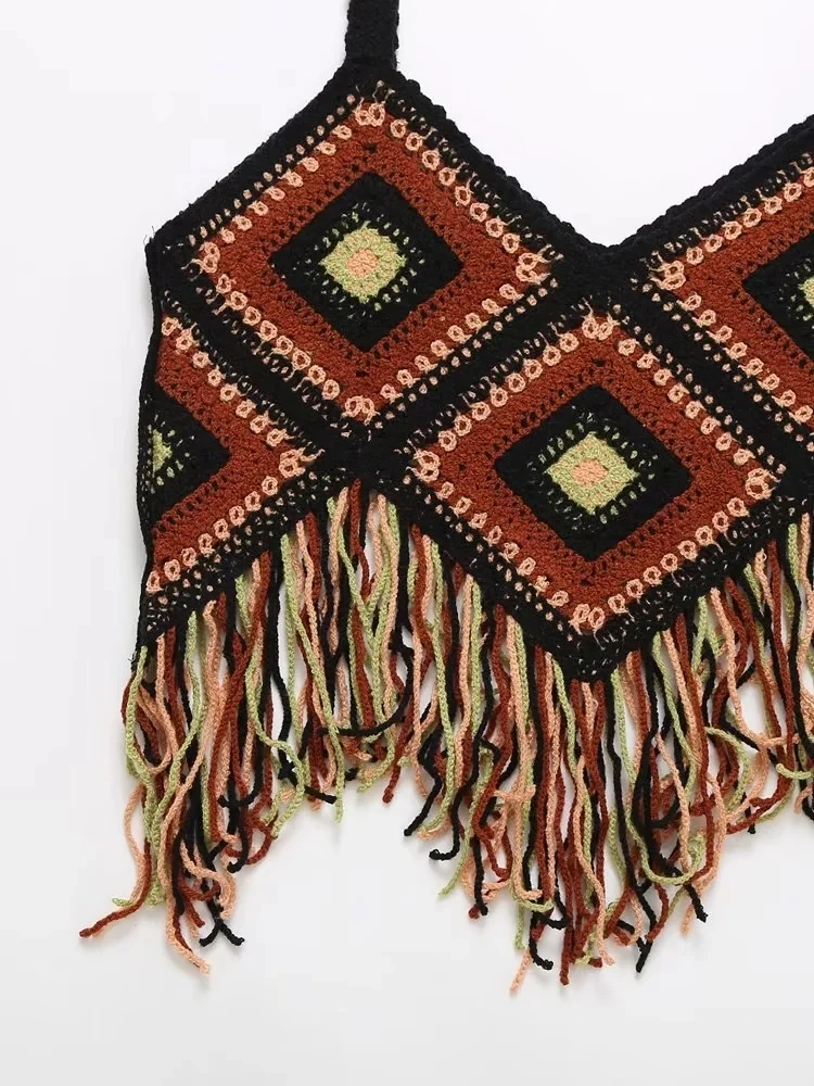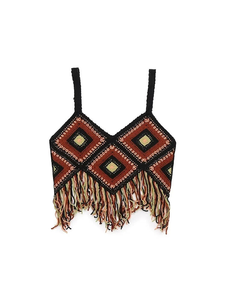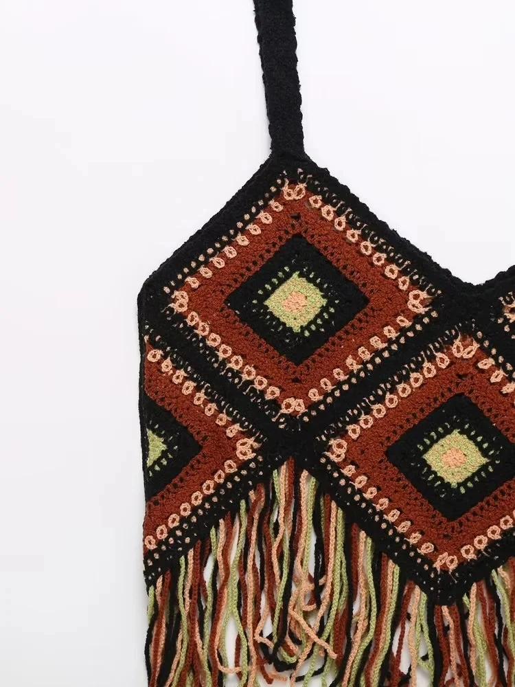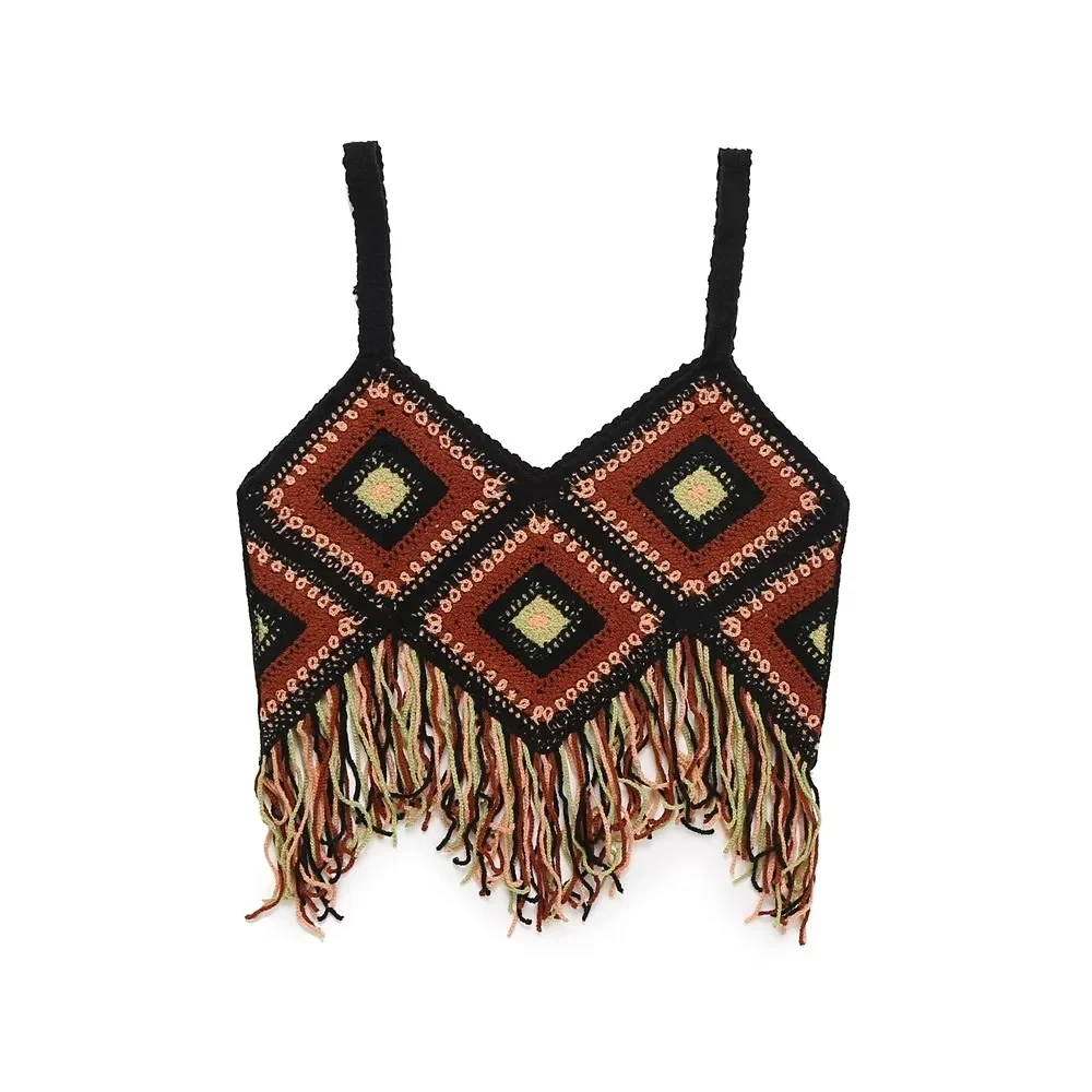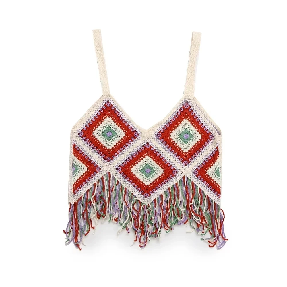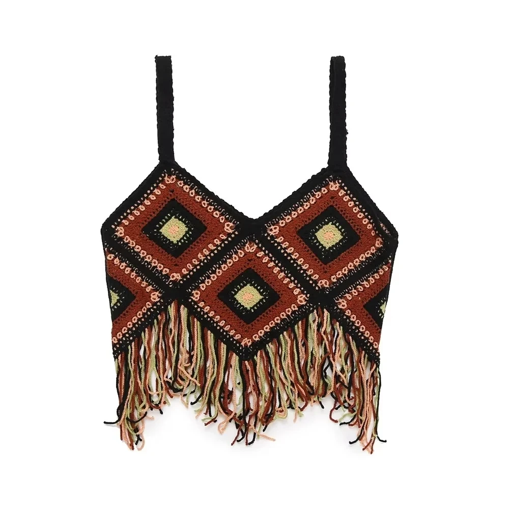 Znbbw TRAF 2023 Women Tops Four Color Tassel Embellished Short Sleeveless Suspender Casual Tops Woman Female Top