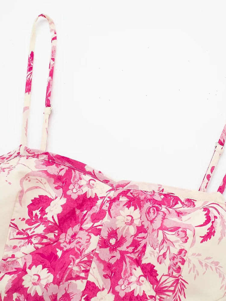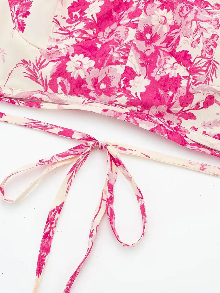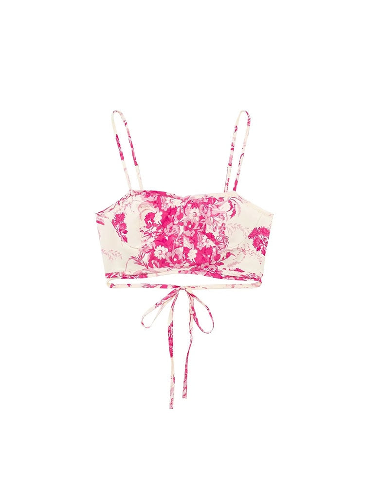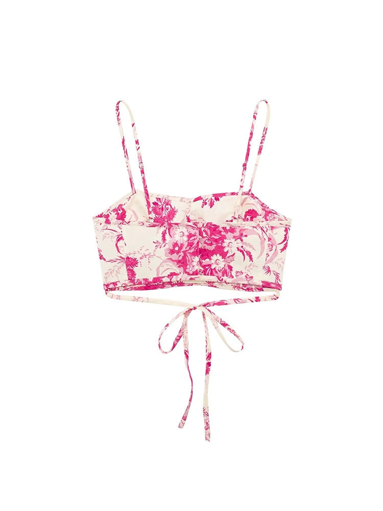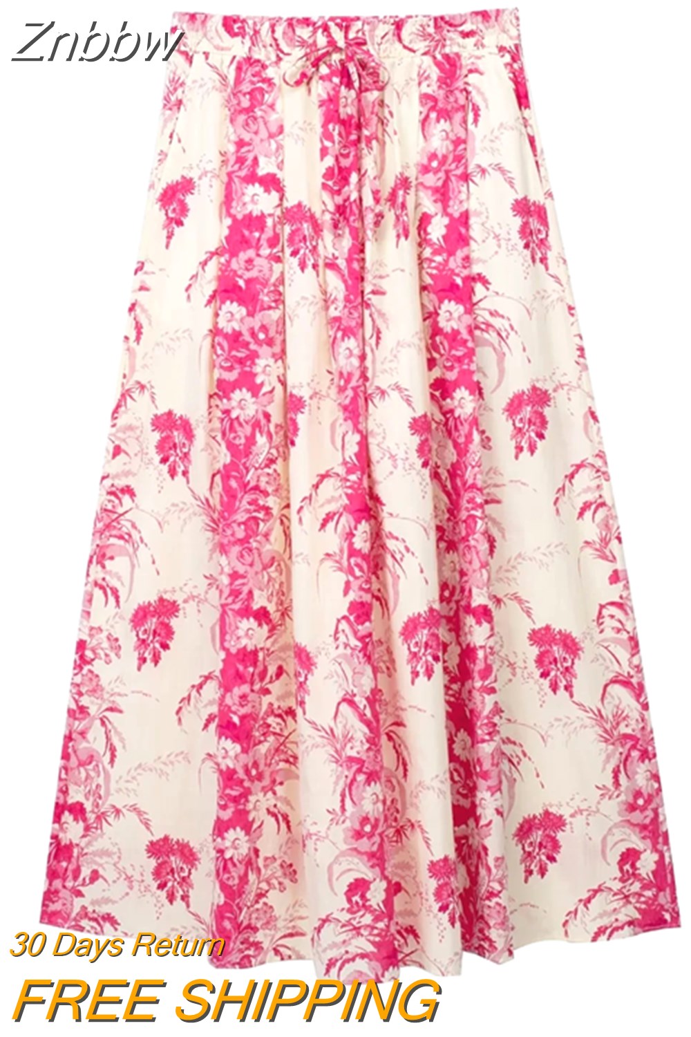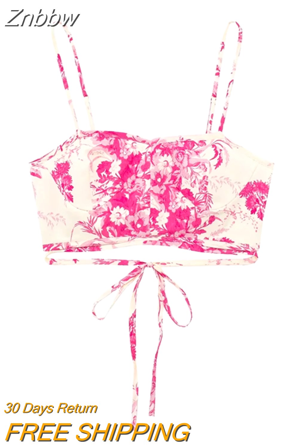 Znbbw TRAF 2023 Y2K Holiday Printed Women Beach Suits Summer Skinny Bustier Crop Top Camis Female Midi Skirt 2 Piece Sets